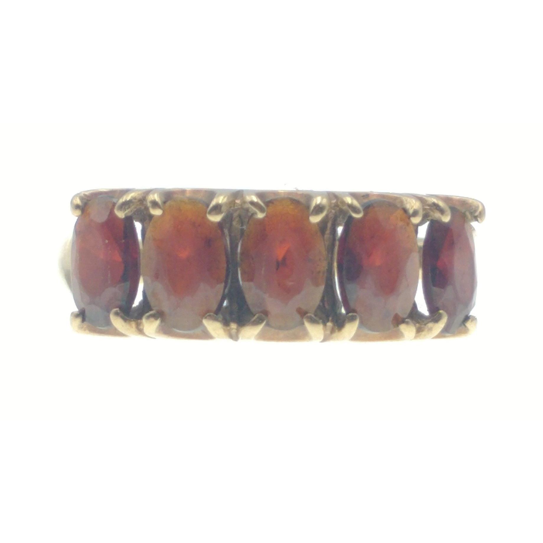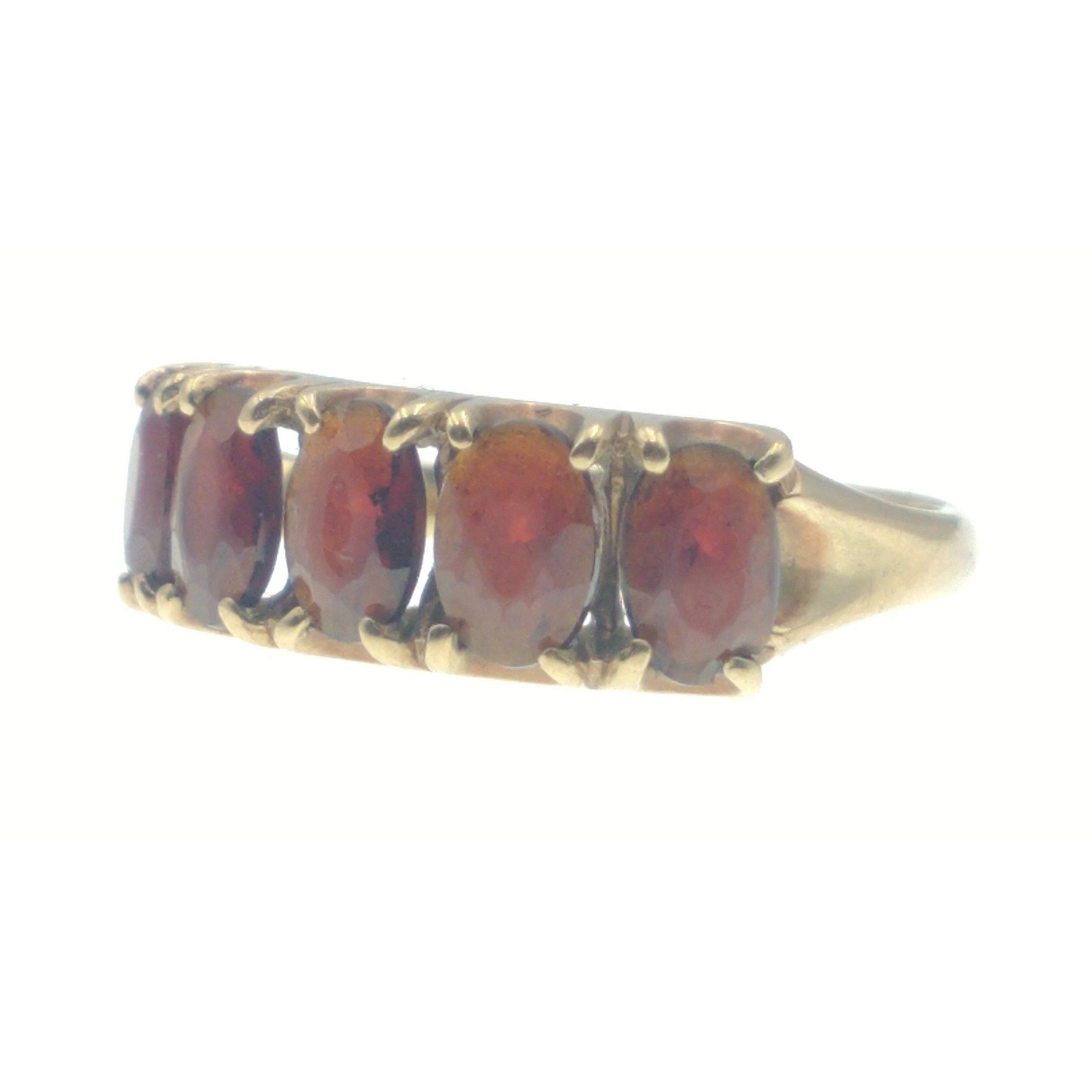 A BEAUTIFUL RED DAZZLER FIVE GARNET set 375 stamped yellow gold ring size N weight 2.55g gross approx