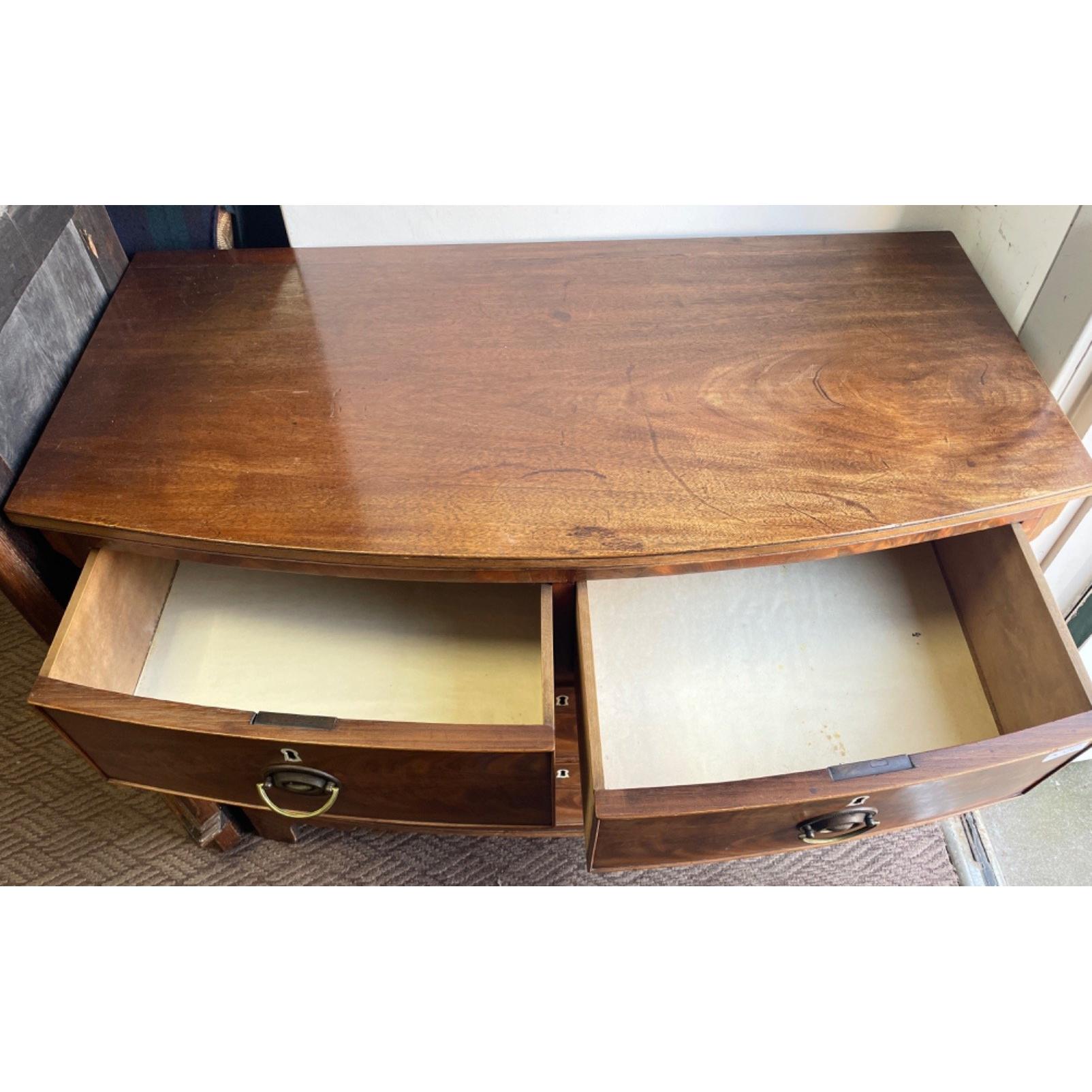 VICTORIAN - A nice quality mahogany two over two deep drawer BOW FRONTED chest of drawers with original feature brass ring pull handles and feature bone key holes supported on Ogee feet