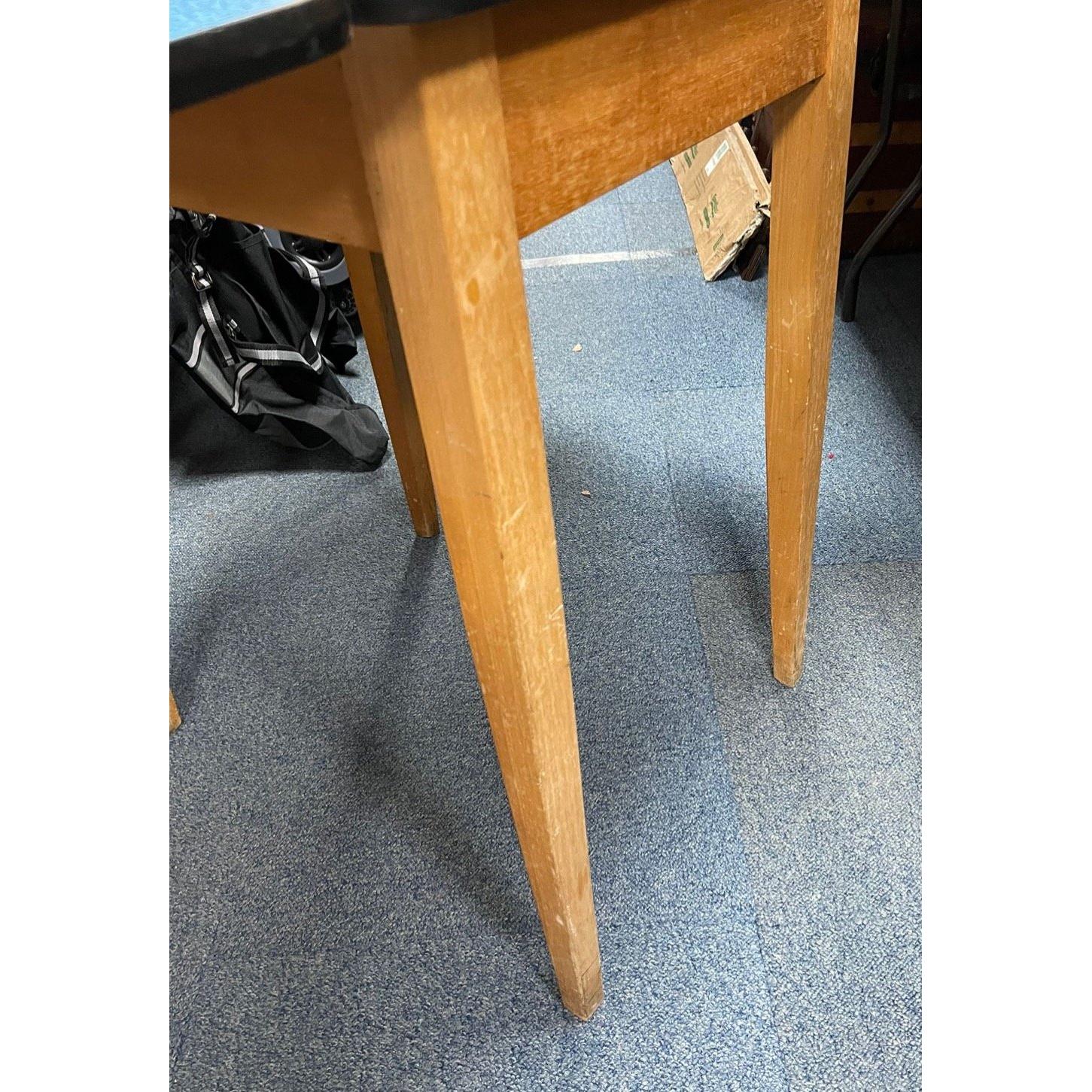 A small drop-leaf RETRO blue-topped formica kitchen table 90cm extended 50cm x 60cm unextendedApprox 1 pieces