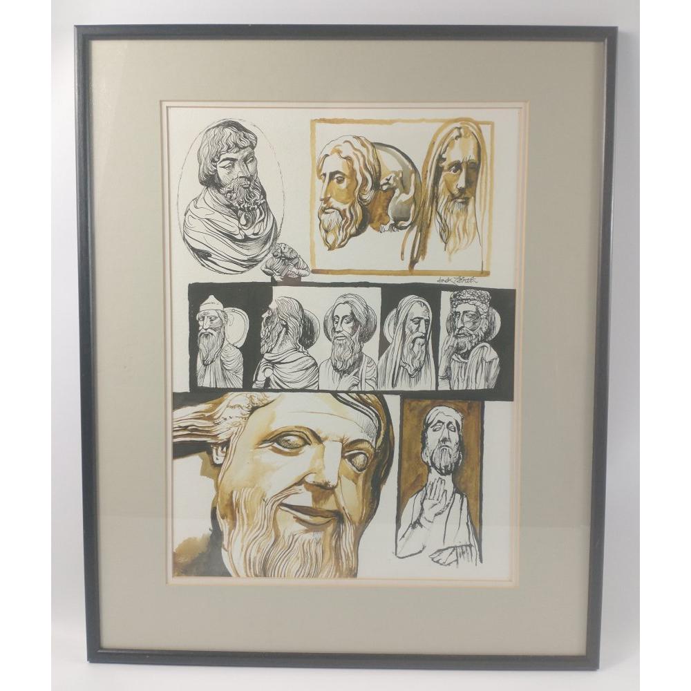 JACK FIRTH RSW (1917-2010) framed ink and watercolour of classic heads montageW: 47.5cm approx H: 57.5cm approx