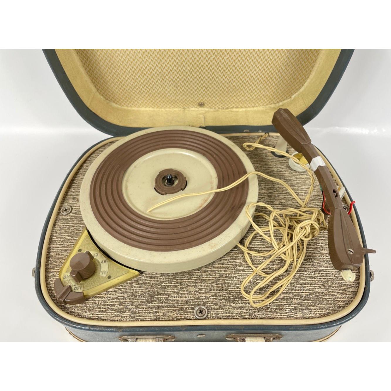 RARE! VERY VINTAGE vinyl record player in vanity style carry case model HF12 , FIDELITY - dimensions 14" x 11" approx