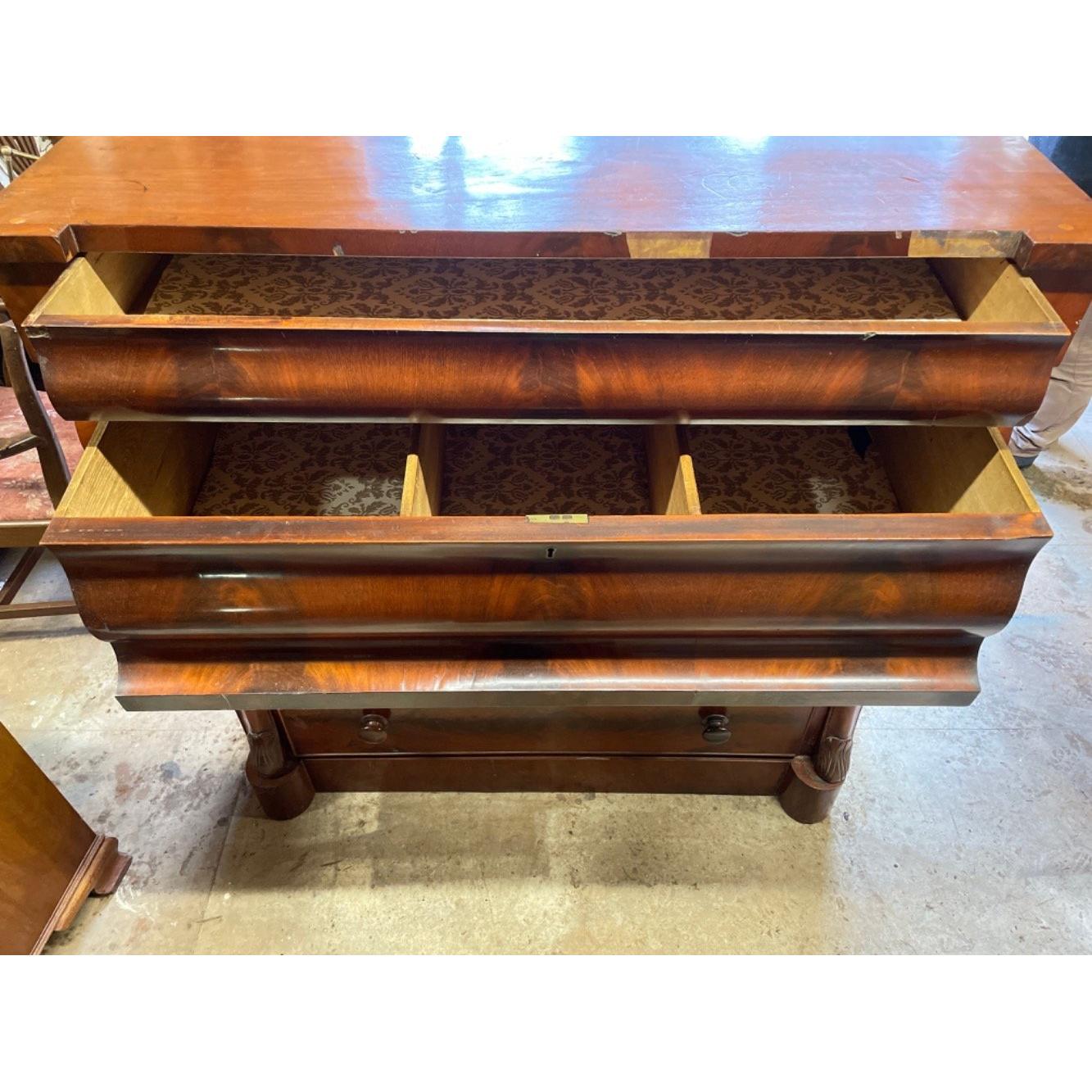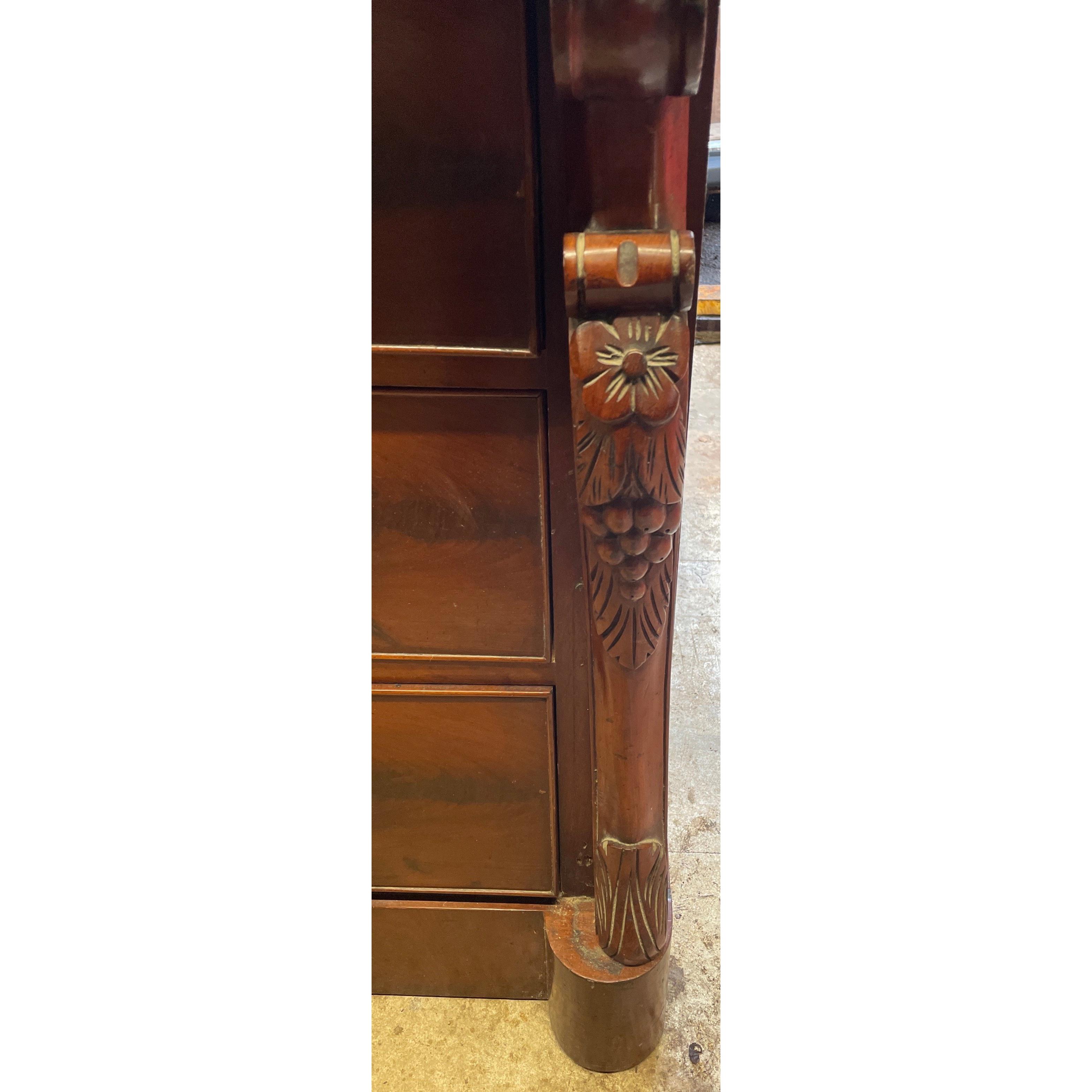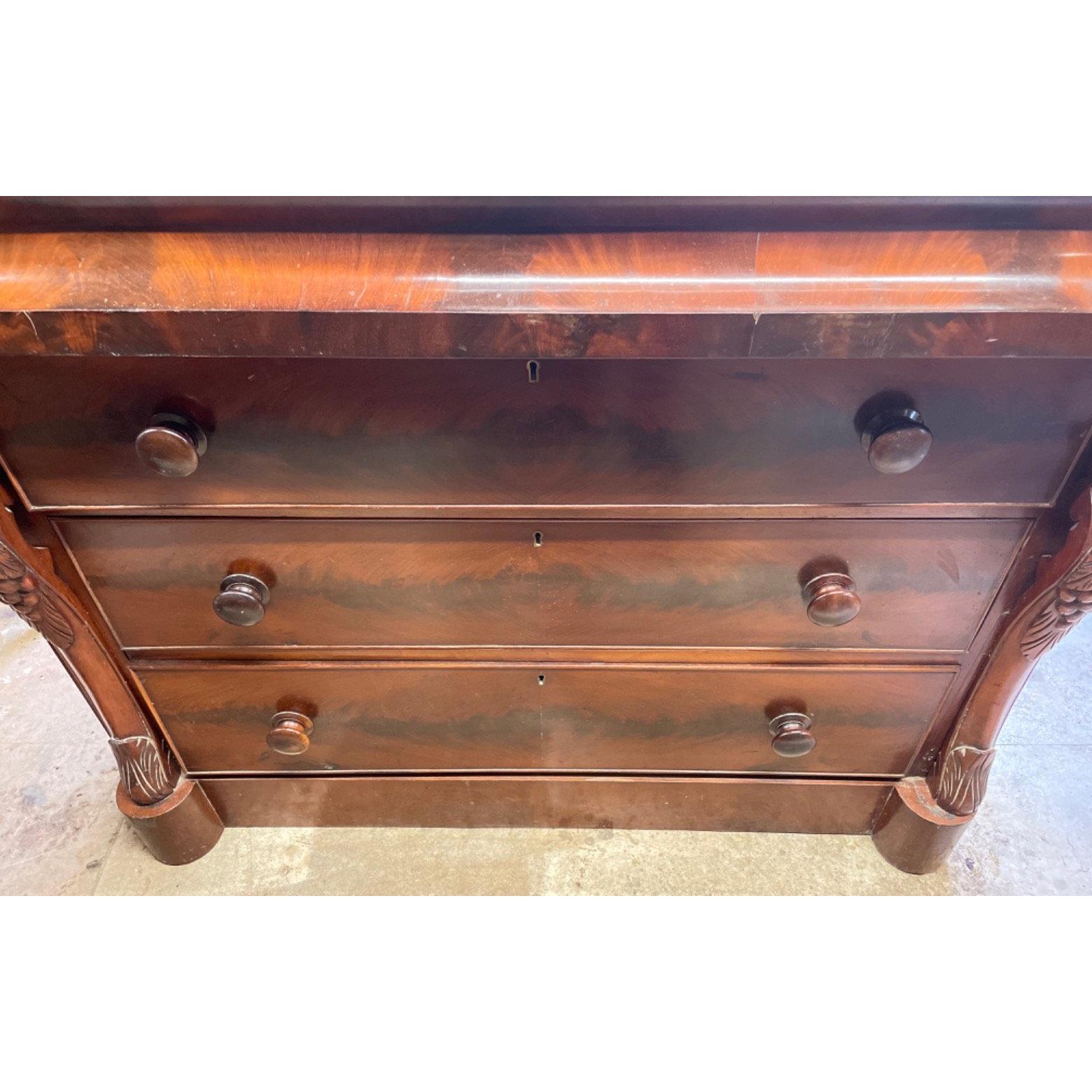 A VICTORIAN two over three drawer chest of drawers with UNUSUAL Carved mouldings of grapes etc on each side and original wooden knob handles - dimensions 4ft long x 2ft depth x height 5ft approx
