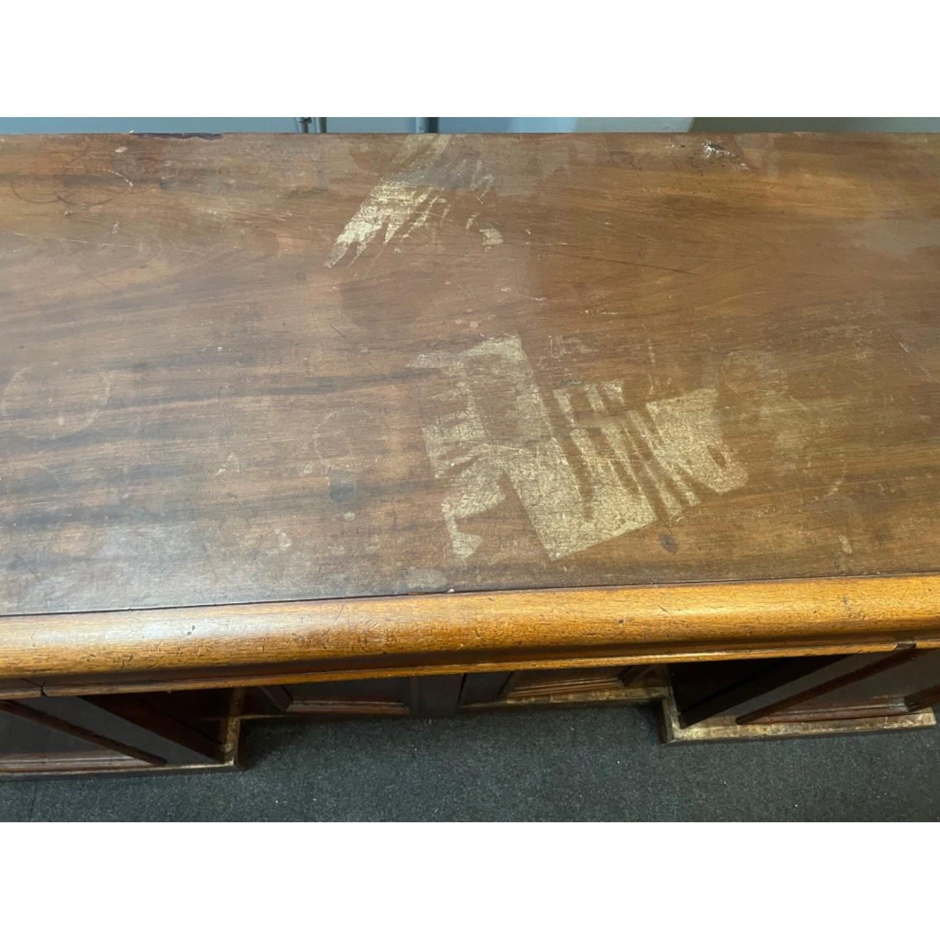 A VICTORIAN solid Mahogany sideboard with three drawers, and three cupboards - the top has sustained some staining/sun damage, but otherwise a period piece of furniture! - dimensions 6ft long x 2ft depth - would make an ideal CONVERTED double sink basin unit for a large bathroom or UPCYCLED with in-vogue chalk paint to match your decor! - item comes apart in 5 pieces for ease of shipping/moving etc