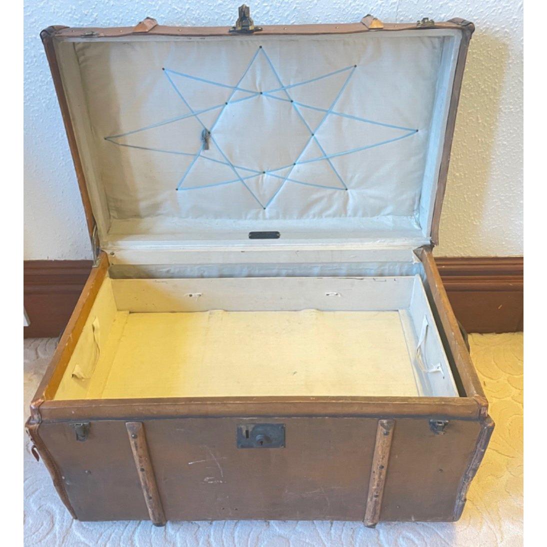 VINTAGE Bentwood trimmed travel trunk with tray, marked M.BW: 87cm approx H: 55cm approx D: 55cm approx