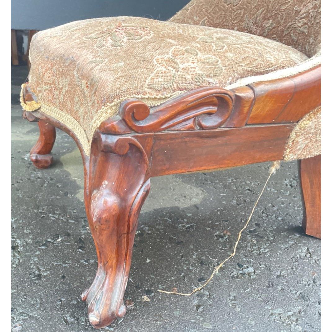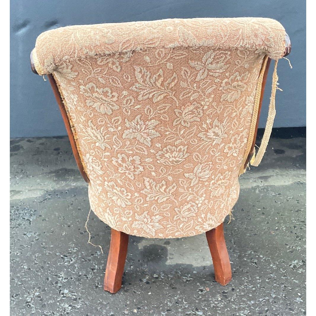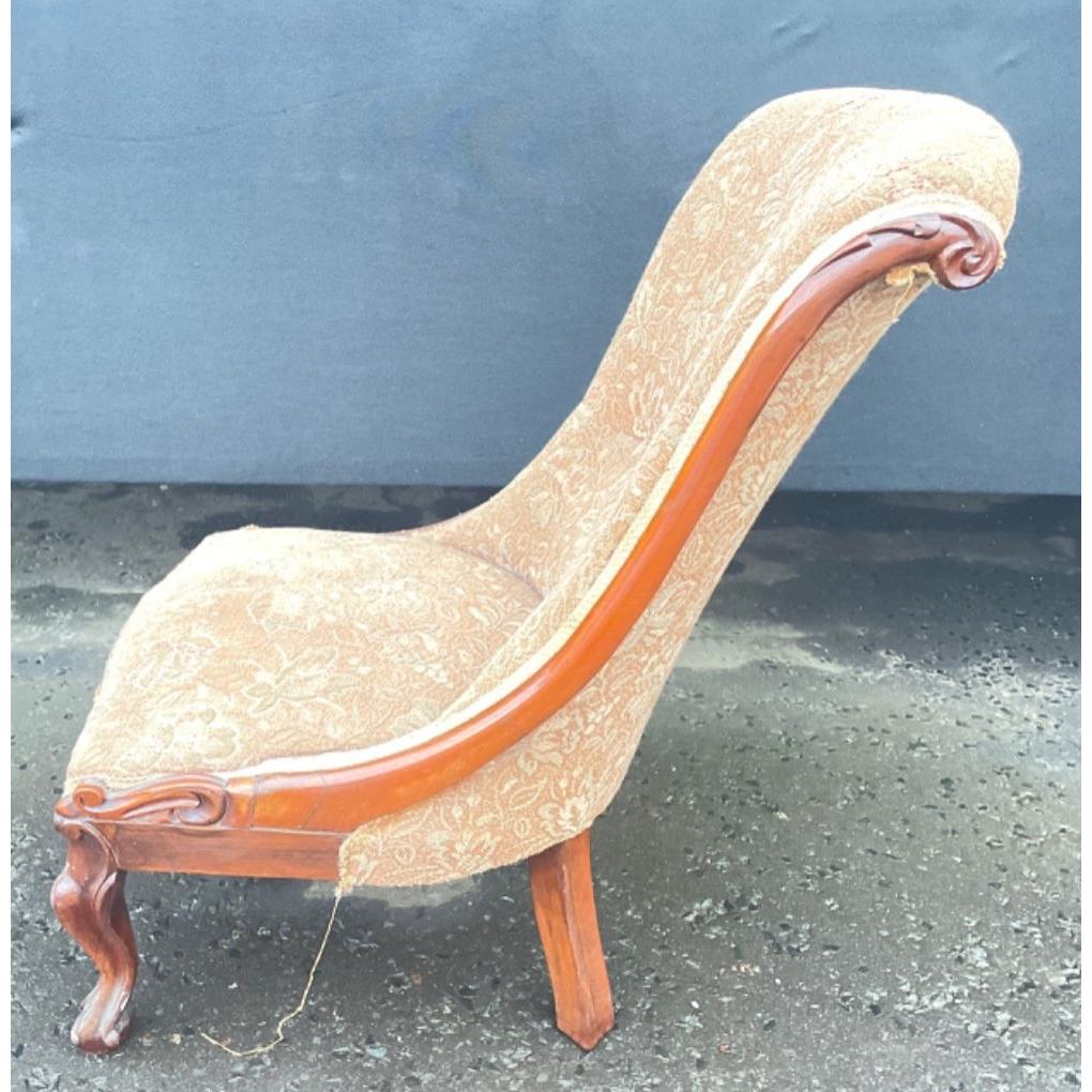A VICTORIAN slipper-back chair with mahogany frame - will require re-upholstered to bring it back to its former glory!