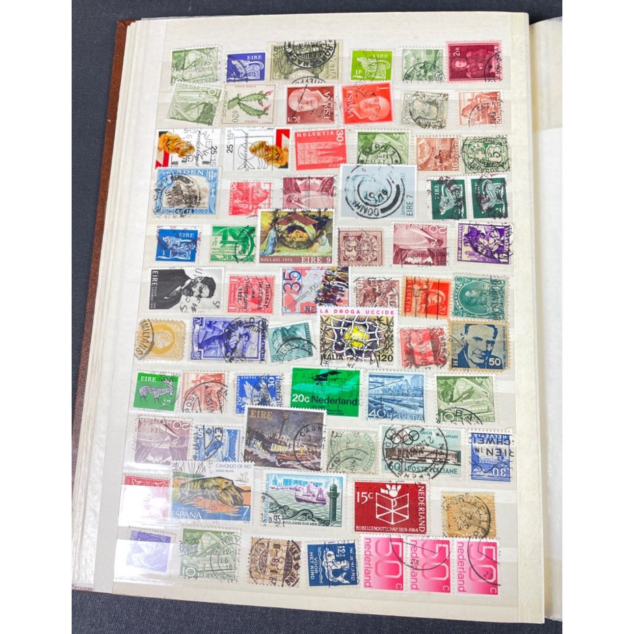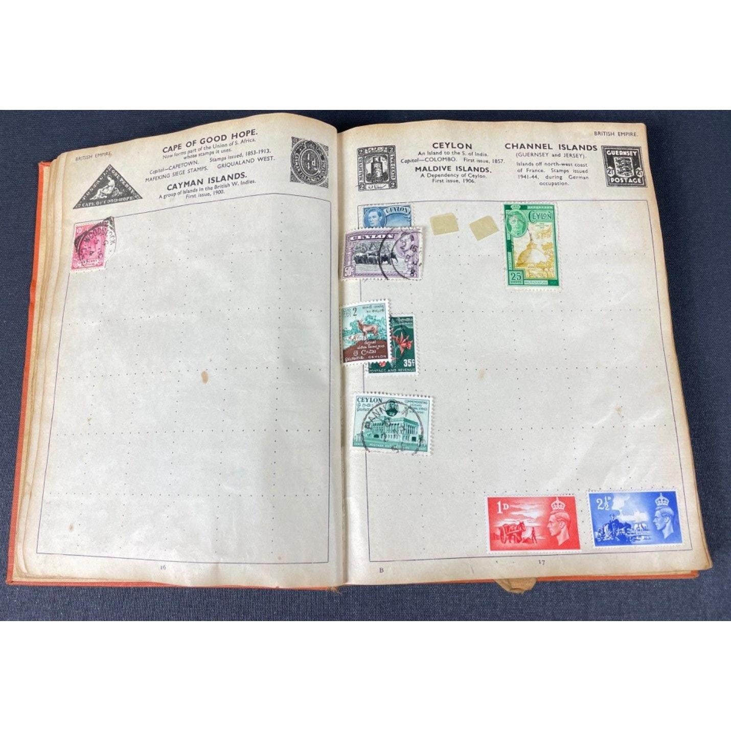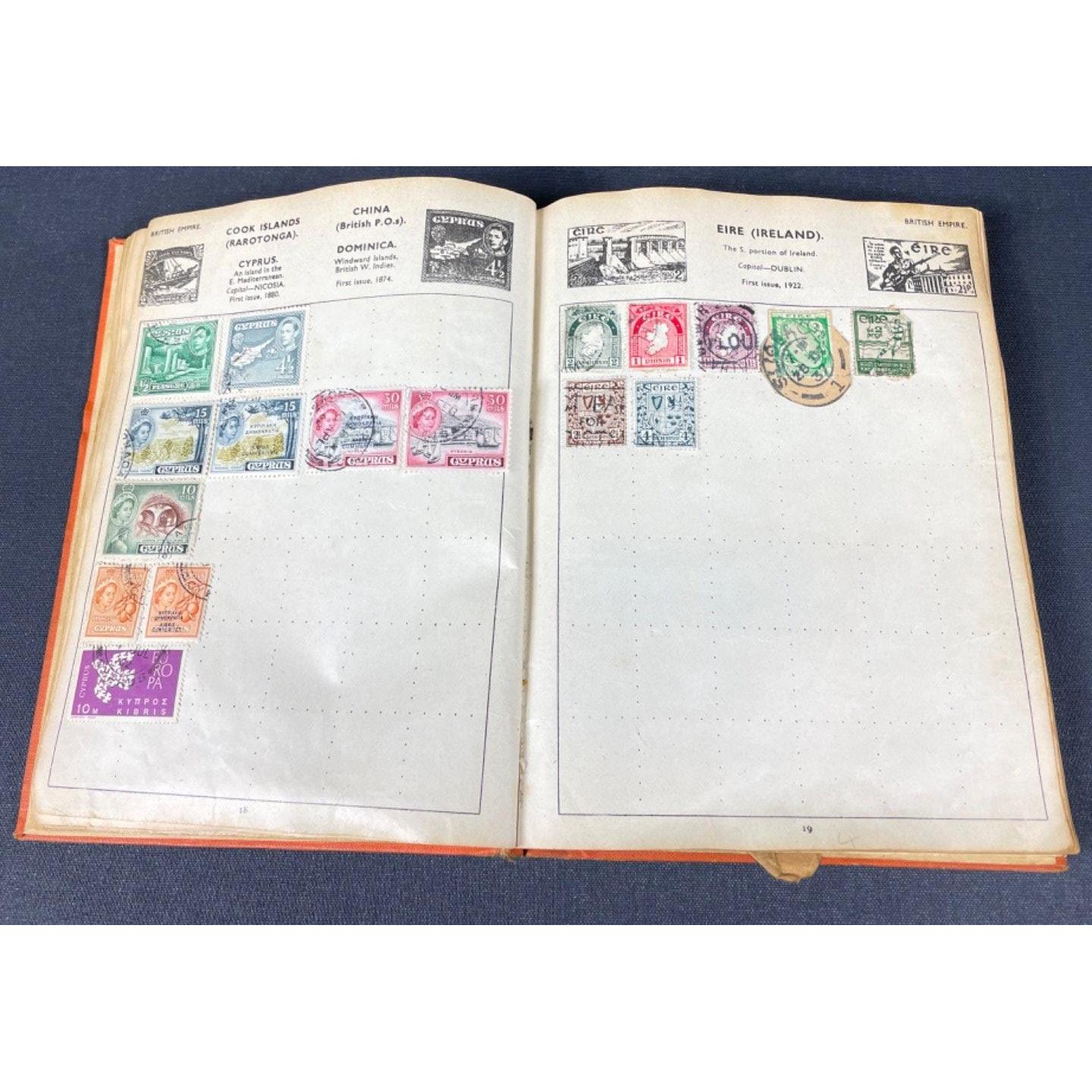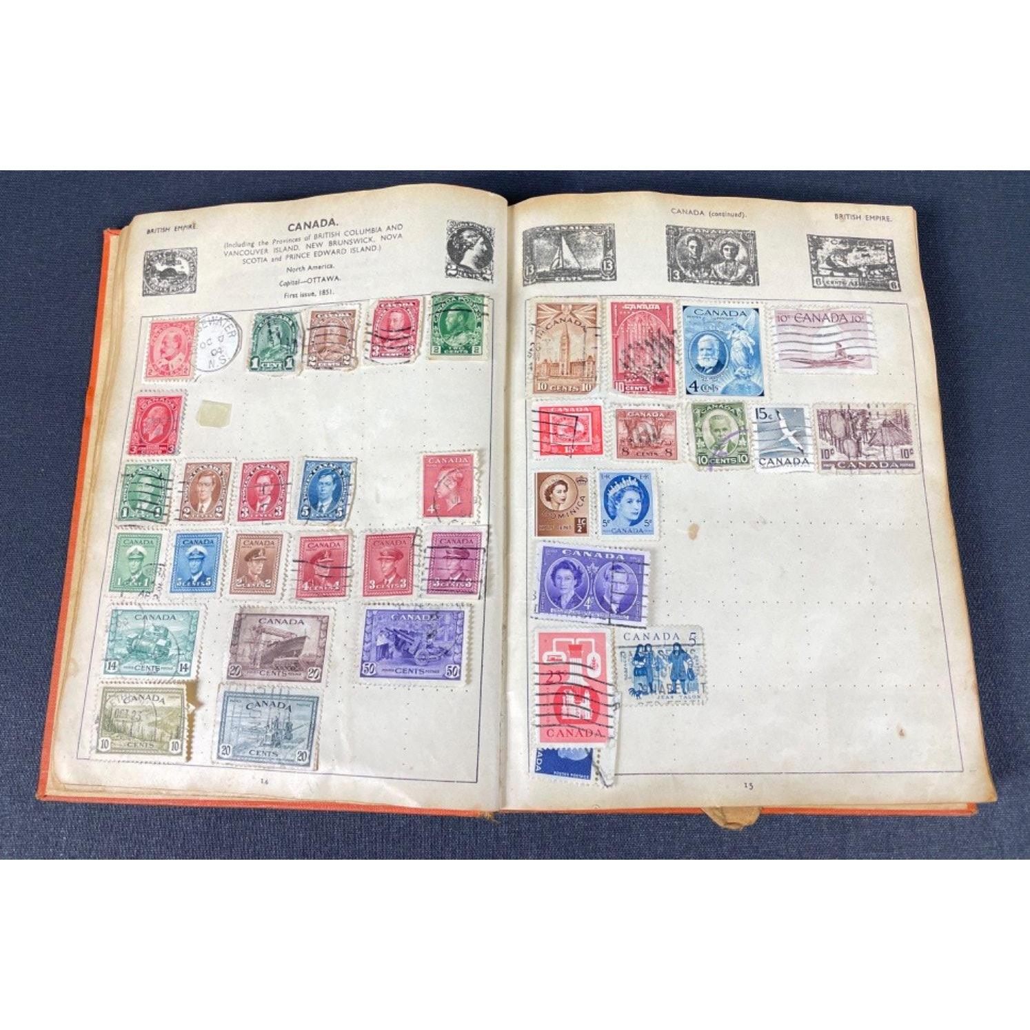 A collection of two stamp albums(brown and light brown covers) to include British Queen Elizabeth early reign stamps c50's and 60's also for Canada, Australia, Portugal, Spain, Eire, Italy France, World Colonies and World stamps