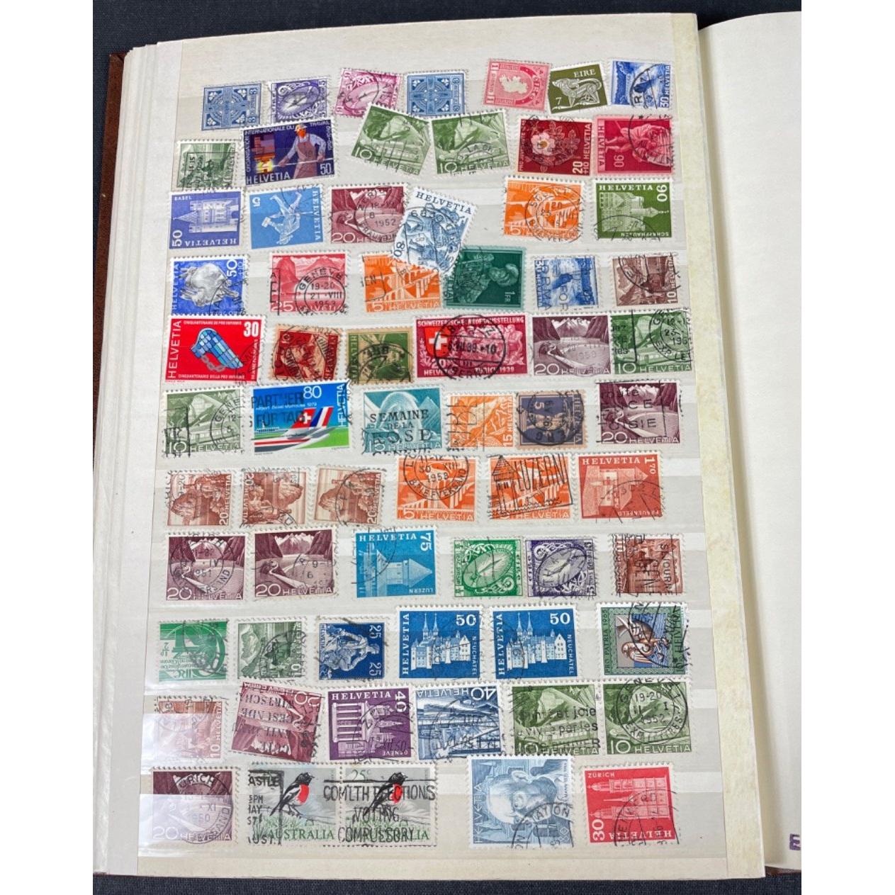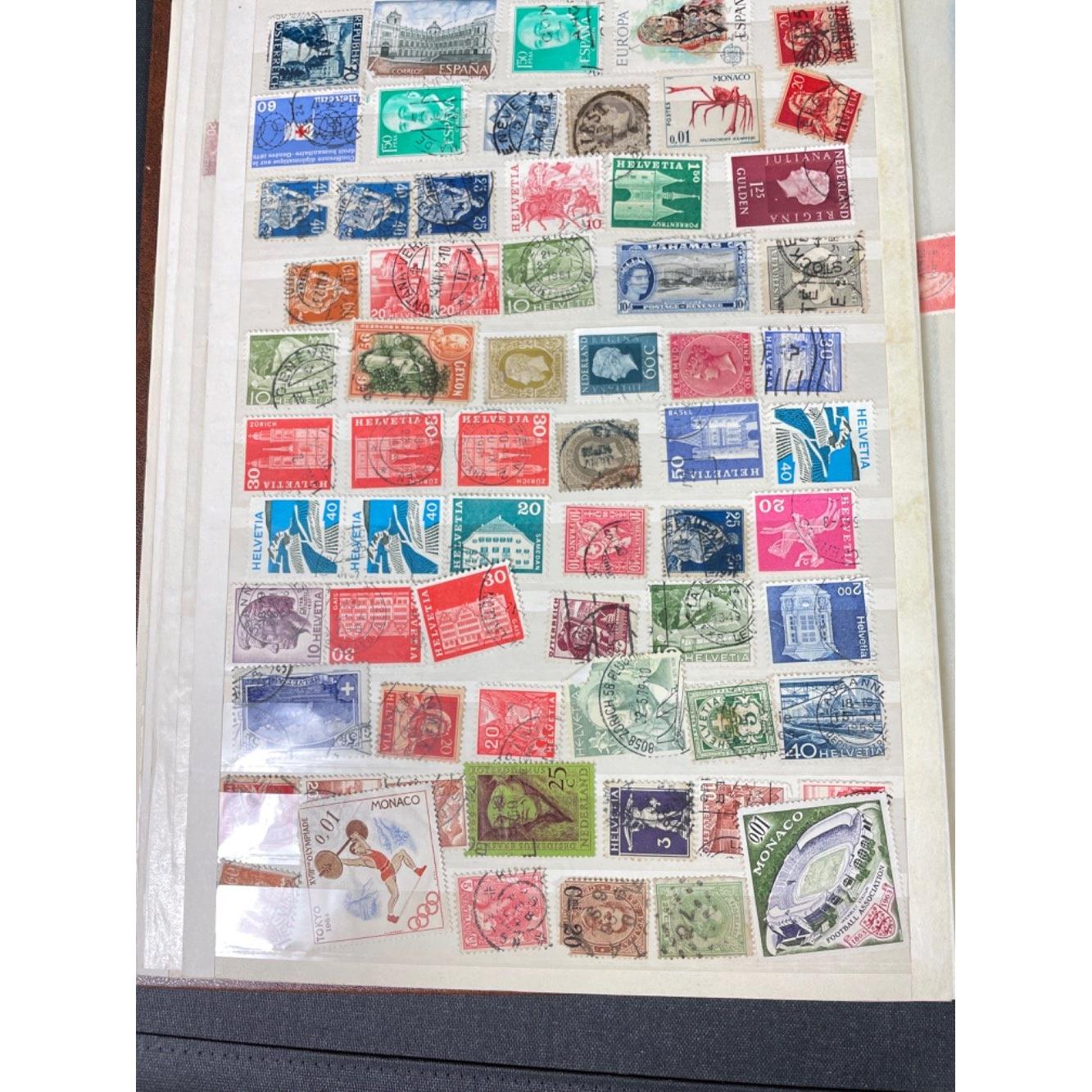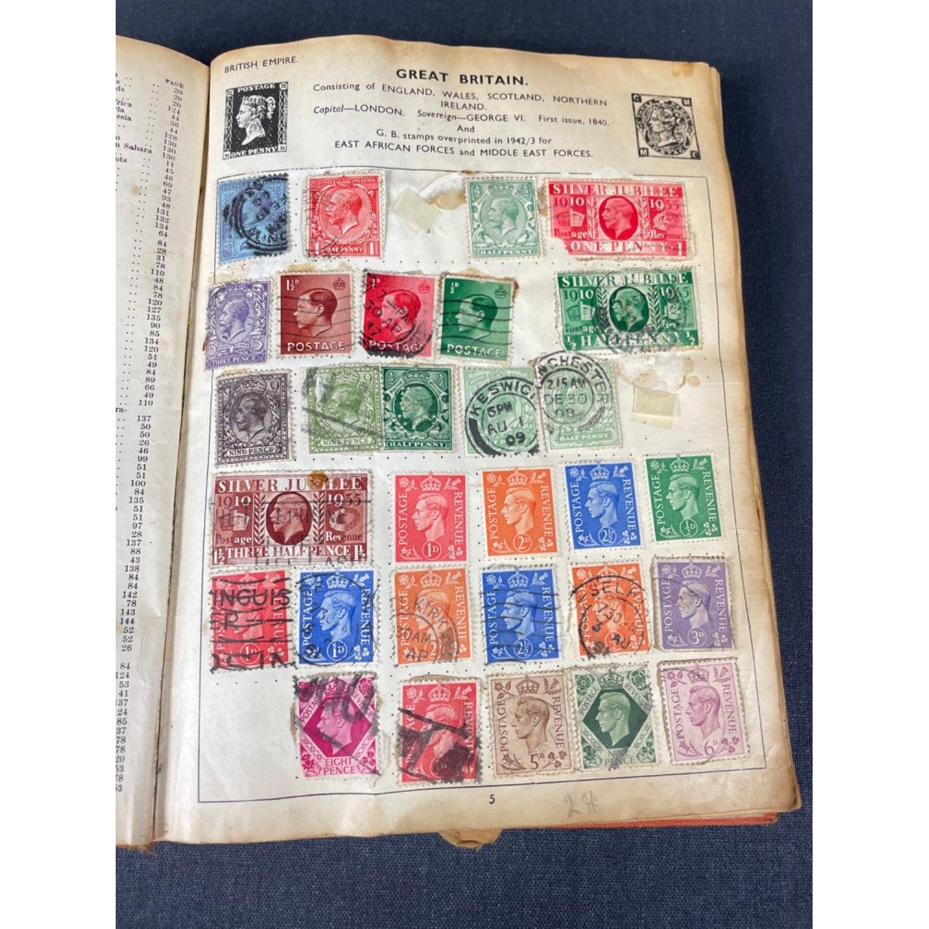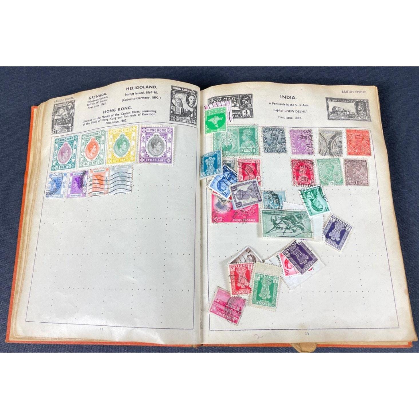 A collection of two stamp albums(brown and light brown covers) to include British Queen Elizabeth early reign stamps c50's and 60's also for Canada, Australia, Portugal, Spain, Eire, Italy France, World Colonies and World stamps