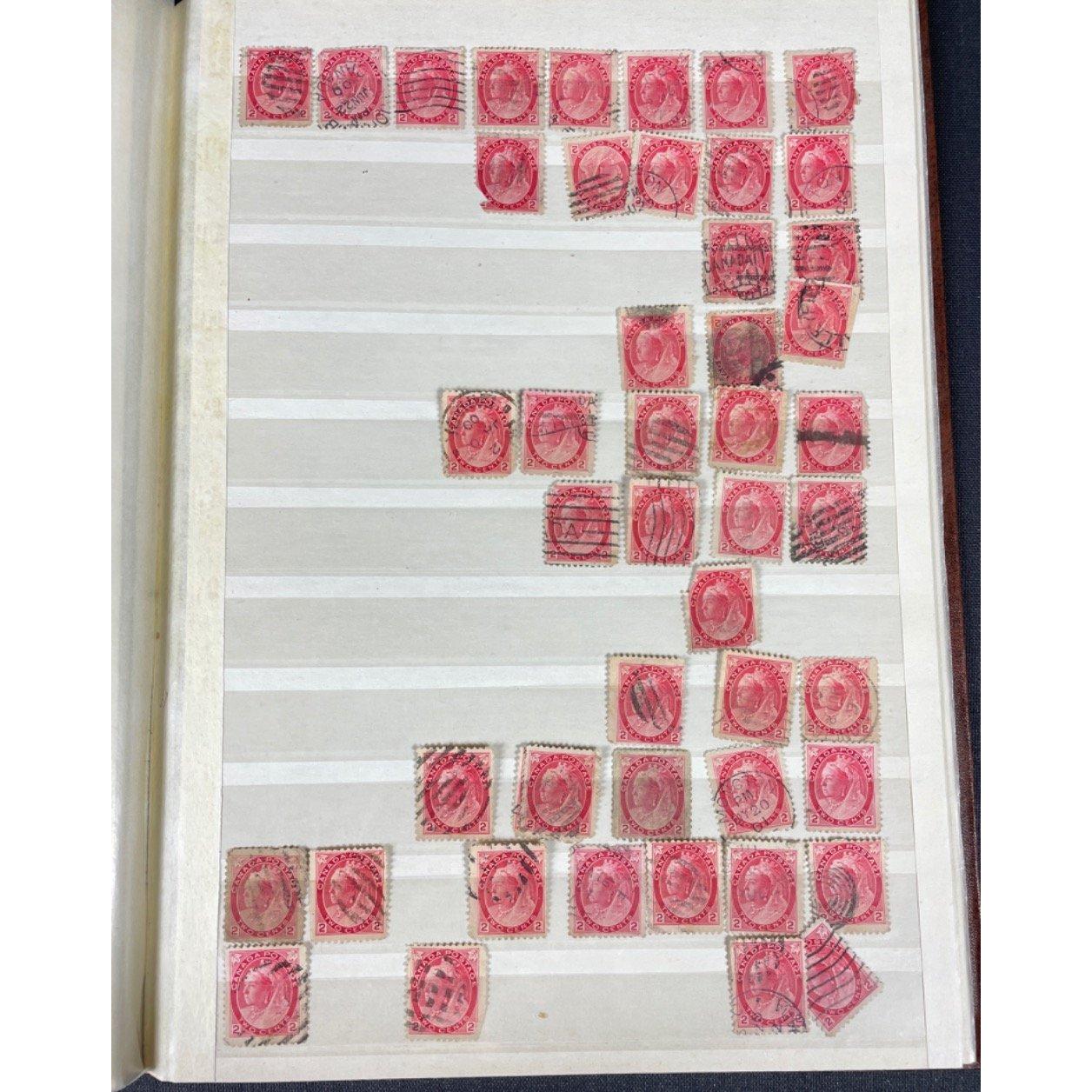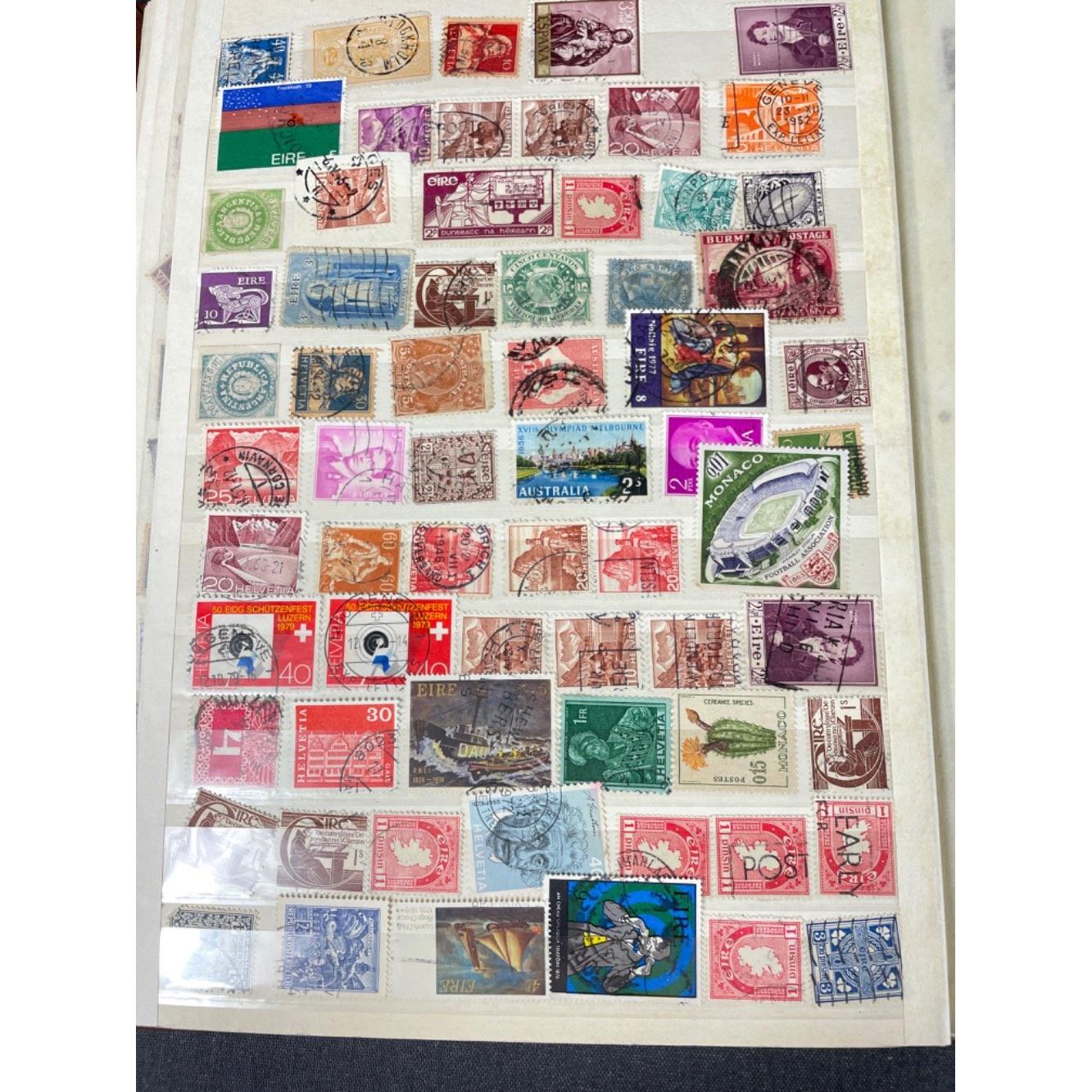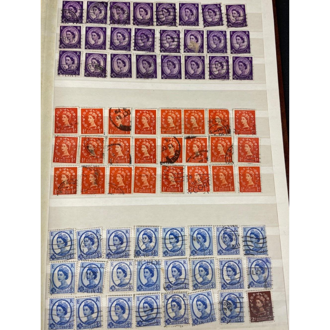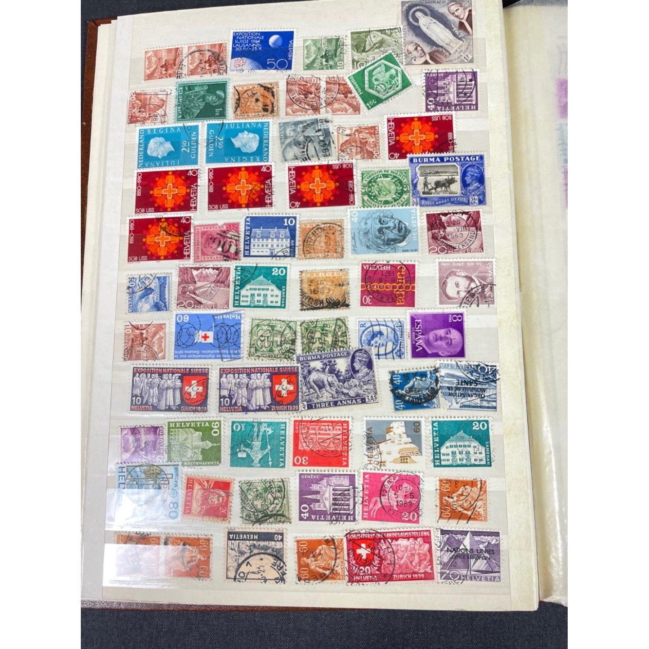 A collection of two stamp albums(brown and light brown covers) to include British Queen Elizabeth early reign stamps c50's and 60's also for Canada, Australia, Portugal, Spain, Eire, Italy France, World Colonies and World stamps