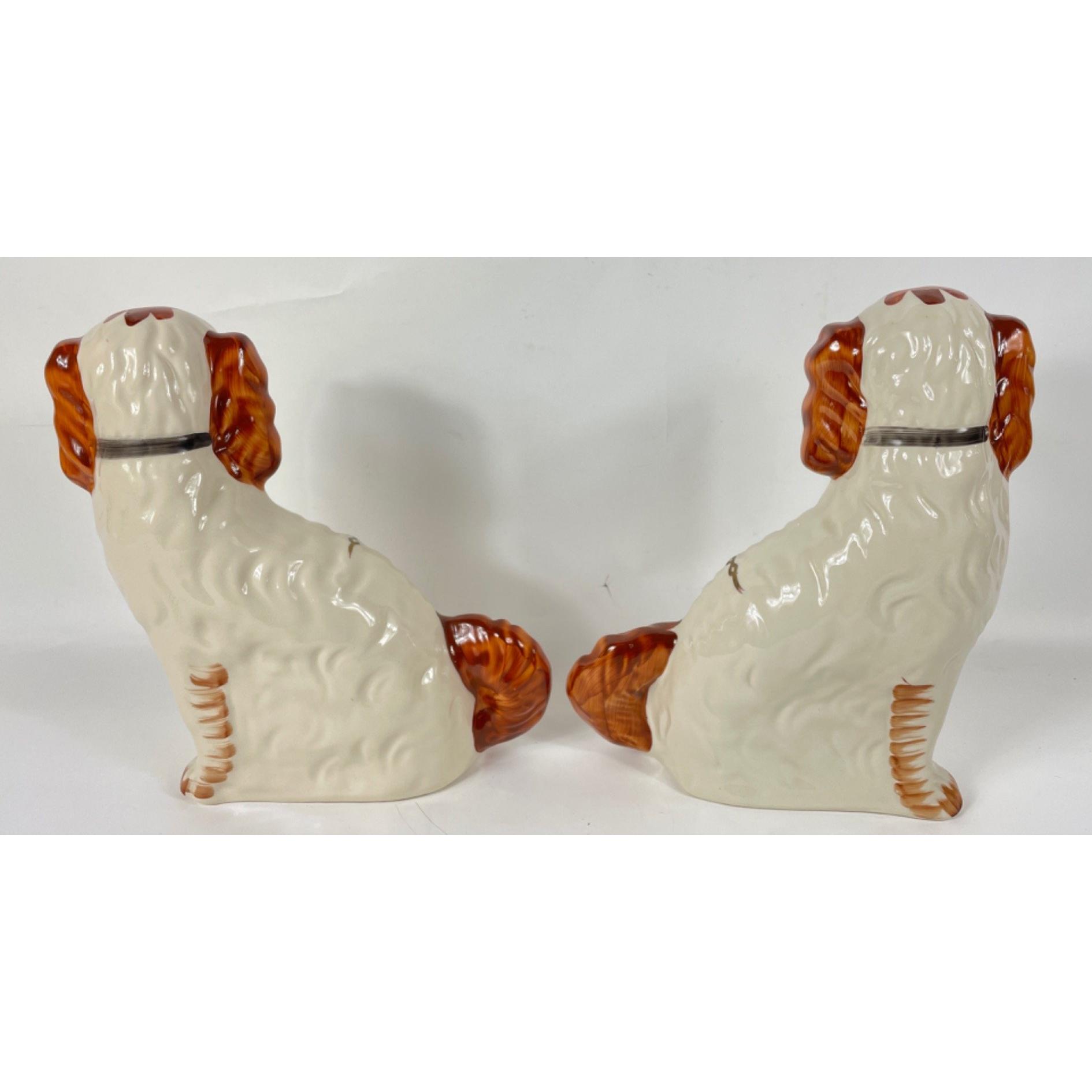 A pair of cream and brown wallie dugs made in Scotland height 29cm approx Approx 2 pieces