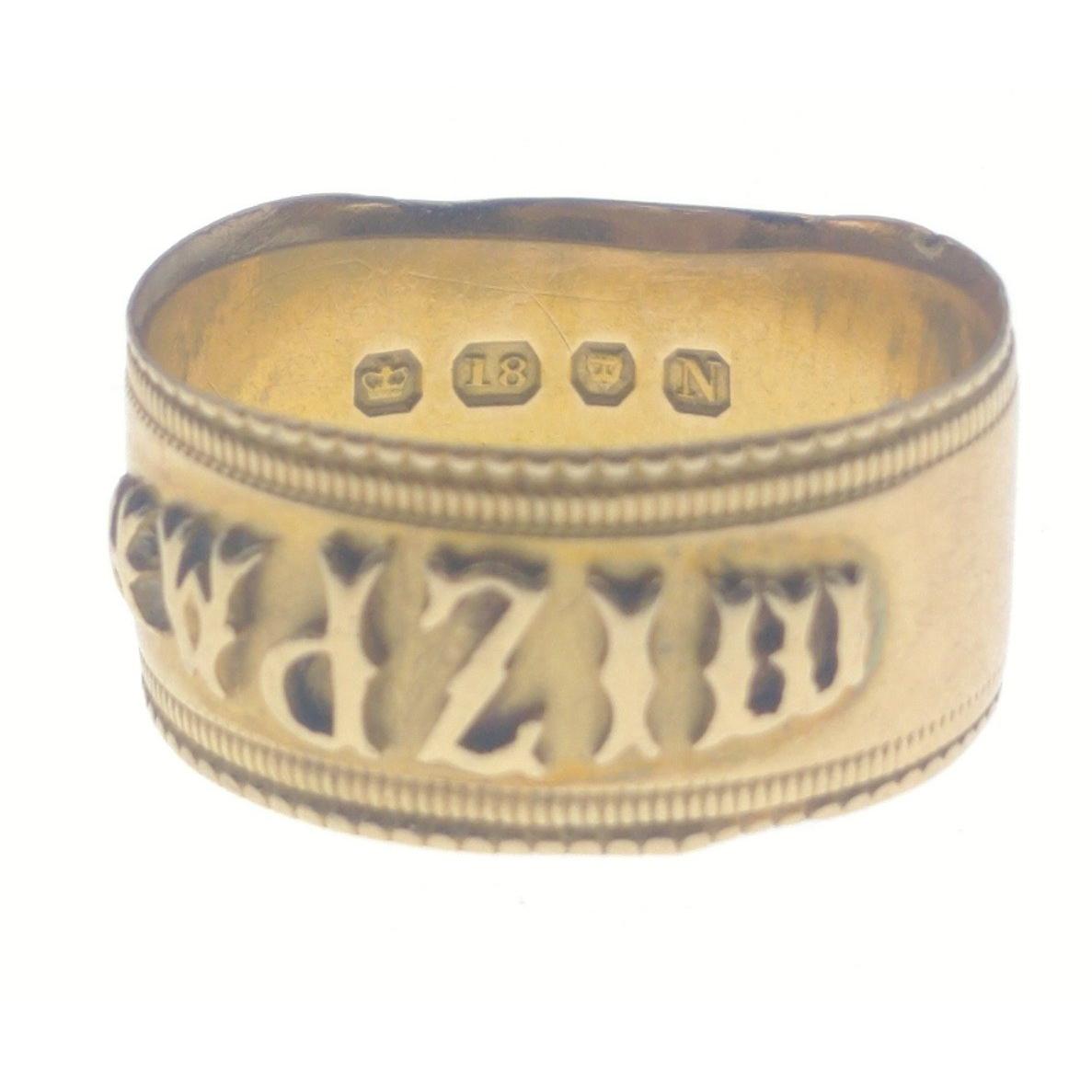 An 18ct hallmarked MIZPAH band ring size L weight 4.40g