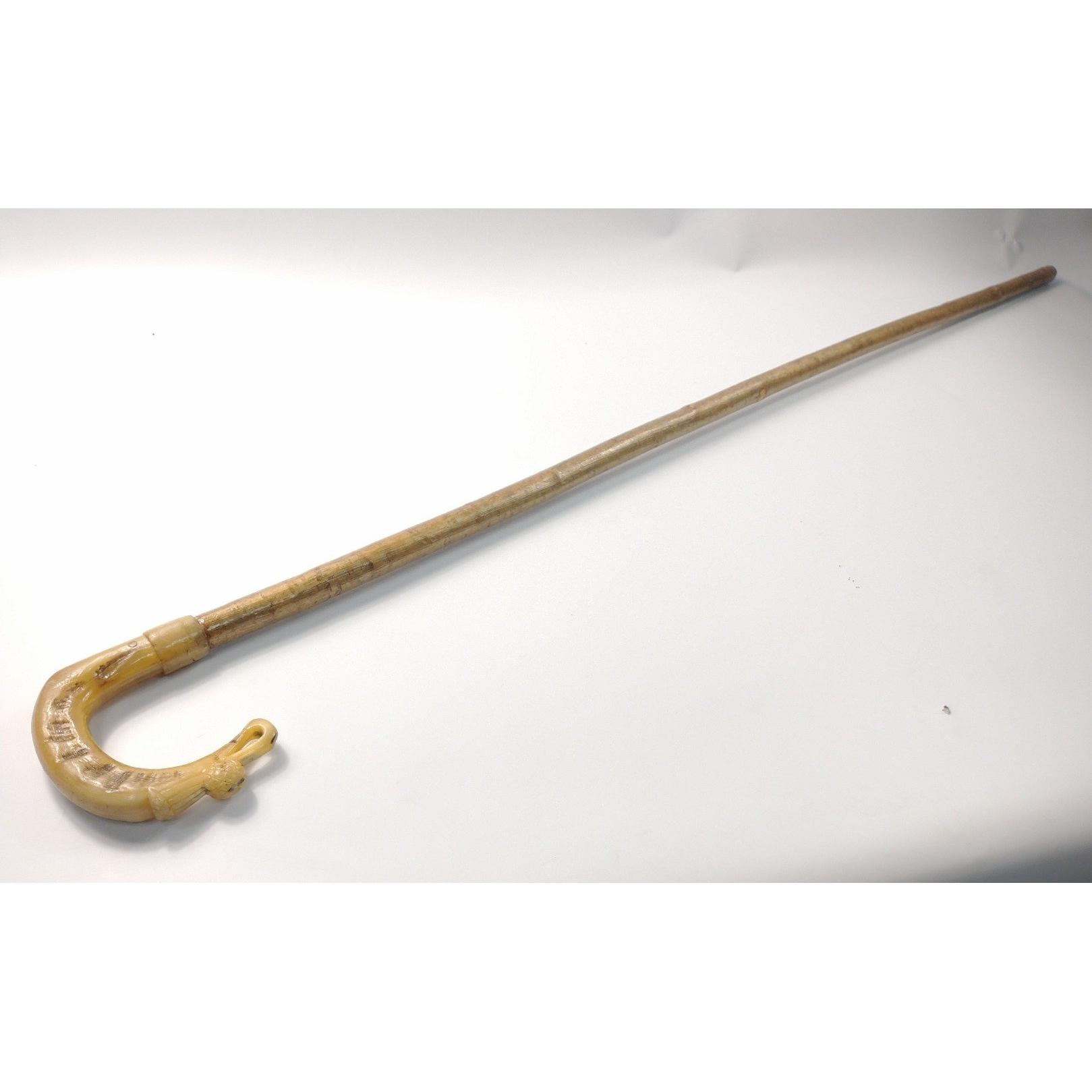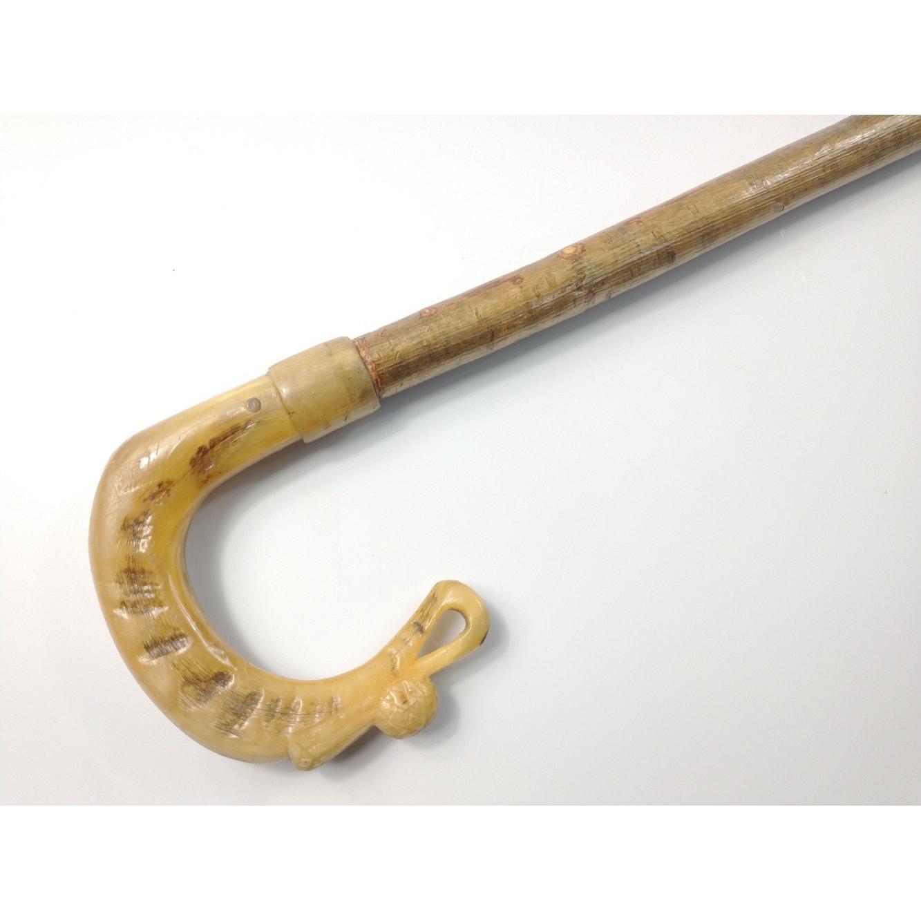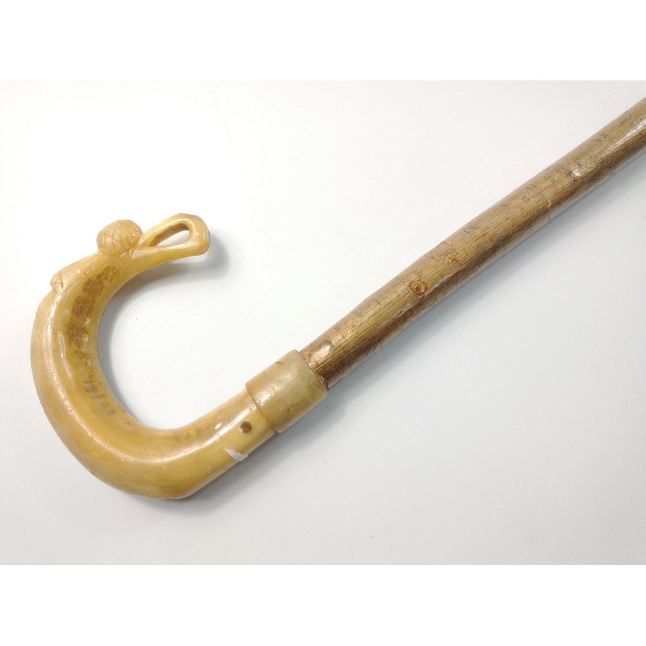 A wooden walking stick with horn handle with a carved thistle decoration, 118cm long approxApprox 1 pieces