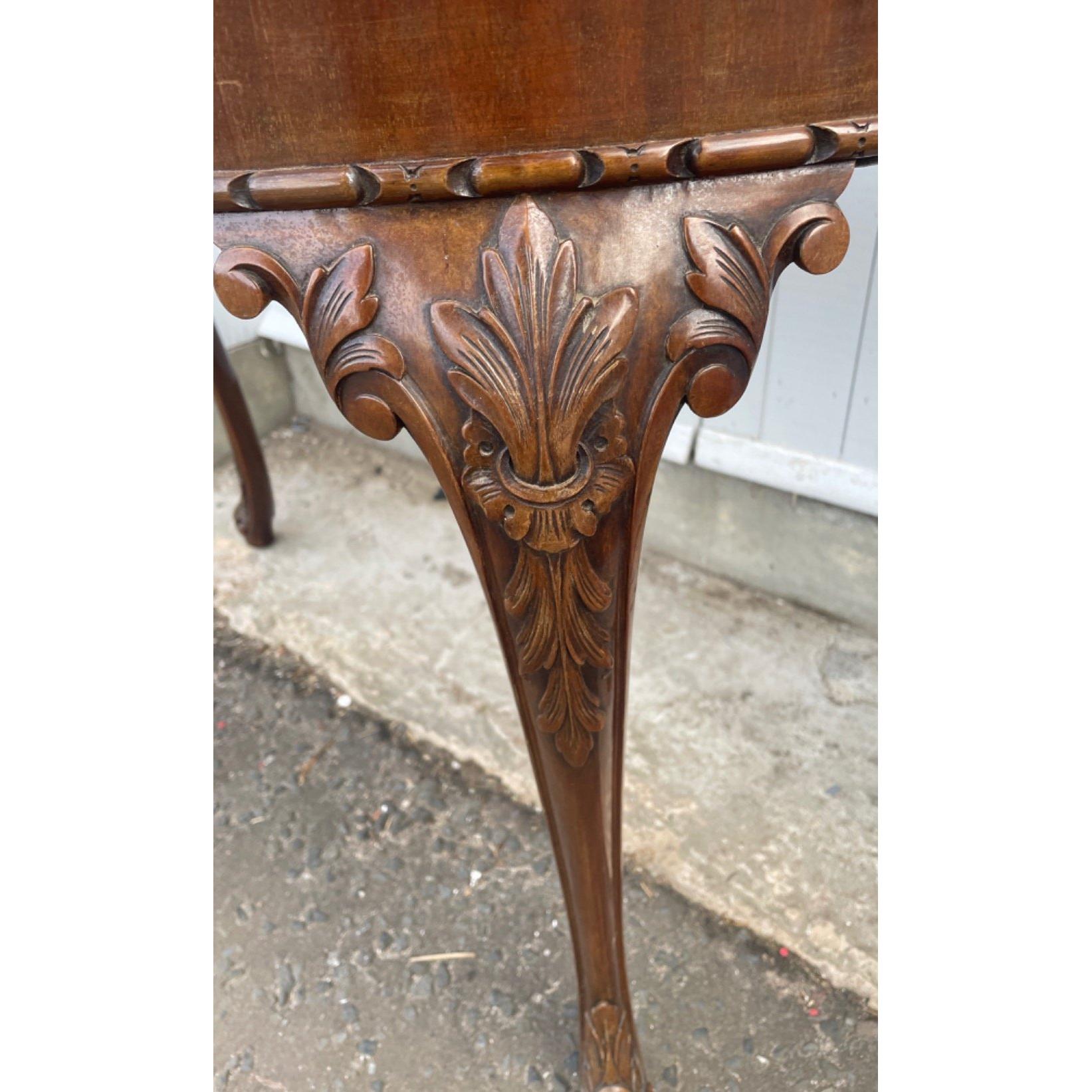 Demi-lune console table with fleur-de-lys style carvings and single drawer W: 1m approx H: 75cm approx D: 51cm approx