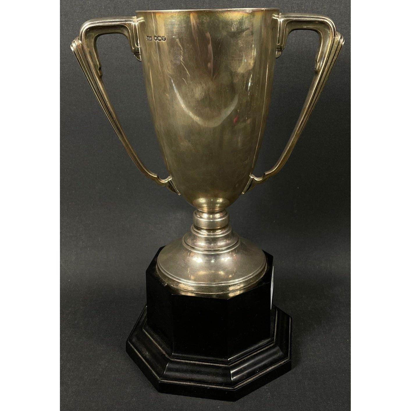 A silver hallmarked cup (no inscription so suitable for all), Sheffield 1963, with base stands 30cm tall gross weight 647gApprox 1 pieces