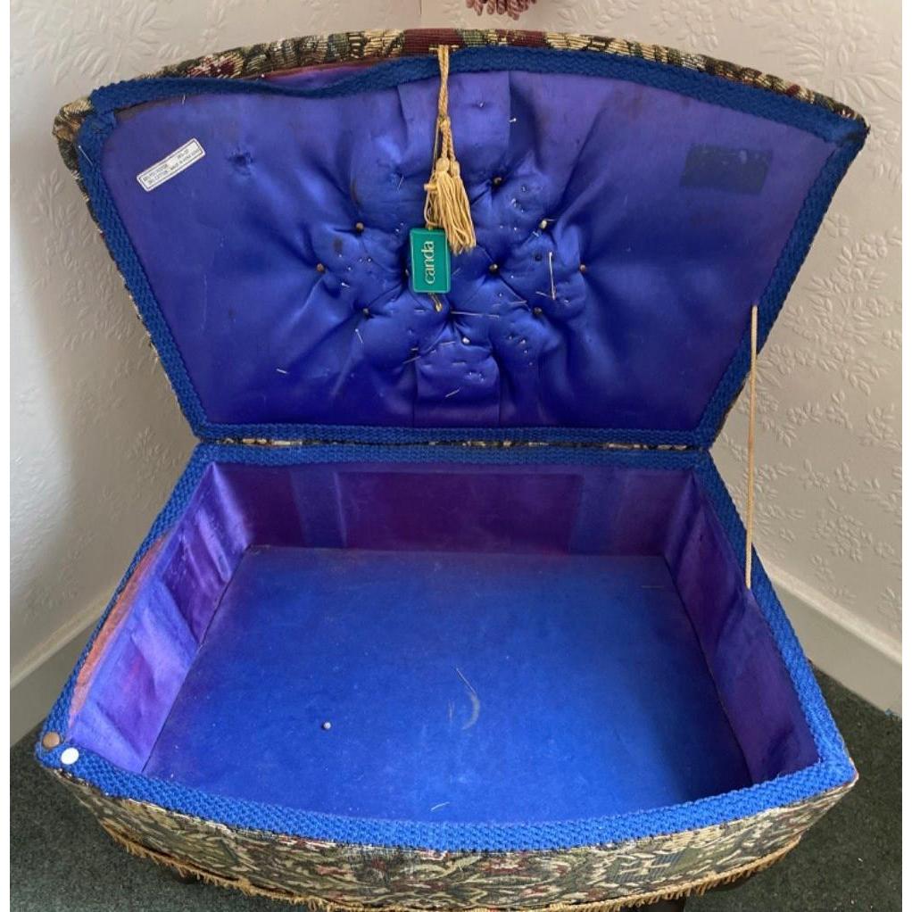A small HOBBYCRAFT SEWING BEE lidded stool - dimensions 18" across x 12" depth x 14" height approx