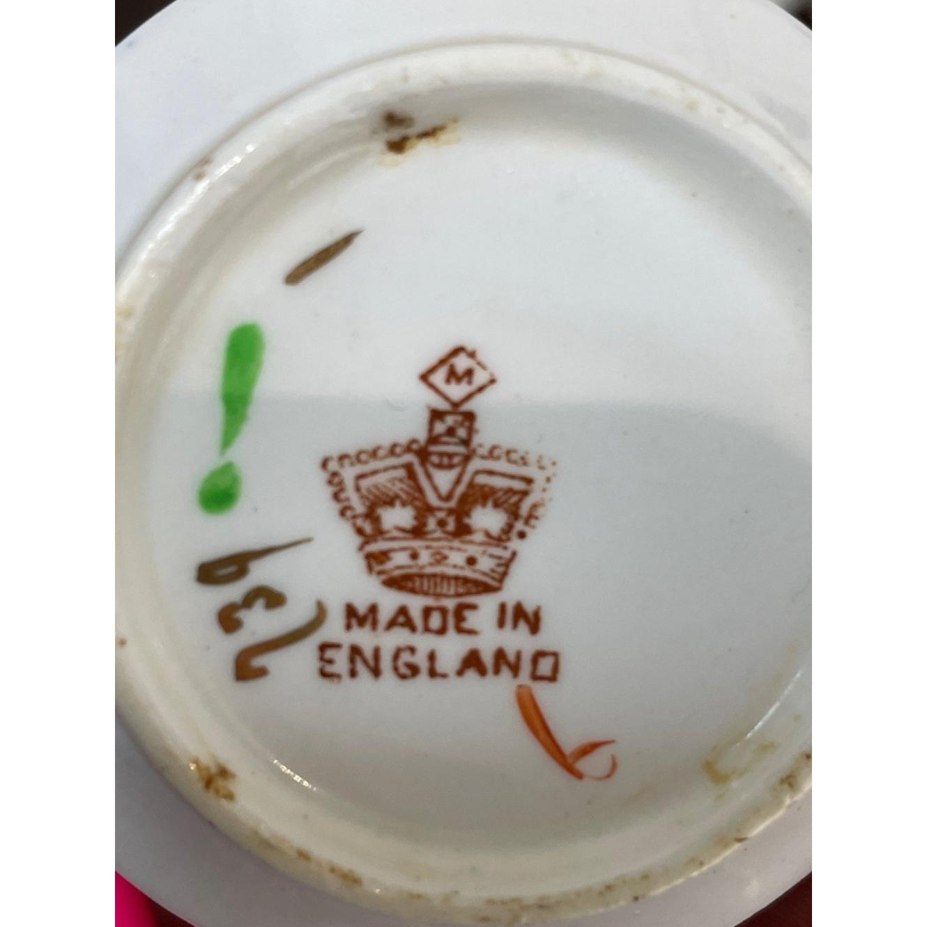 An Imari tea service possibly by Alfred Meakin comprising 10 cups (3 with cracks), 9 saucers, 14 plates, 1 bowl (23cm with some crazing), 2 sandwich plates and a teapot standApprox 37 pieces