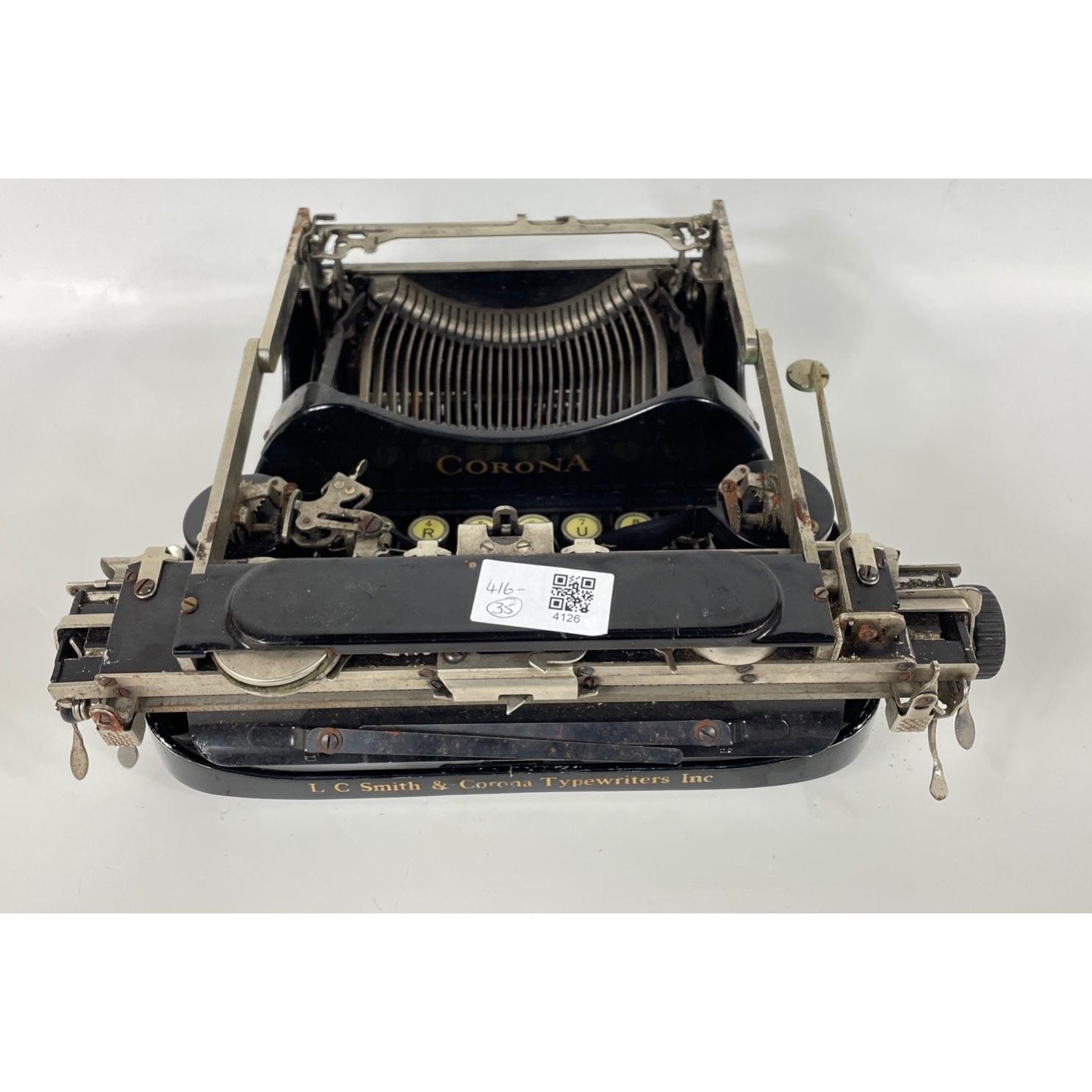 A vintage folding LC Smith & Corona typewriter 30cmWx23cm Dx10cmH, comes with brush for cleaning letters etcApprox 1 pieces