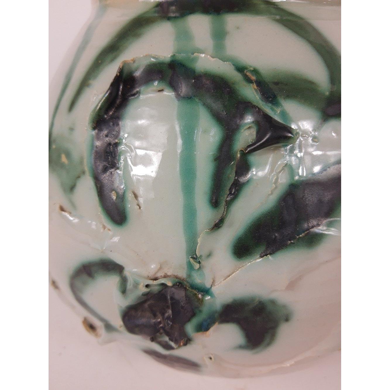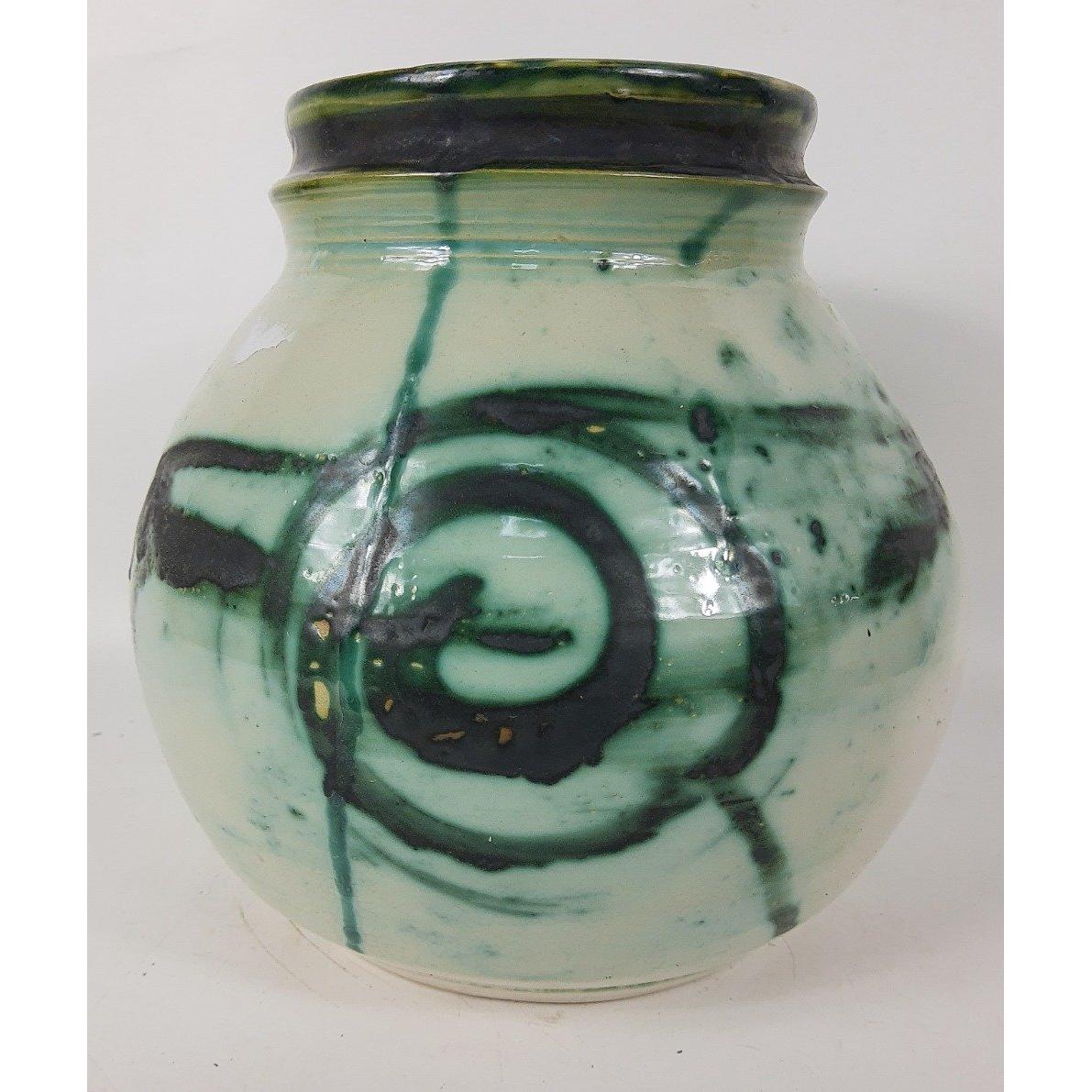 A large studio pottery vase in shades of green standing 24cm highApprox 1 pieces