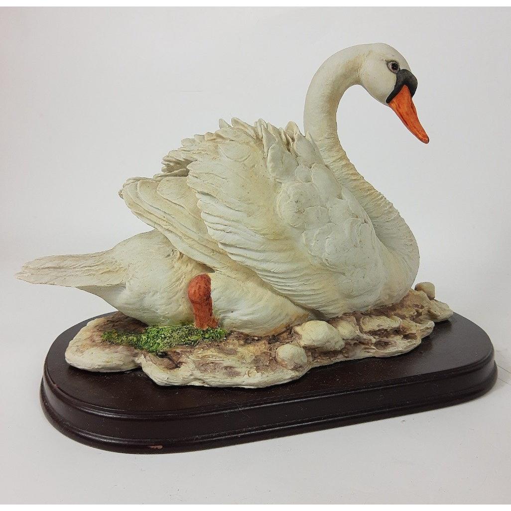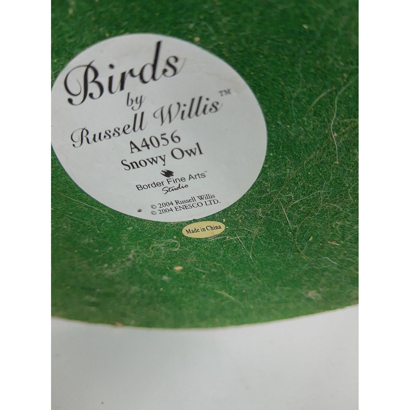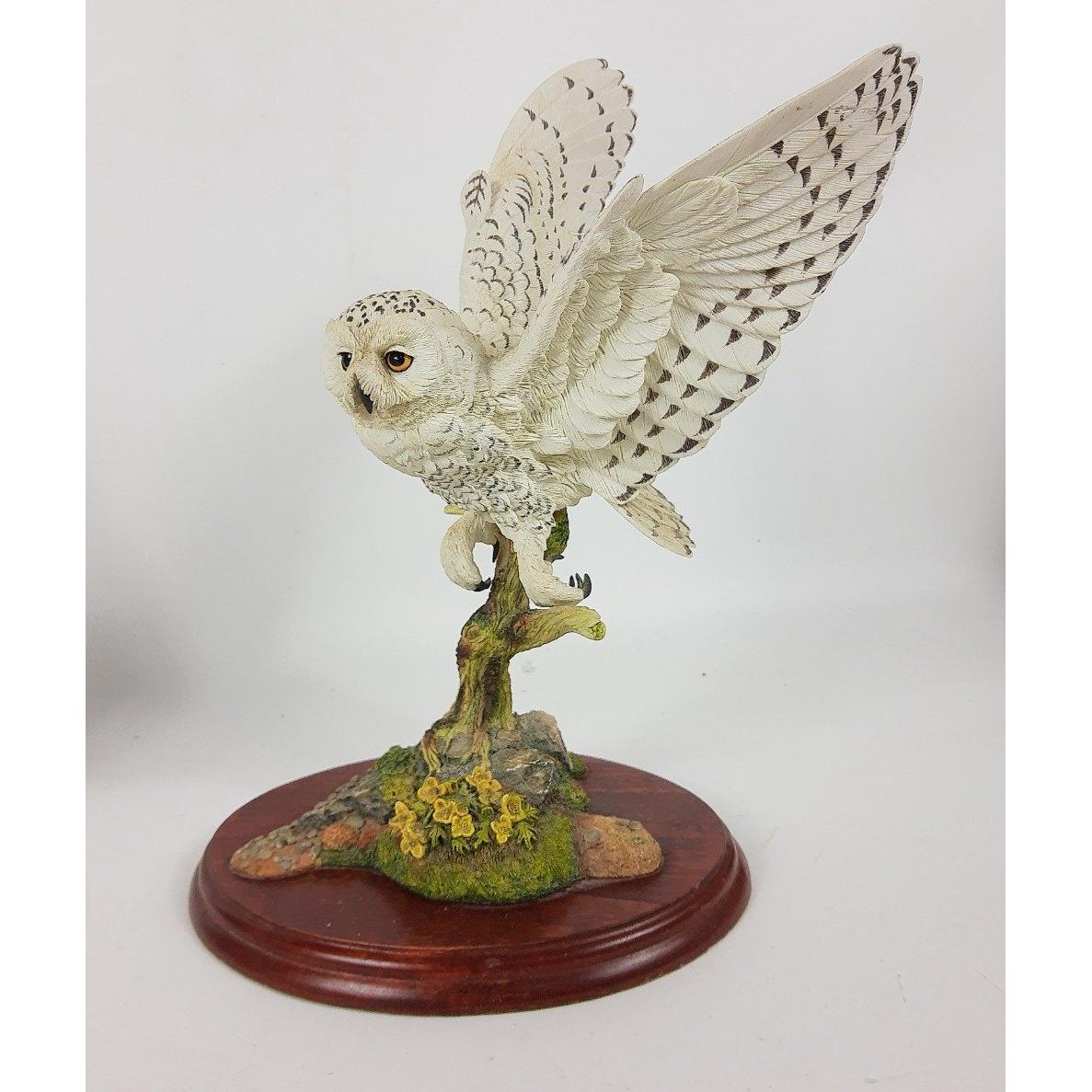 A Border Fine Arts SNOWY OWL (A4056) by Russell Willis standing 28cm tall, and a large LEONARDO Collection group of a pair of emperor penguins standing 26cm tall), and a large LEONARDO swan standing 20cm tall