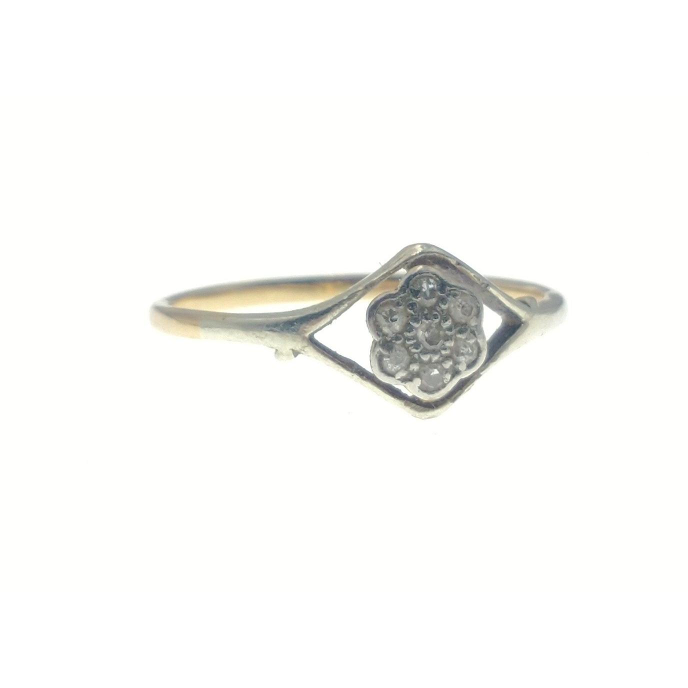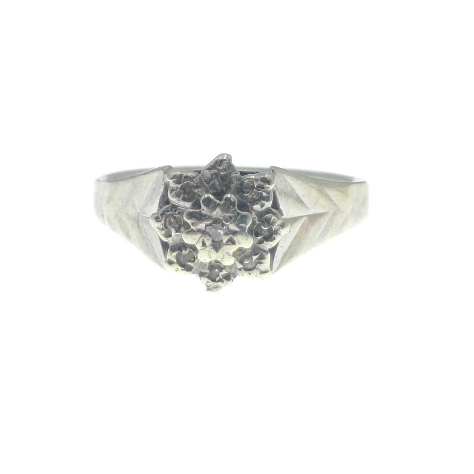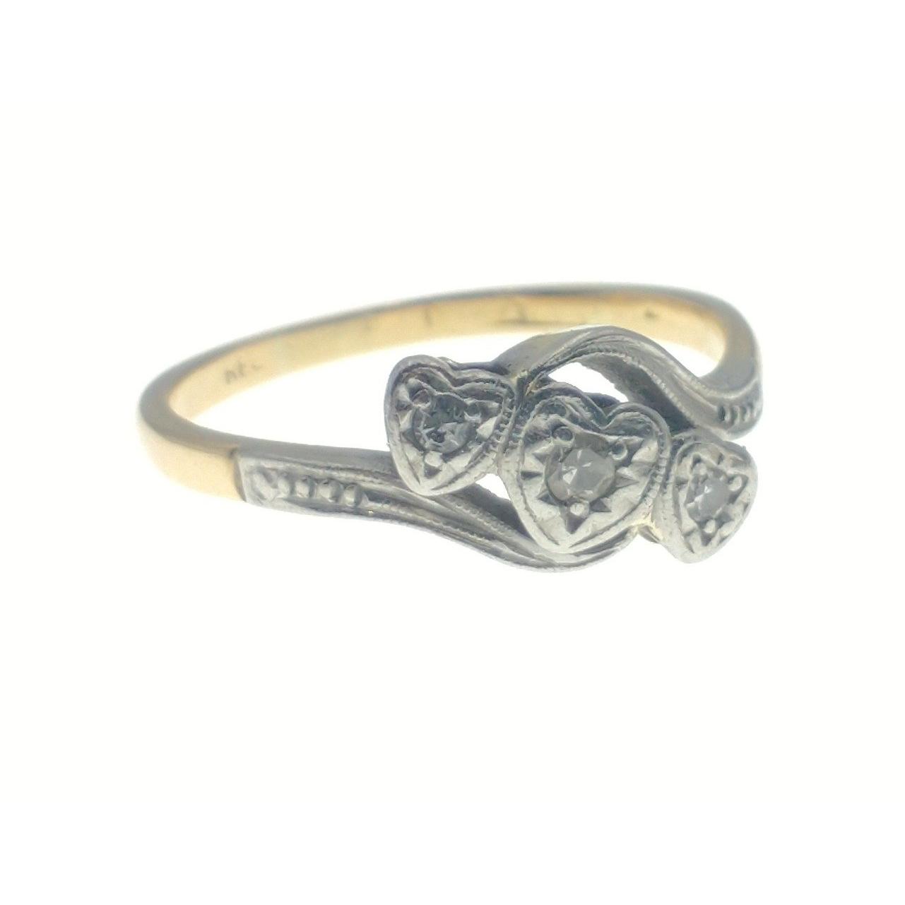 Three 9ct rings to include a small floral set diamond size N, a three stone heart set ring size L and an illusion set floral style size N gross weight 7.15gApprox 3 pieces