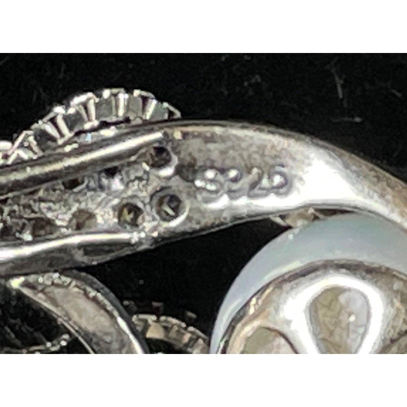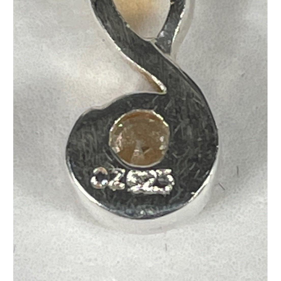 Four various 925 stamped silver necklaces to include a cross and chain, a Rennie Mackintosh style pendant and chain, a scroll and white stone pendant and chain and a pearl-set pendant and chain gross weight 11.55g