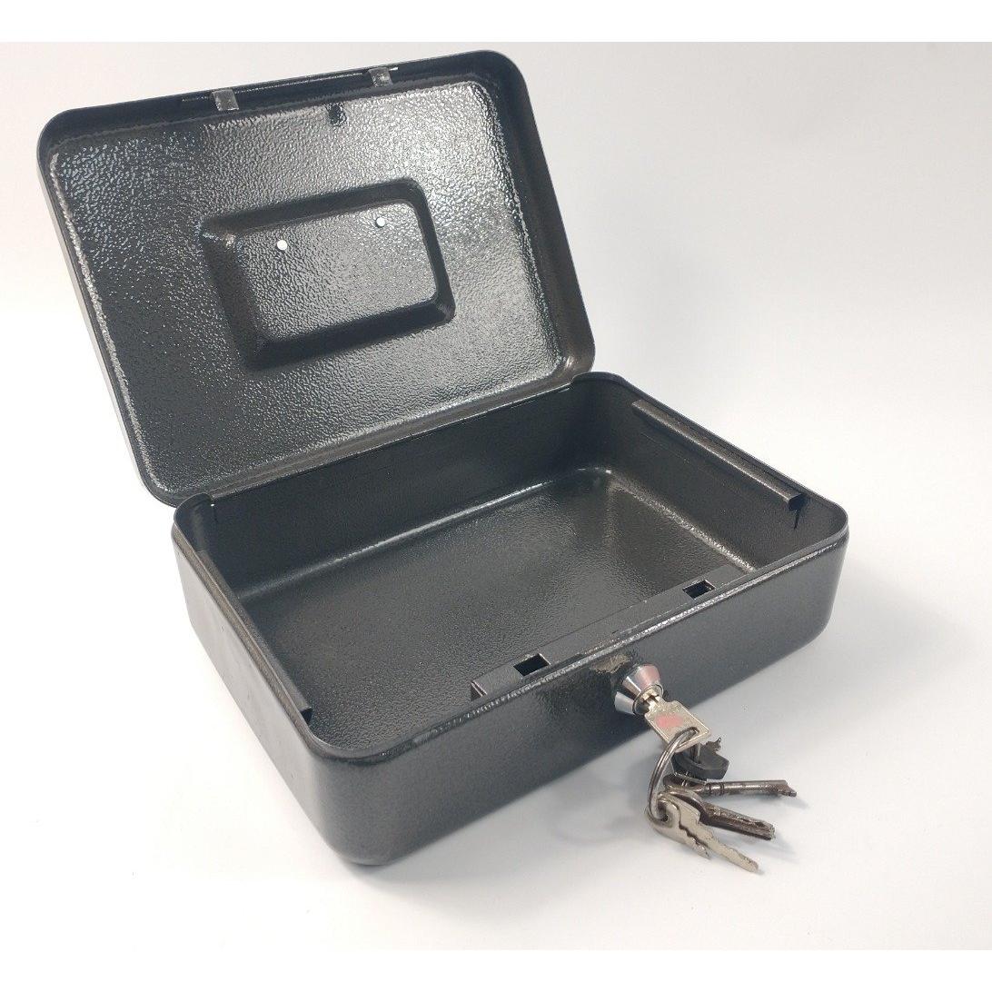 A vintage locking (comes with key) BOSTITCH money box in grey 24x18x9cmApprox 1 pieces