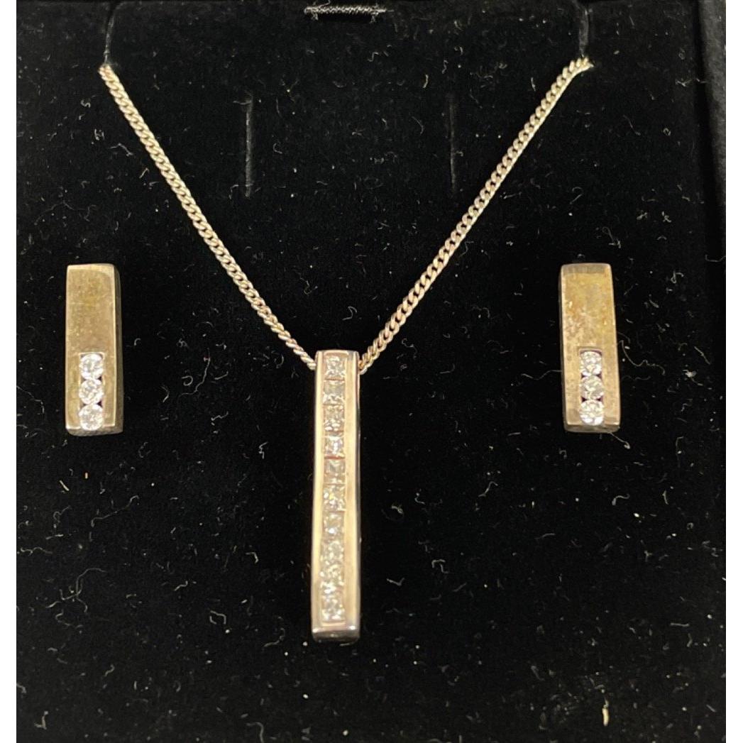 A REAL 925 SILVER pendant and chain with matching earrings with sparkly white stones with also 5.55g gross 925 stamped, lilac oval stone with a silver effect pattern necklace - both boxedApprox 2 pieces