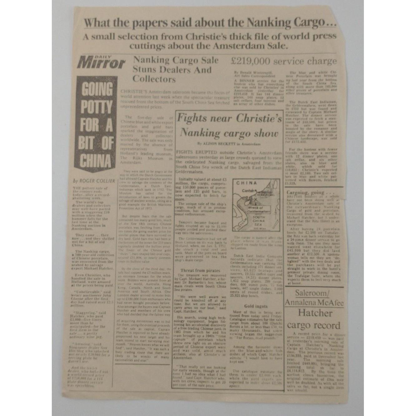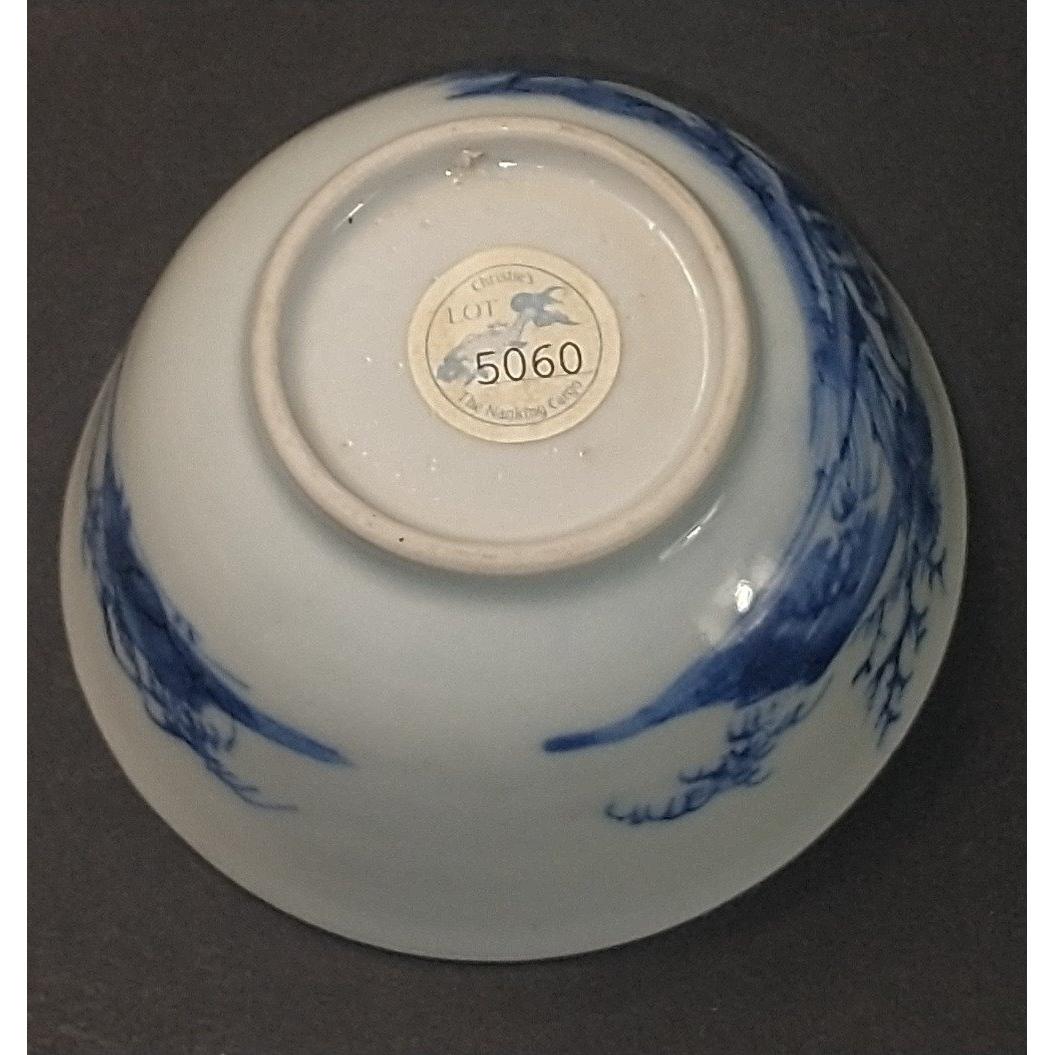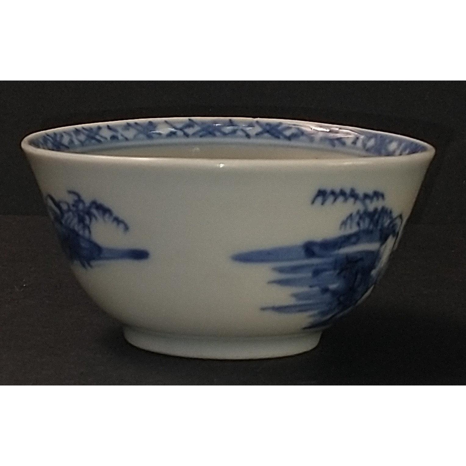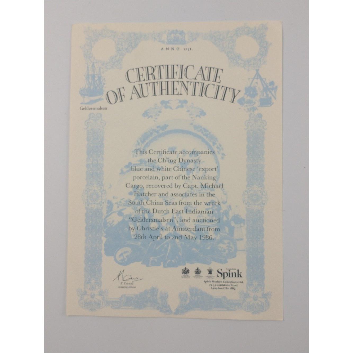 A TEABOWL AND MATCHING SAUCER from the CH'ing Dynasty blue and white export porcelain rescued from the Dutch East Indian GELDERSMALSEN shipwreck in the South China Seas by Captain Michael Hatcher - auctioned at CHRISTIES at AMSTERDAM MAY 1986 - comes with certificate of authenticity and a fascinating newspaper clipping