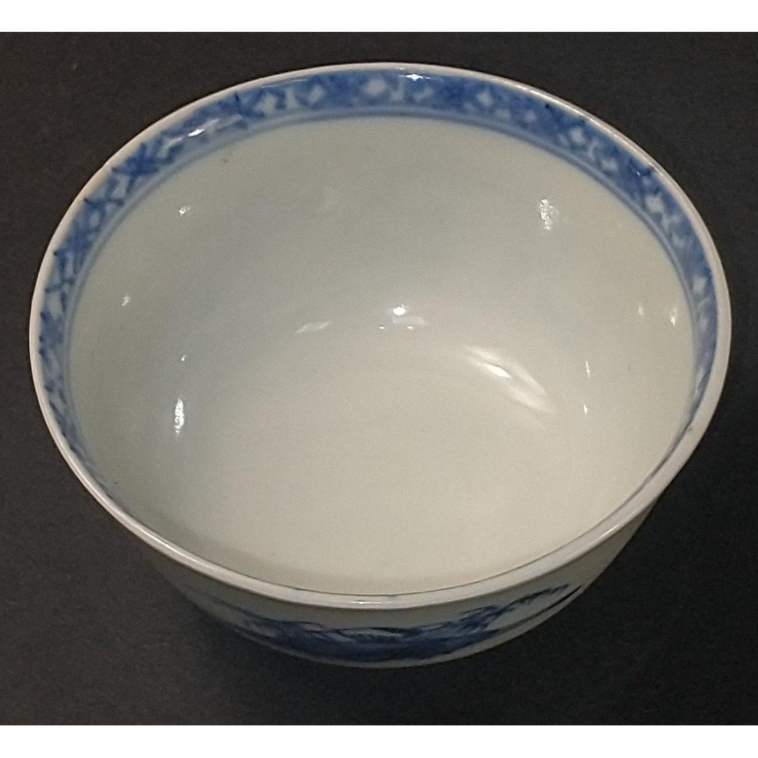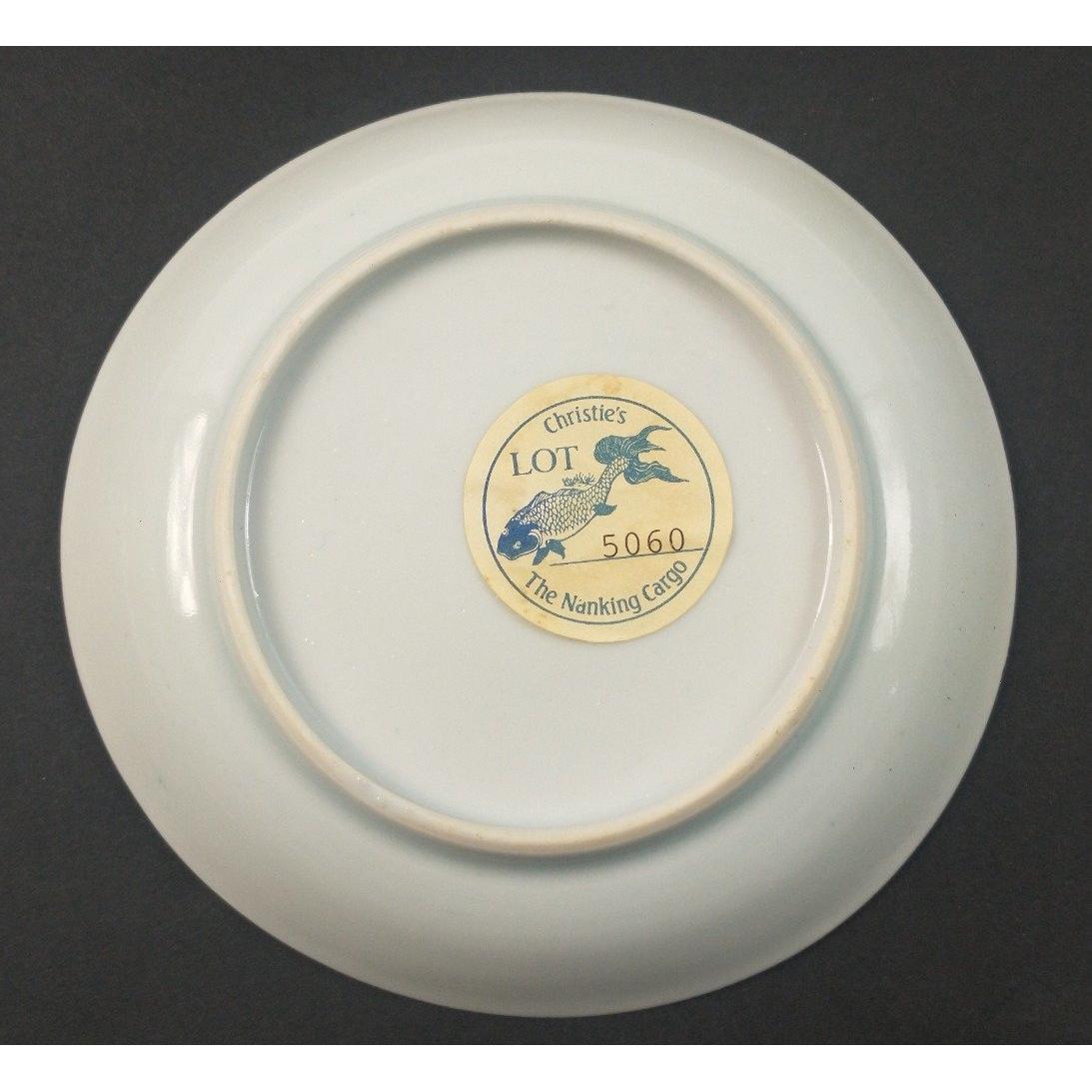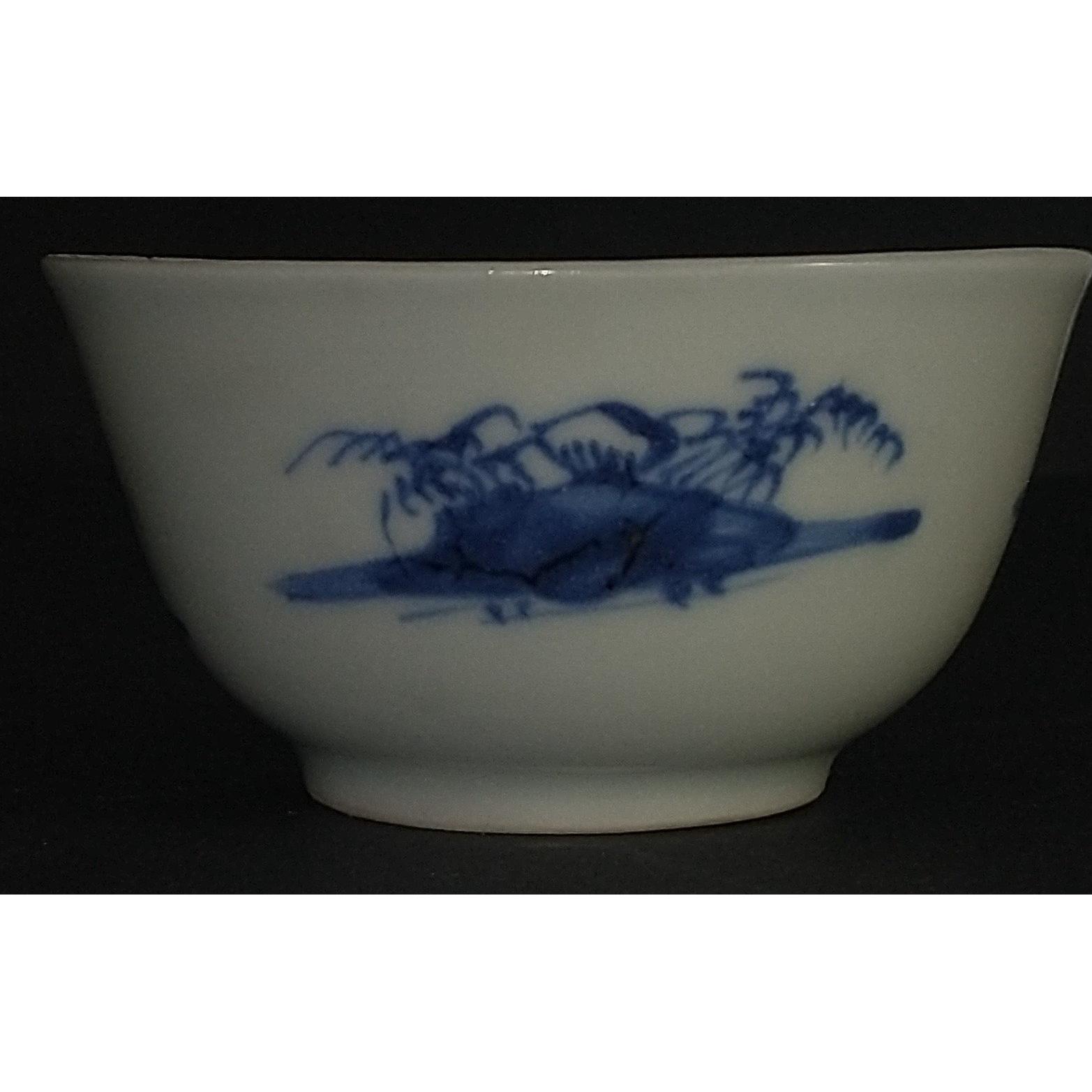 A TEABOWL AND MATCHING SAUCER from the CH'ing Dynasty blue and white export porcelain rescued from the Dutch East Indian GELDERSMALSEN shipwreck in the South China Seas by Captain Michael Hatcher - auctioned at CHRISTIES at AMSTERDAM MAY 1986 - comes with certificate of authenticity and a fascinating newspaper clipping