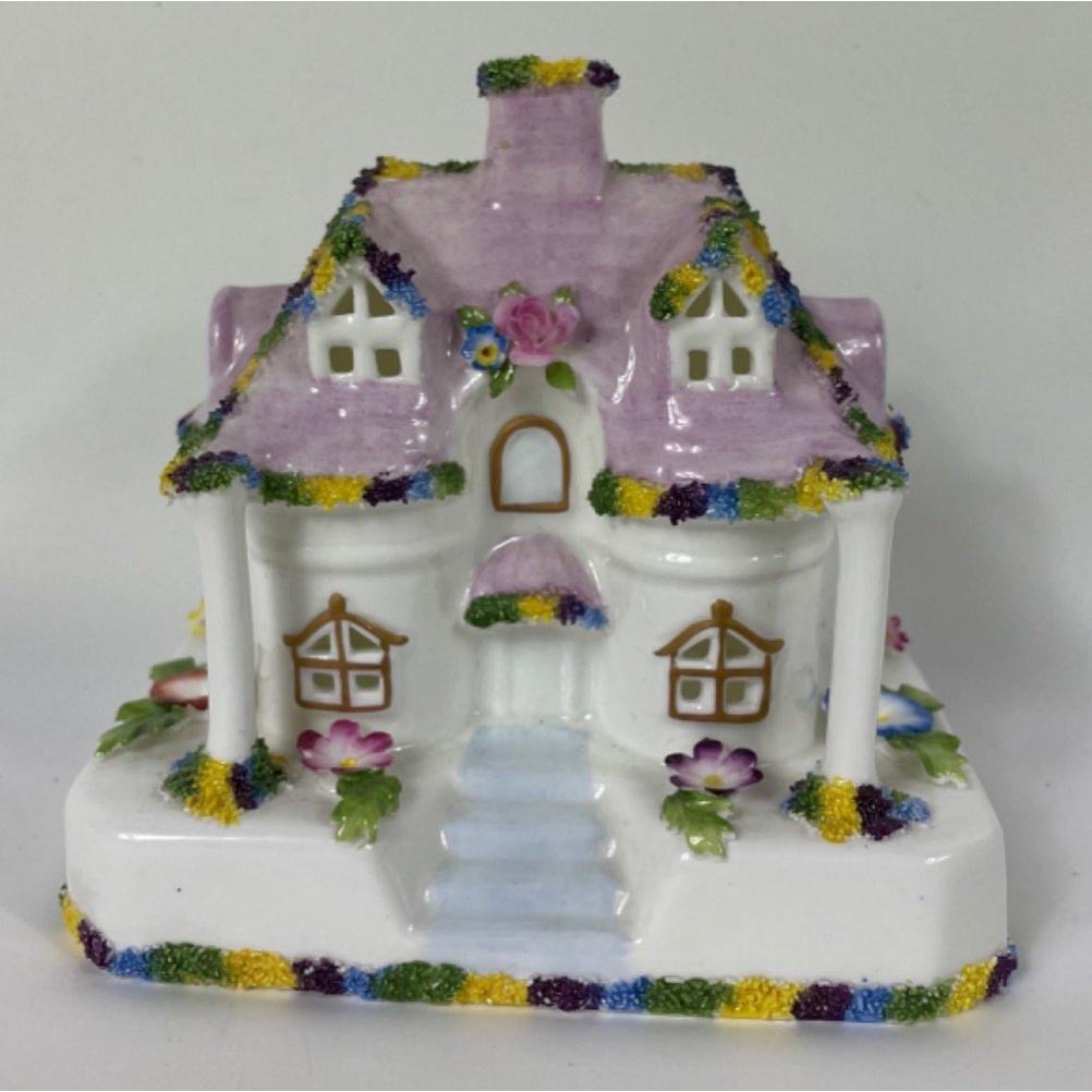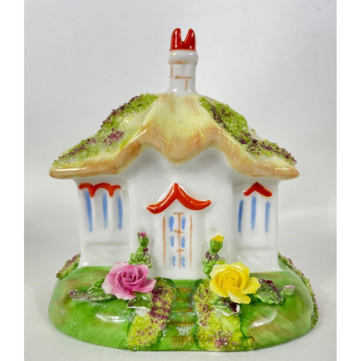 Two Porcelain cottages, 1 '' THE COUNTRY COTTAGE ' by COALPORT [11cm by 12cm] and 2 Hand modelled cottage by DENTON.[10cm by 10cm]Approx 2 pieces