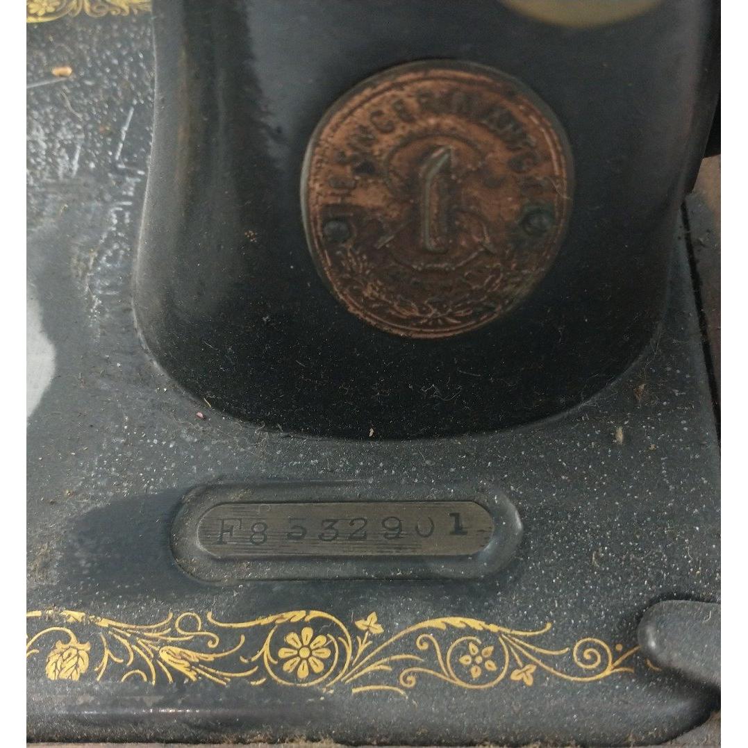 A hand-operated SINGER SEWING MACHINE in a wooden case with the registration number F8332901 dating it to 1918 Approx 1 pieces