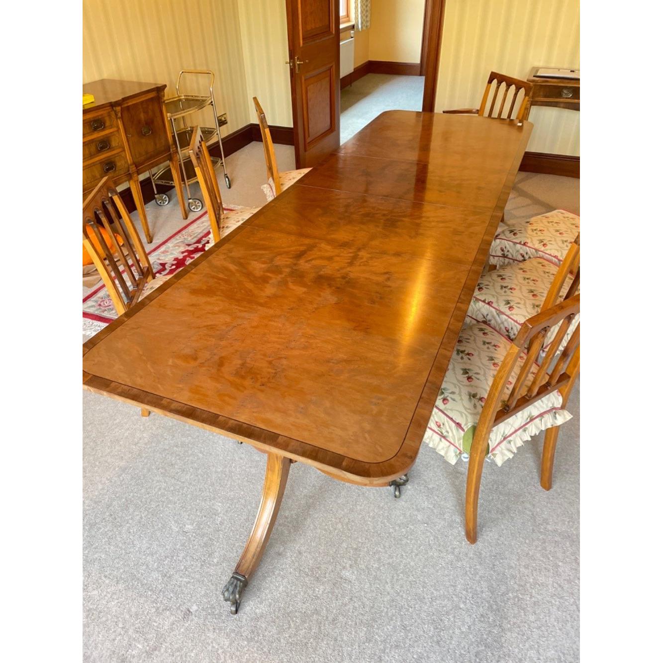 BEAUTIFUL FORMAL GEORGIAN STYLE DINING TABLE ON PEDASTAL LEGS with two extendable leaves extending to 284cm( 9ft) x 92cm width - each leaf width being 46cm to include also six marvellous dining chairs and two CARVERS