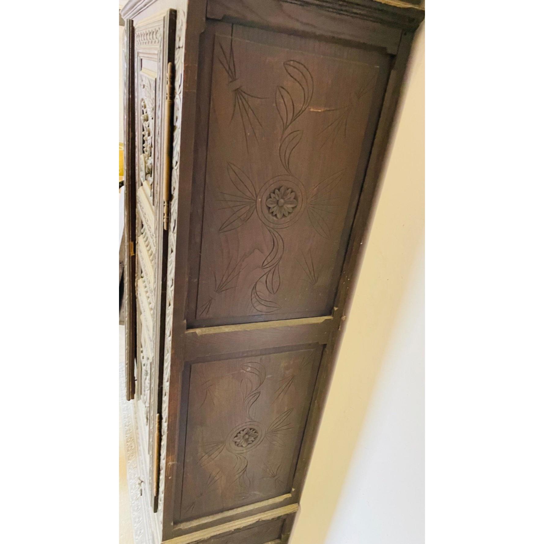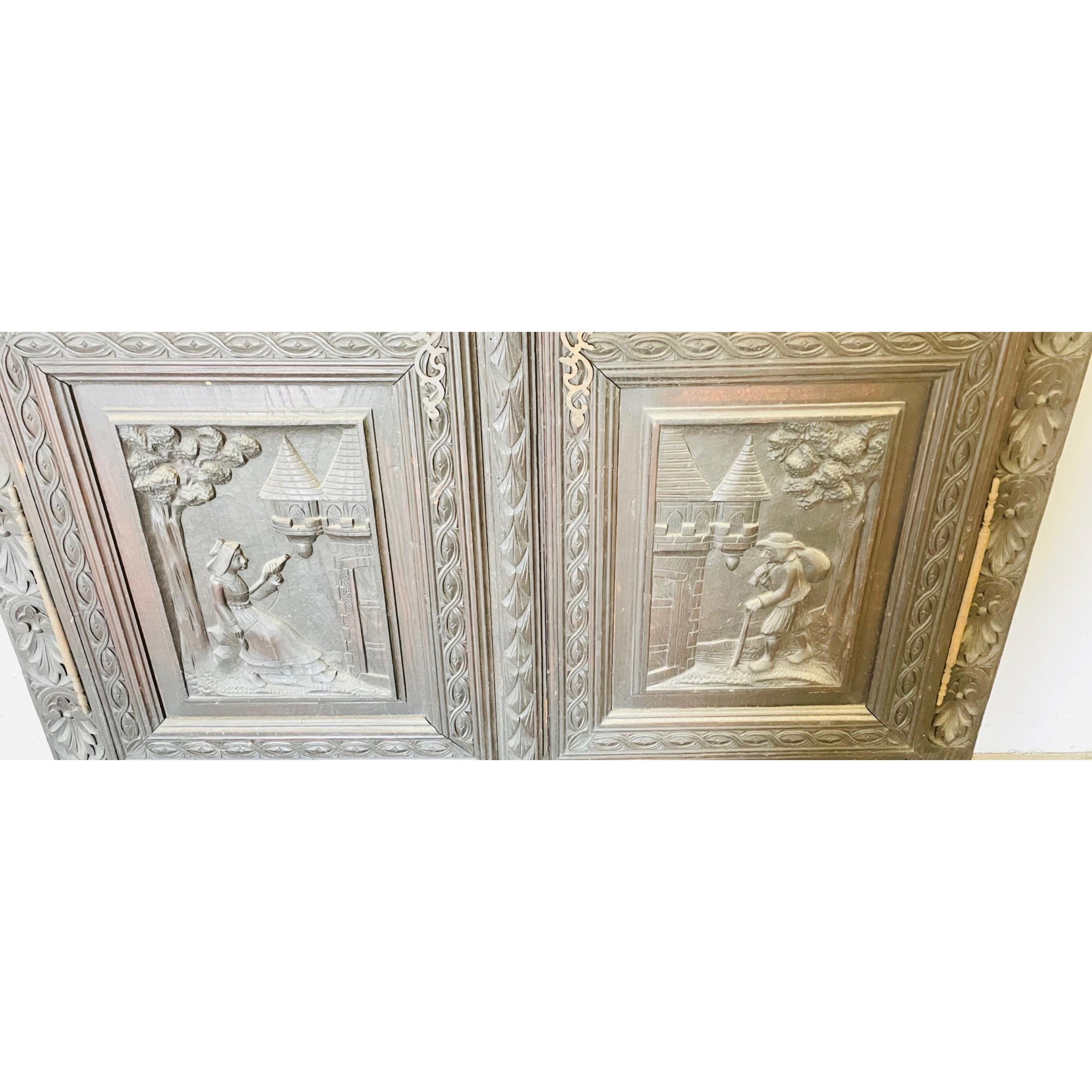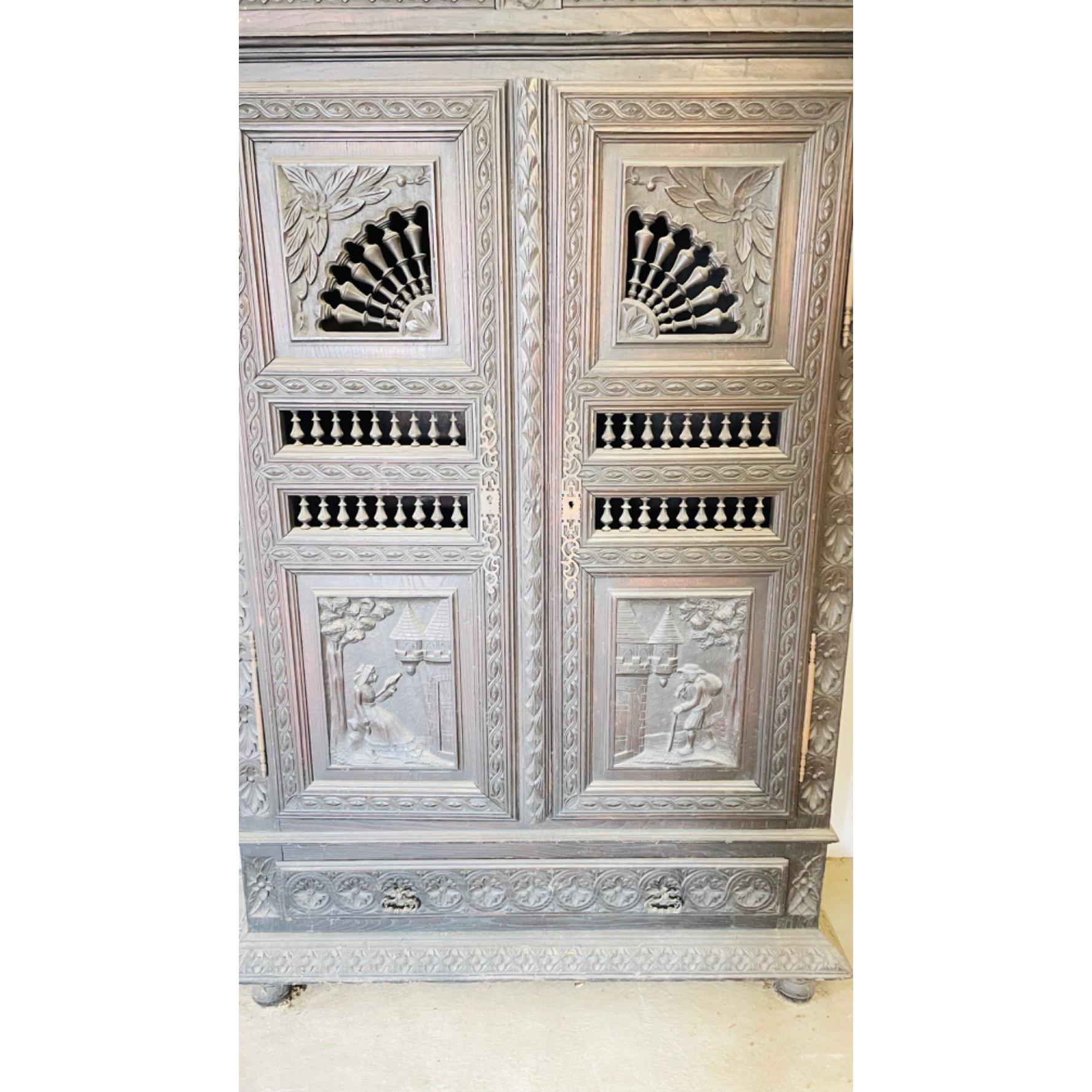 A MAGNIFICENT ANTIQUE early c1800's DUTCH tall ebonised wardrobe intricately hand carved - dimensions 216cm tall( top pelmet lifts-off 40cm height ) width 116cm and depth 43cm note top roof(unseen part) part has evidence of woodworm, which has been treated but could easily be replaced