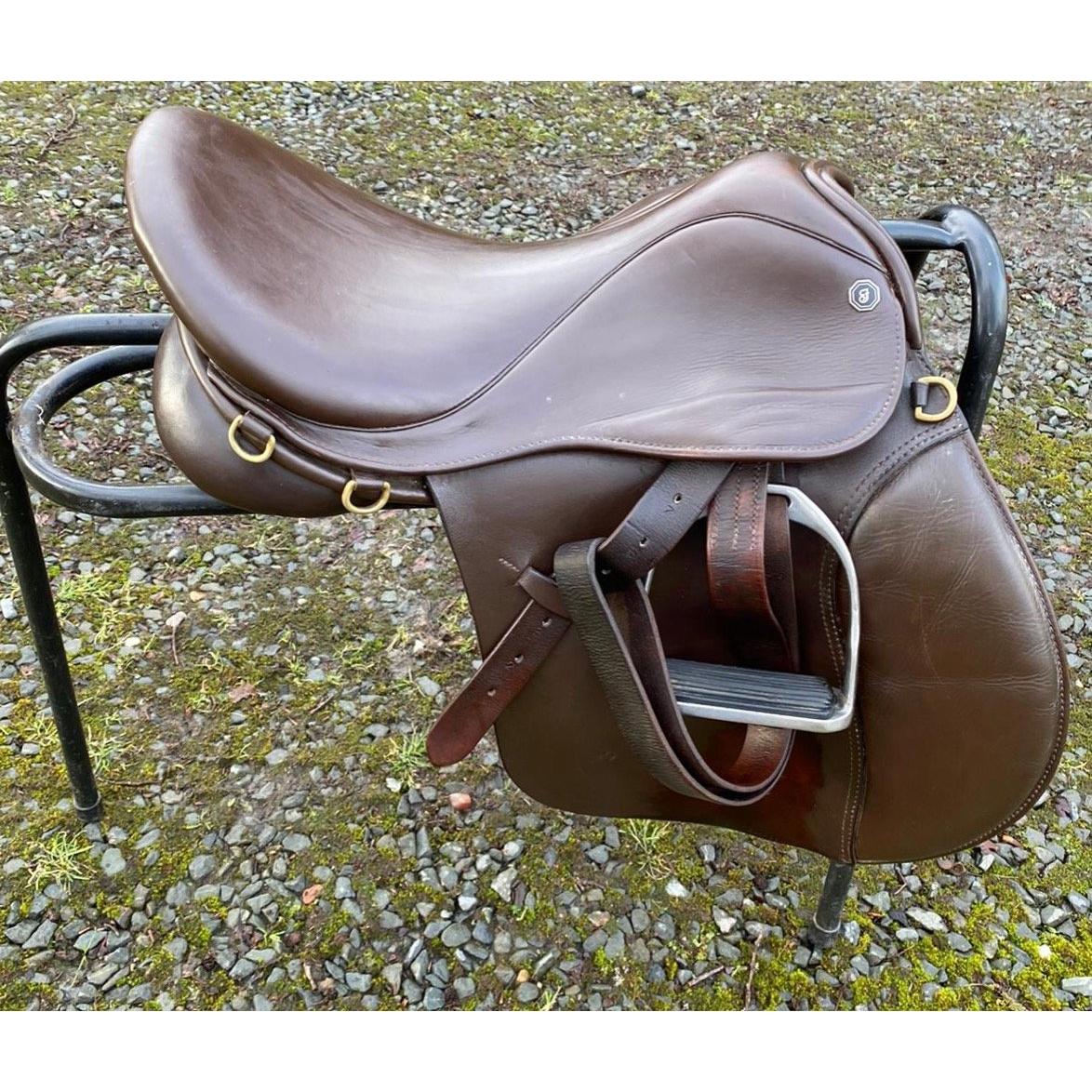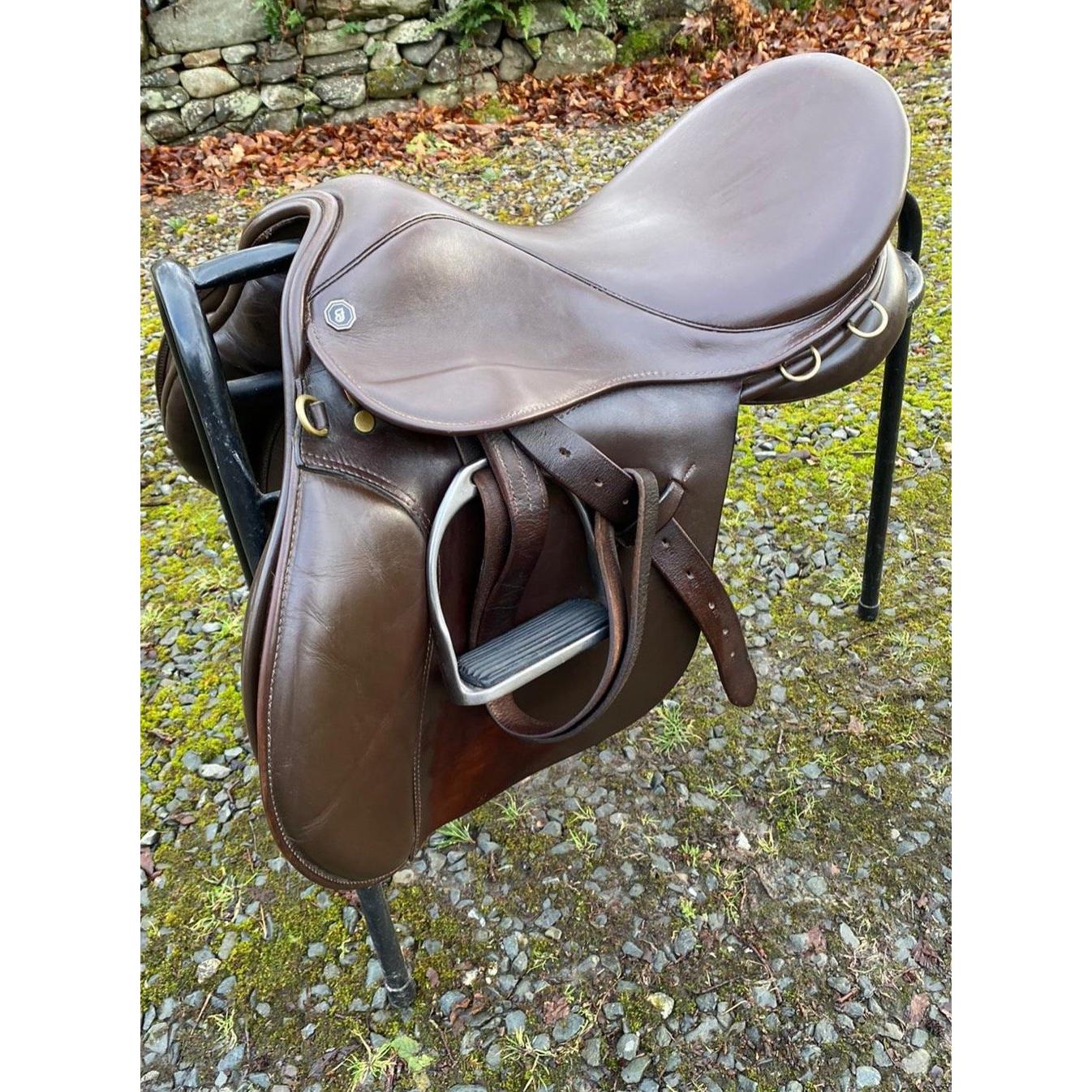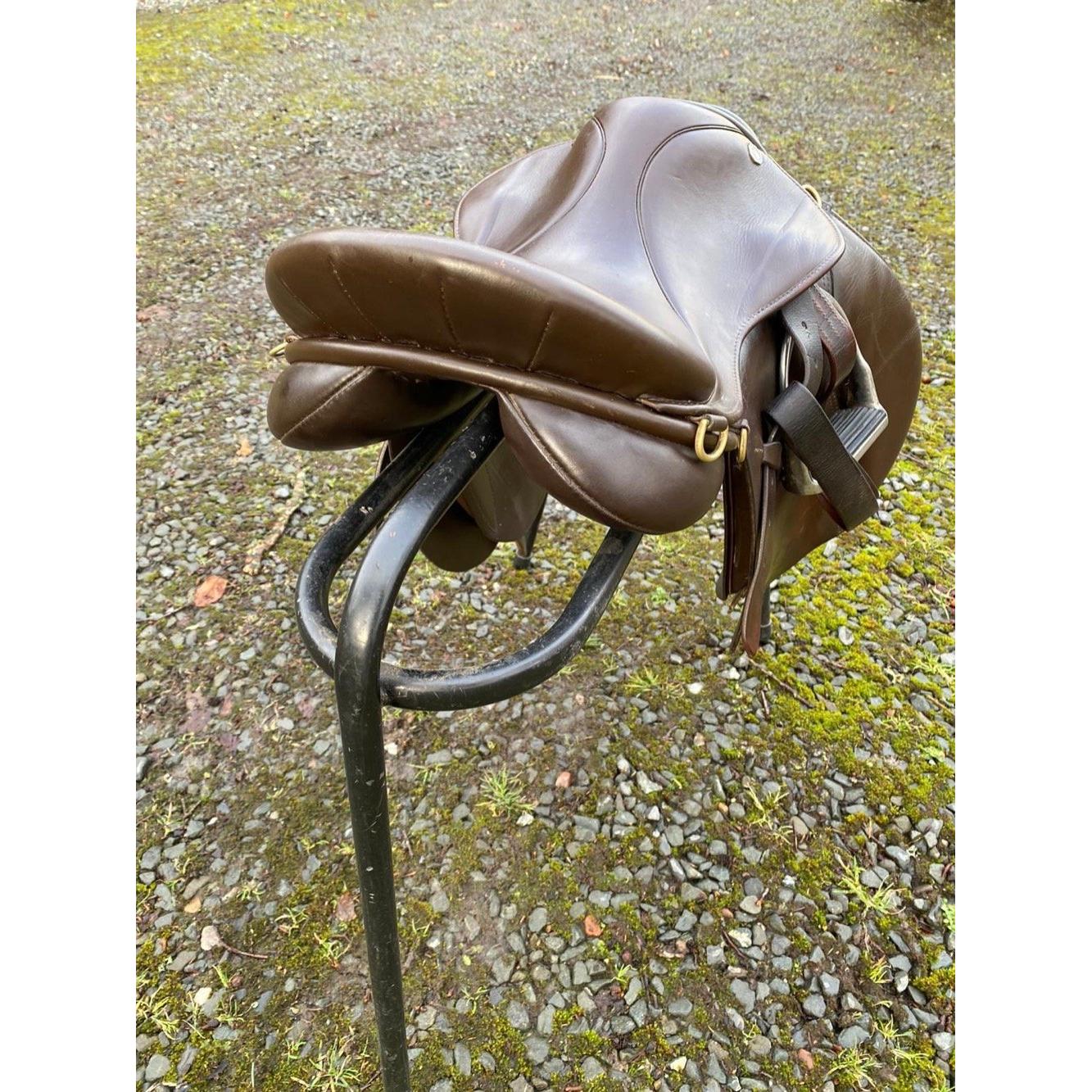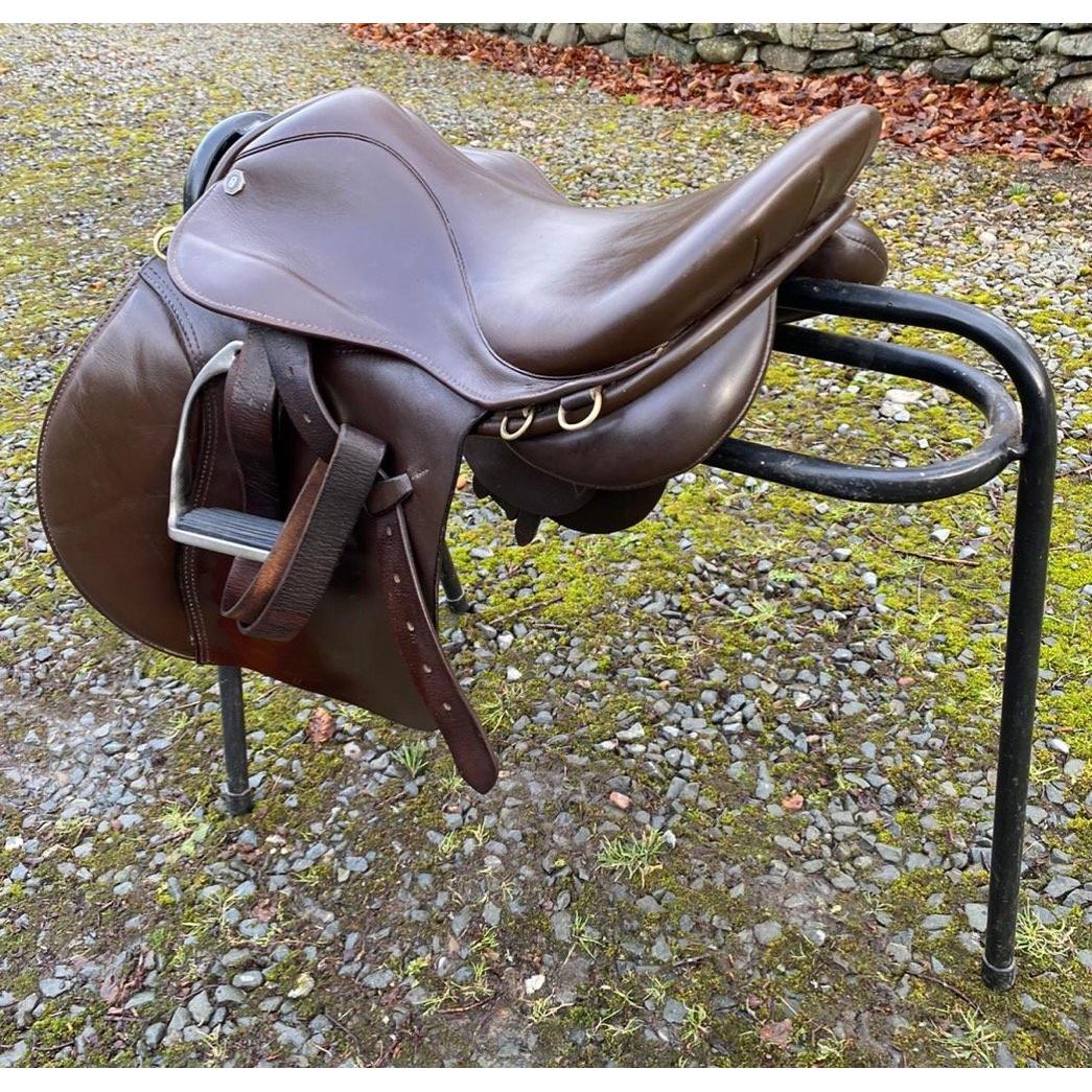 A 16" (5.5/6" at the pommel) FARRINGDON handmade(general purpose) 'VSD' brown leather saddle of the highest quality! Comes with stirrups and leathers - Comes with its very own saddle stand!