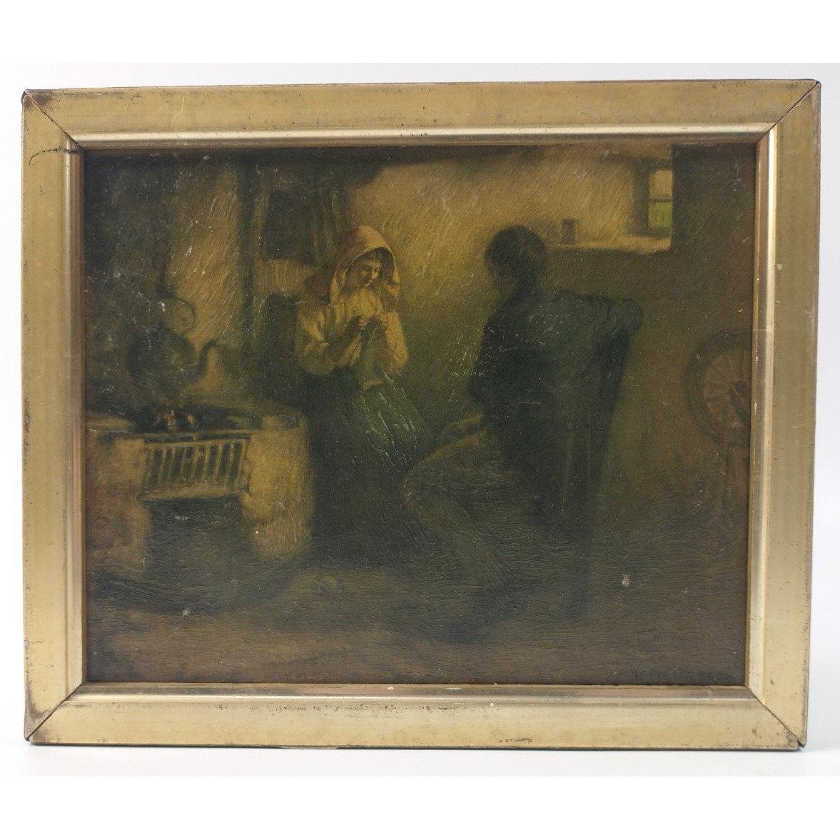 Of local interest - two oleographs by HENRY JOHN DOBSON ARCA RSW (1858-1928) being THE OOTTERS HOME and BURNS'S WOOING 26x22cm approxApprox 2 pieces