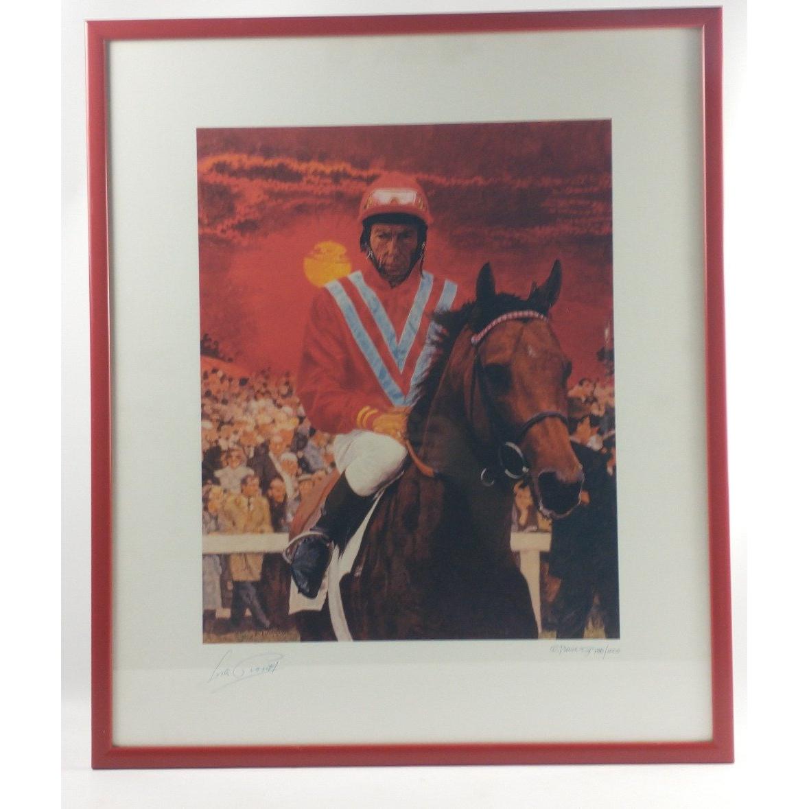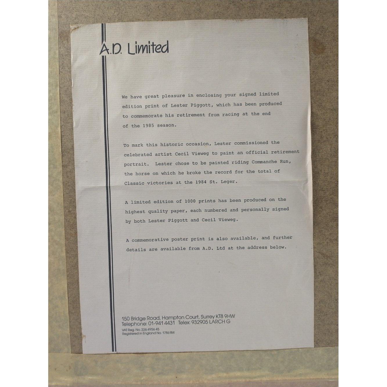 A LESTER PIGGOT by Cecil Vieweg signed Limited edition print, a portrait to mark his official retirement, 198/1000 produced, in a smart red frame!L: 38cm approx H: 46cm approx