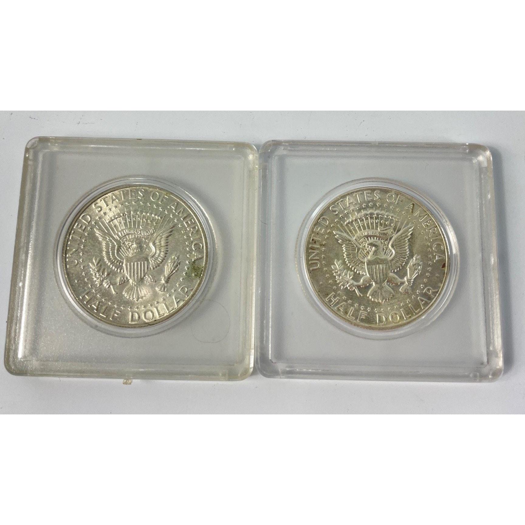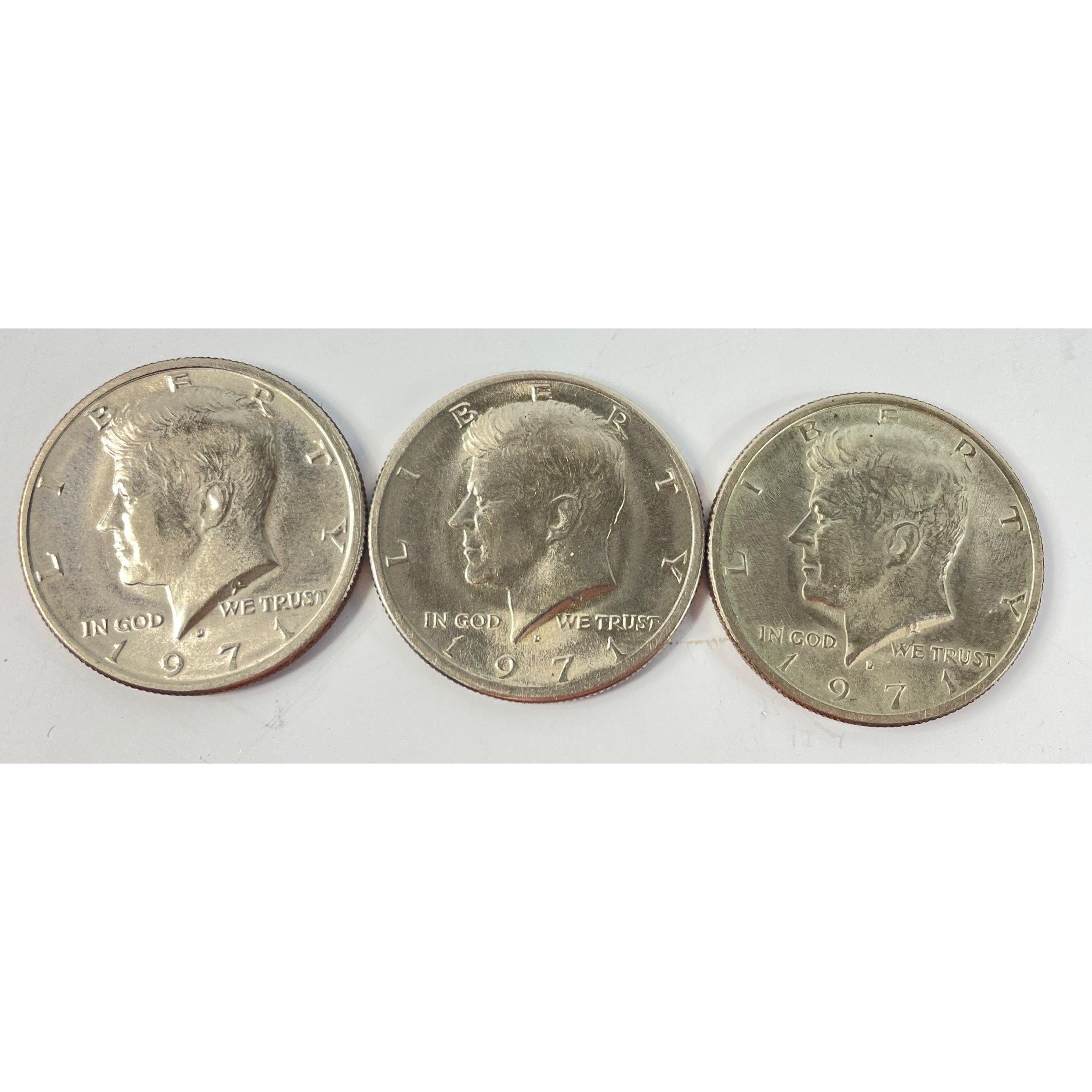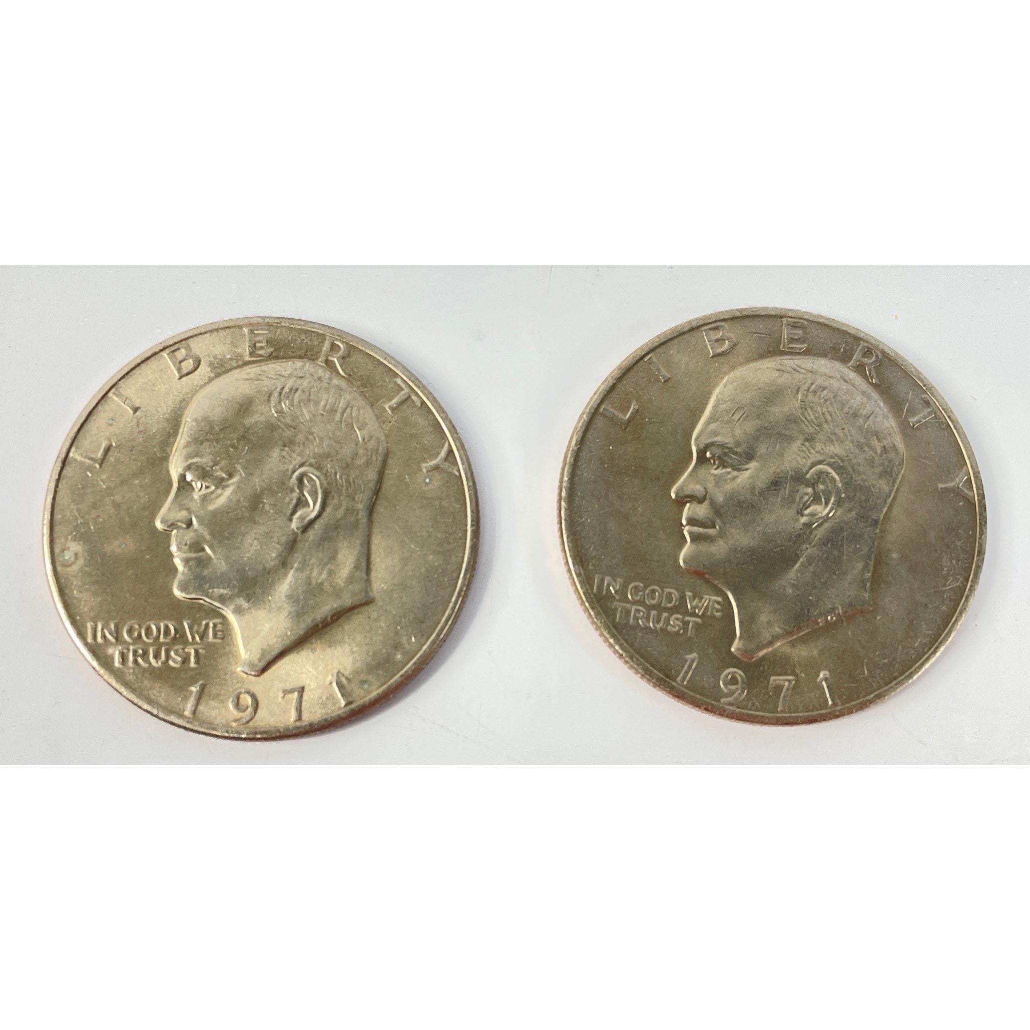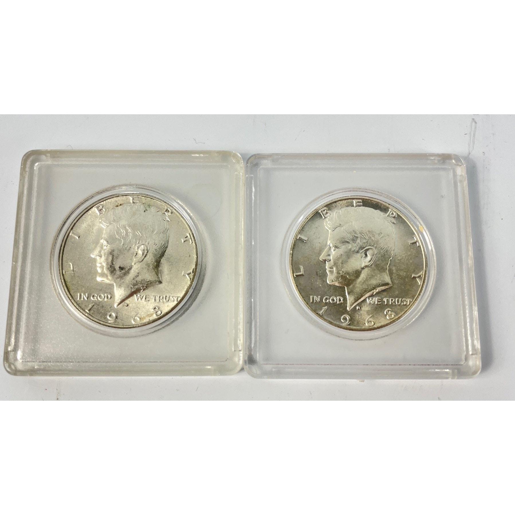 AN ALL AMERICAN LOT!AMERICAN SILVER DOLLARS AND HALF DOLLARS to include 2 1971 Dollars within plastic protection holders, x3 1971 Half Dollars AND x2 1968 Mint condition Half Dollars within plastic sleeves