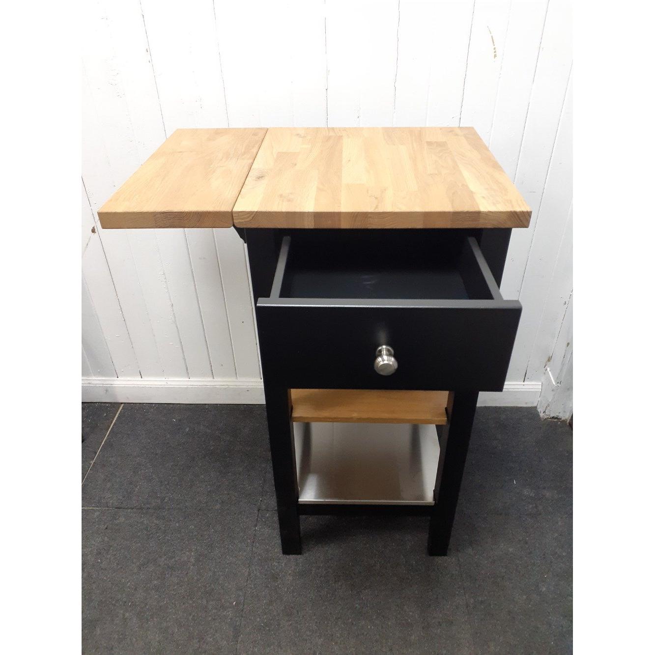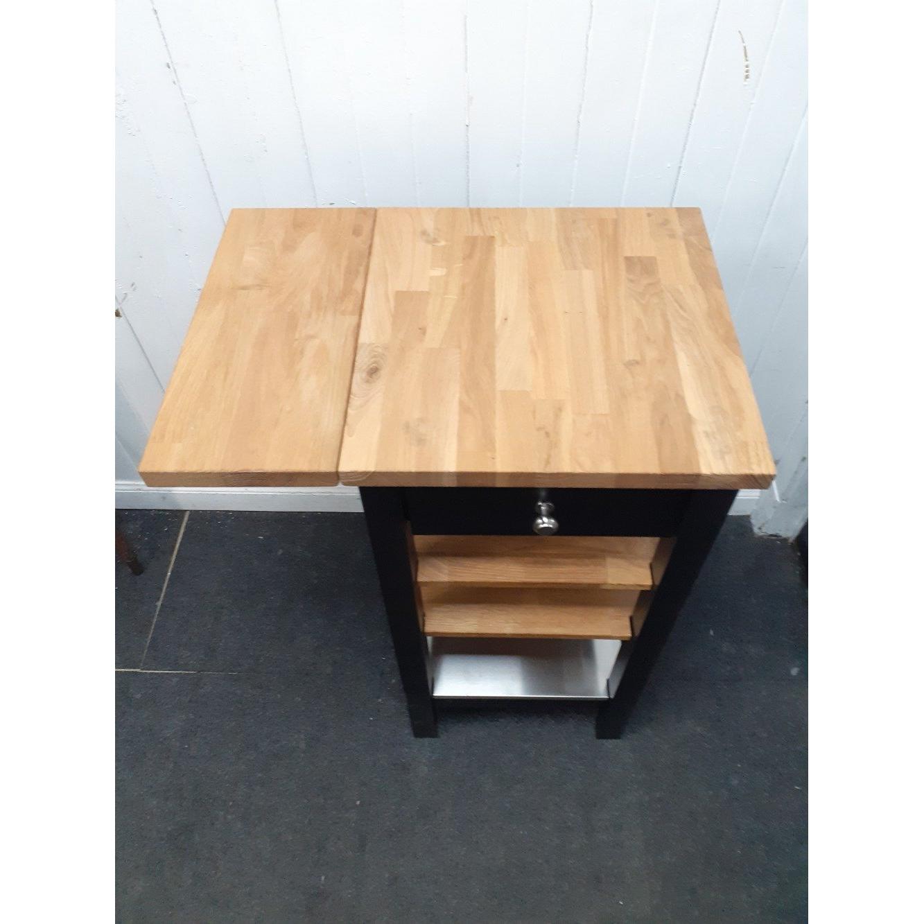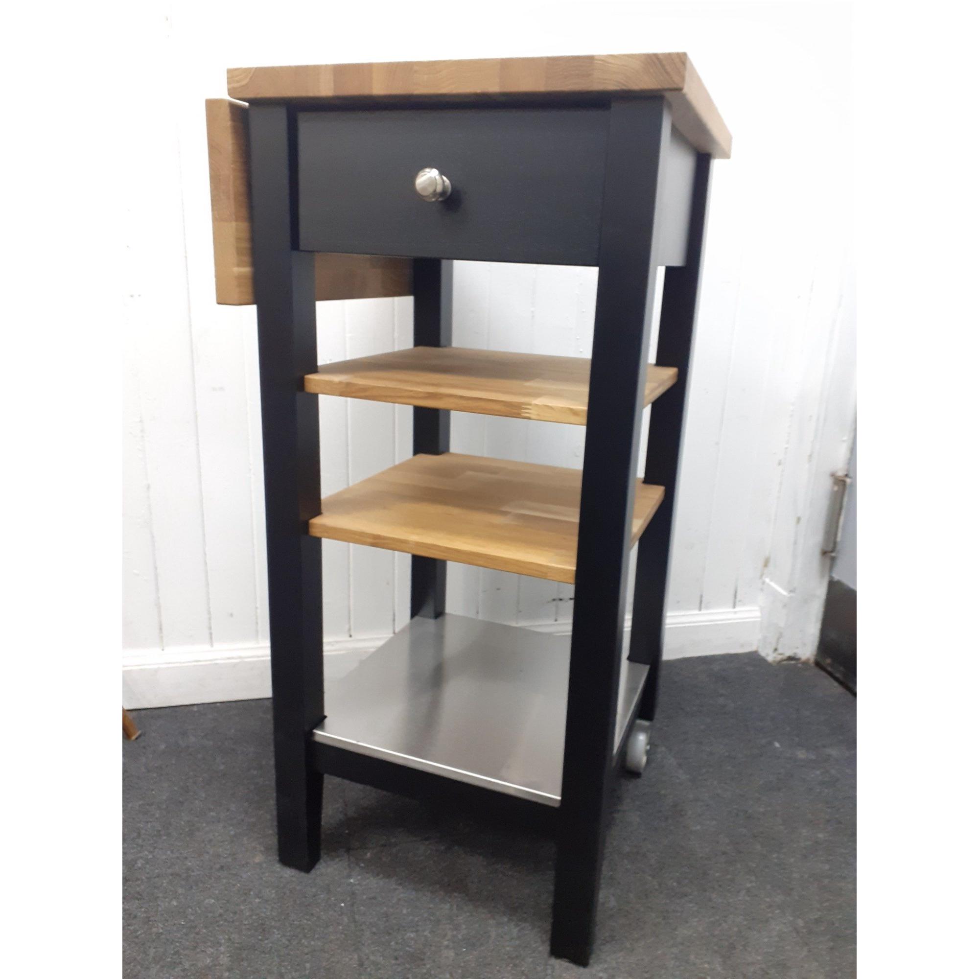 FAB QUALITY! An unused butchers' table, complete with three shelves, a drawer, top extension and two wheels on one side for easy movement. Dimensions - 90cm tall, 42.5cm long at top (62cm long with top extension) approx. Condition - Great condition.