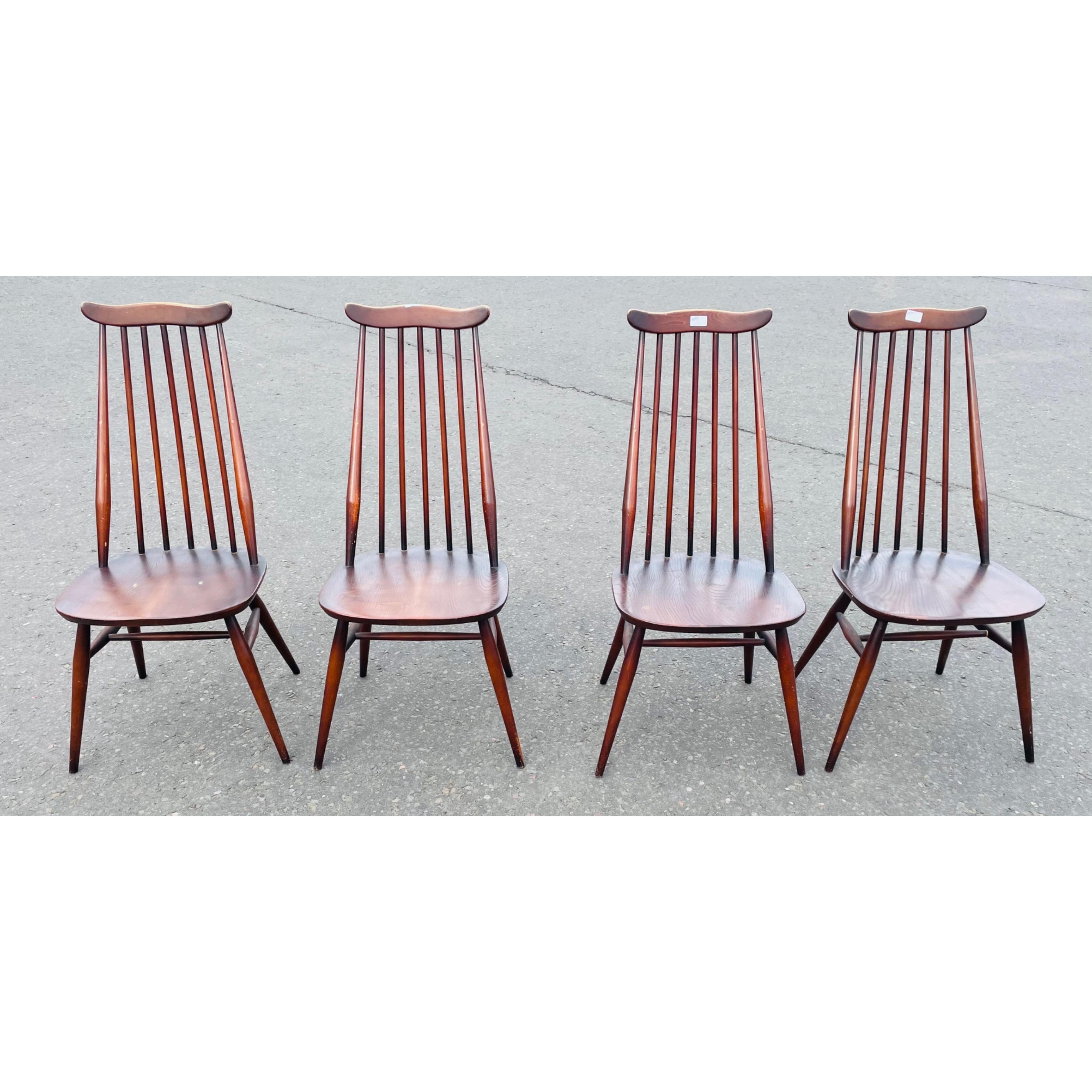 VINTAGE Four DARK WOOD ERCOL dining chairs