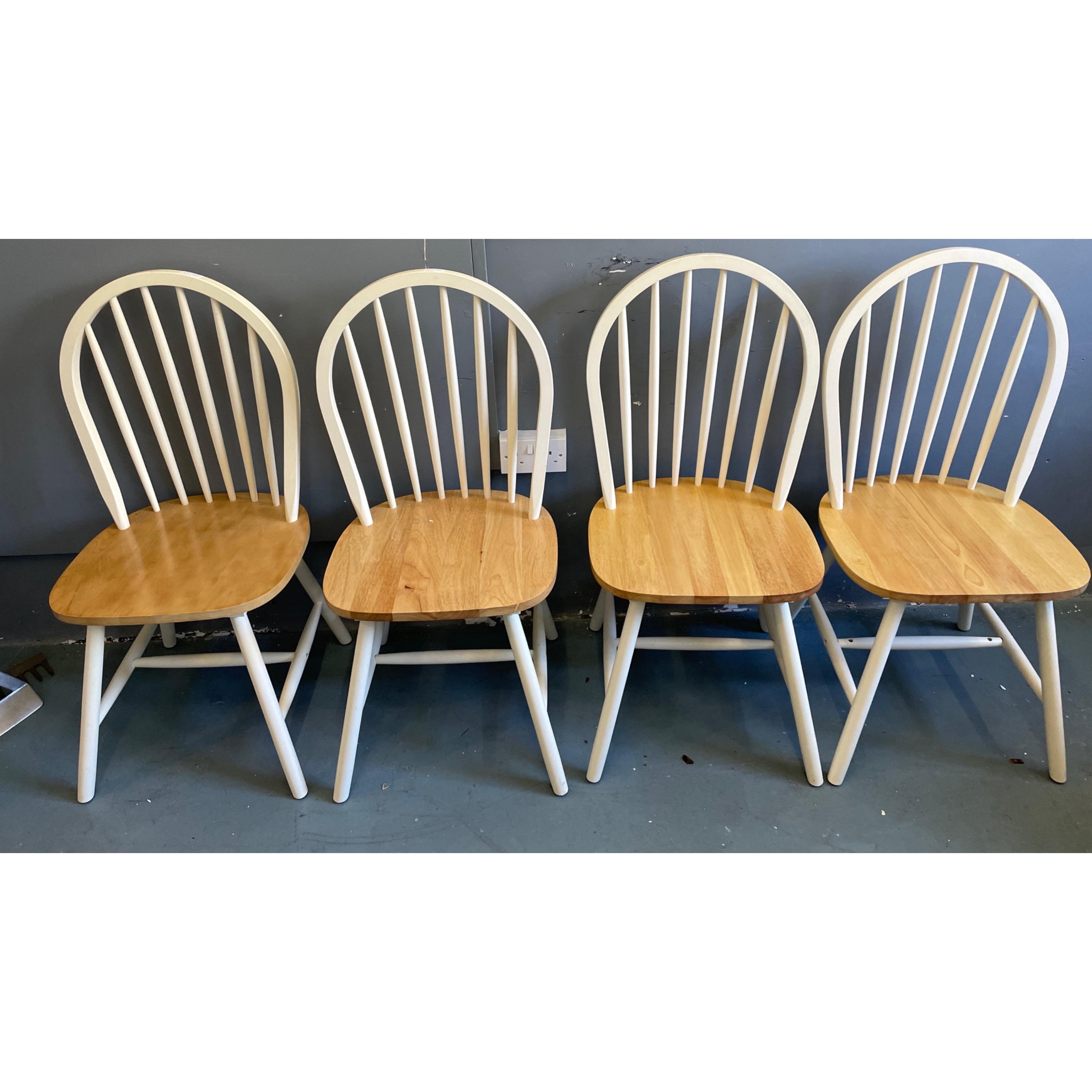 A set of modern four DINING CHAIRS - nice clean condition each with pine seat pad and a white wooden Windsor style frameApprox 4 pieces