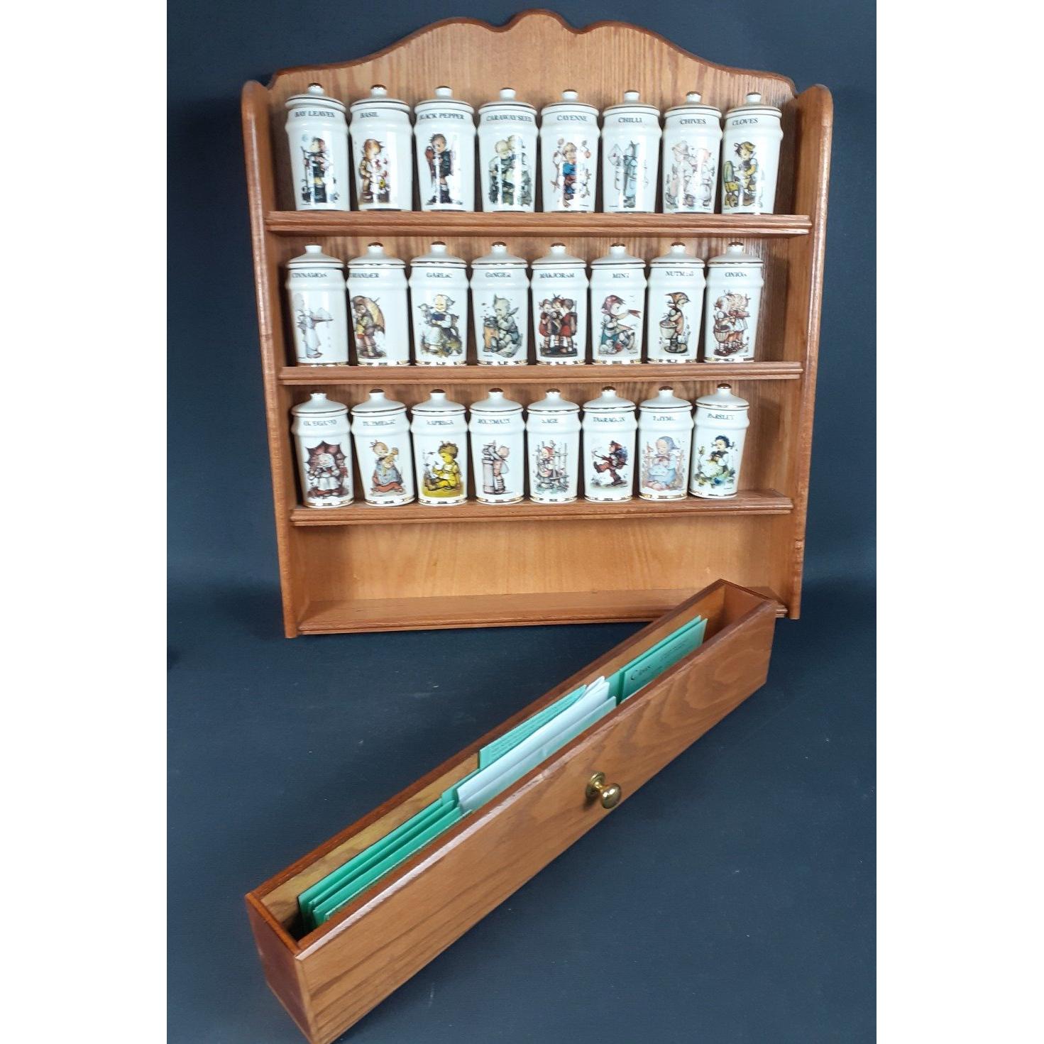 A complete set of RETRO MJ HUMMEL ceramic herb pots x24 quantity comes with its wall stand - dimensions 48cm wide x 52cm height - condition all in good condition, no signs of chips, cracks or signs of damage repair