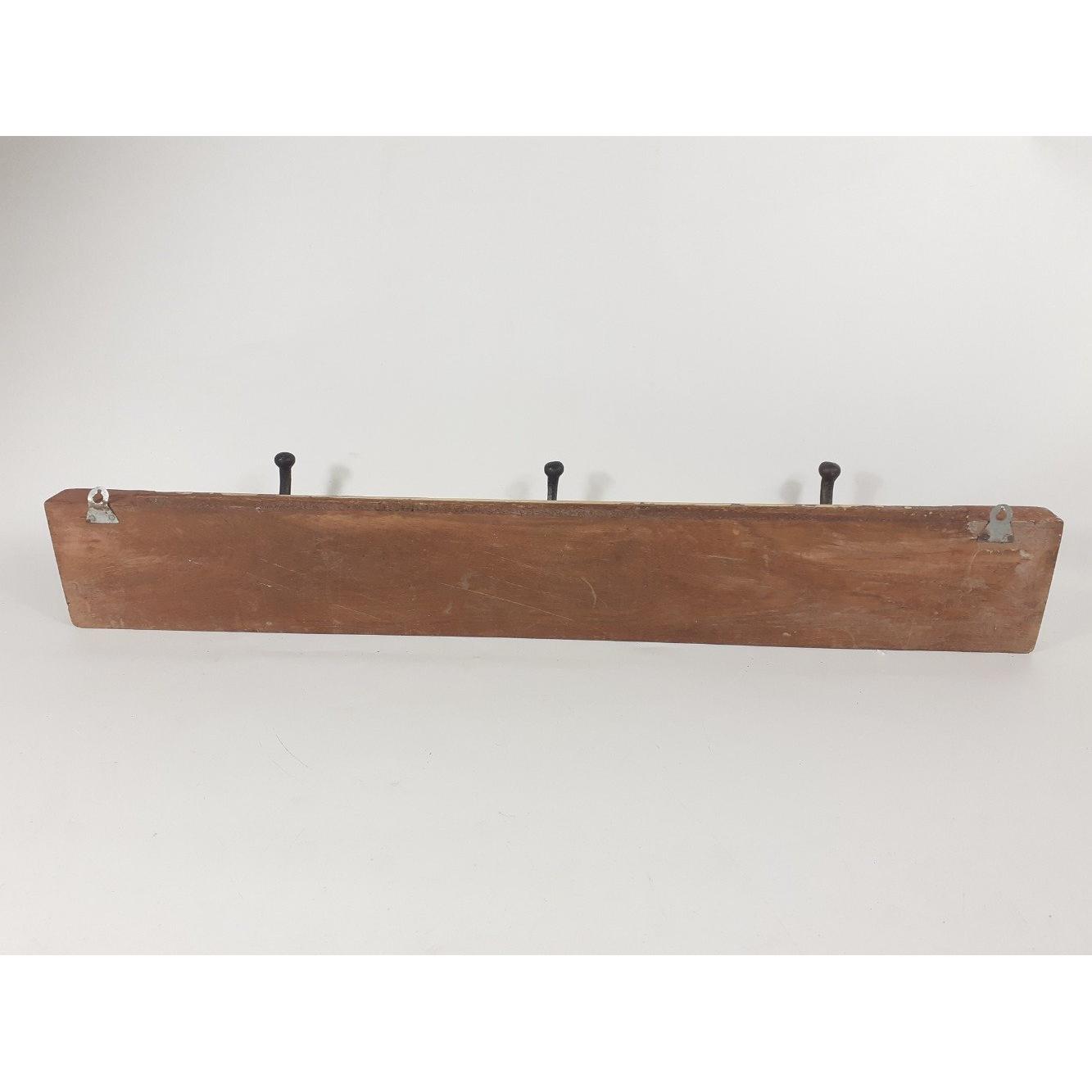 An antique Indian coat rack with three hooks, 75x11cm approx