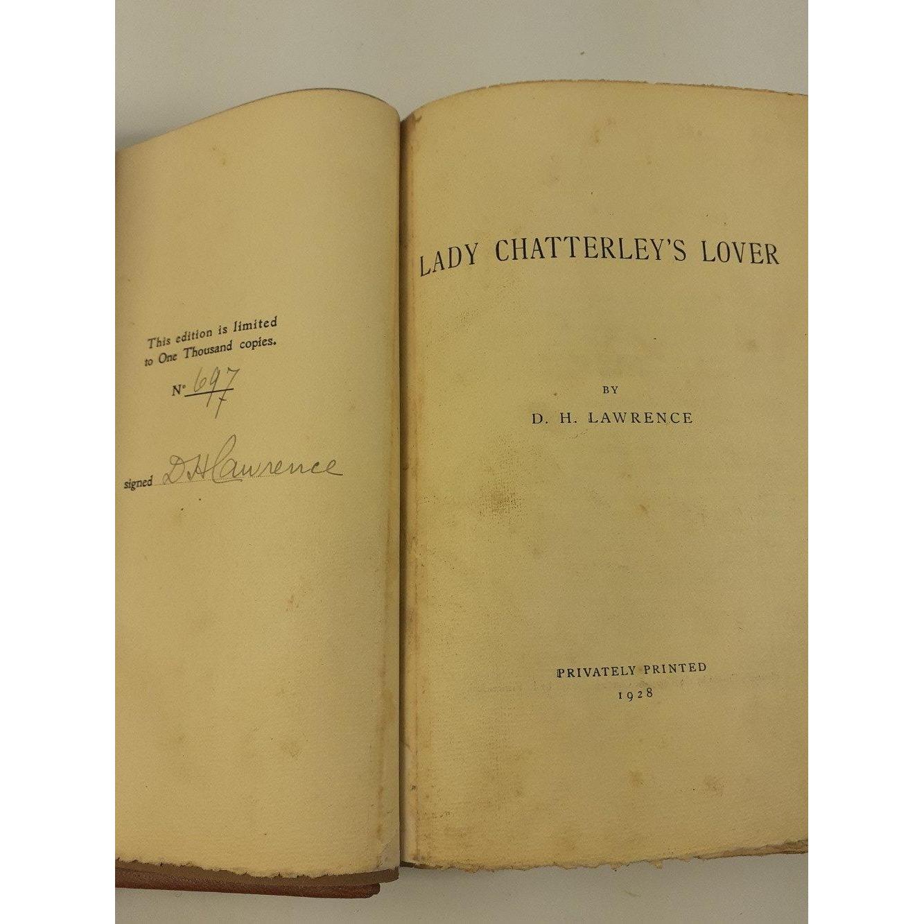 Signed by DH LAWRENCE, a limited edition copy (697/1000) of LADY CHATTERLEY'S LOVER printed in a Private Printing, Florence, 1928, the book has been rebound but the original cover has been retained within.