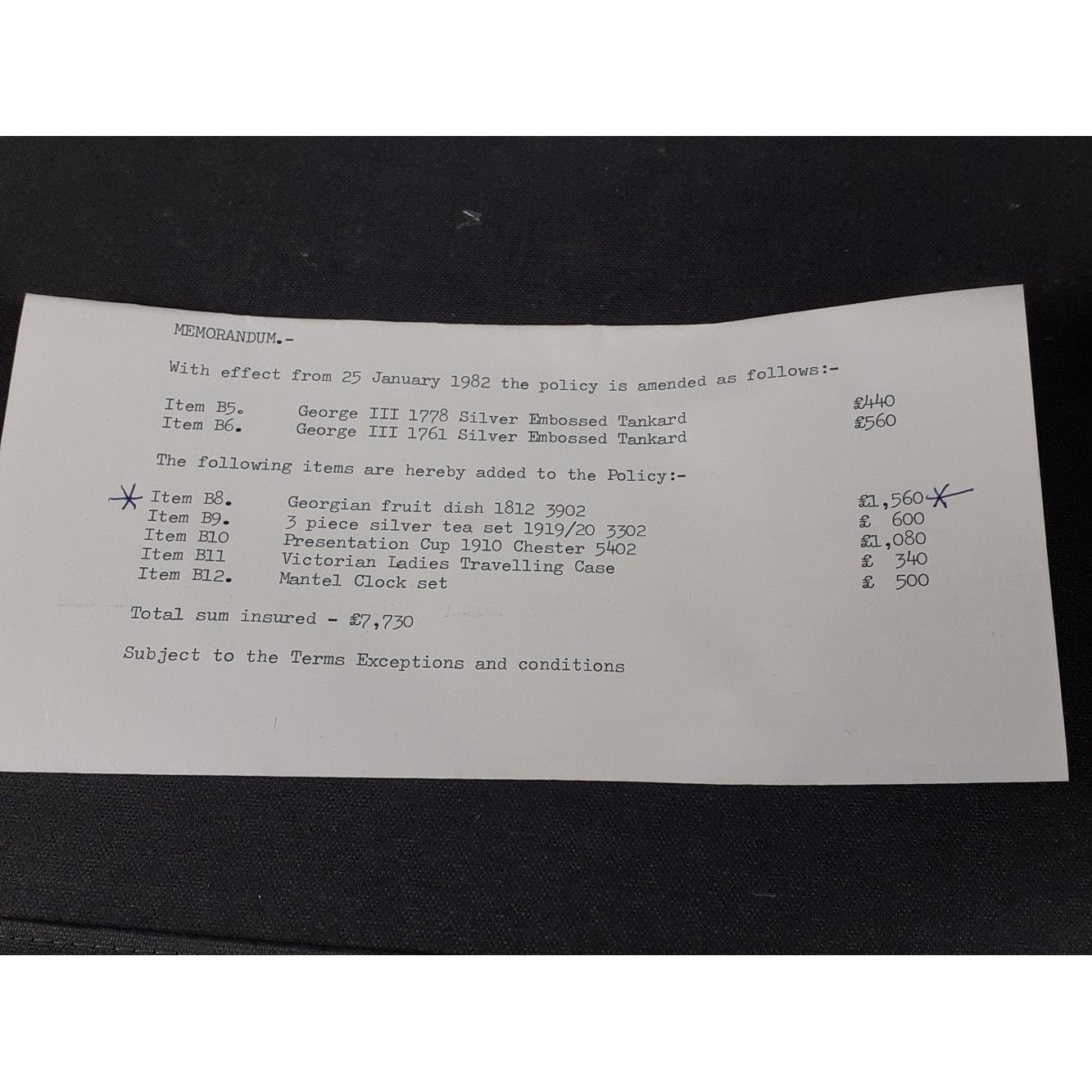 GEORGIAN solid silver fruit dish, hallmarked London 1812, maker indistinct, weight 1225g, width 33cm approx. 1982 insurance valuation paperwork included showing an appraisal of £1560Approx 1 pieces