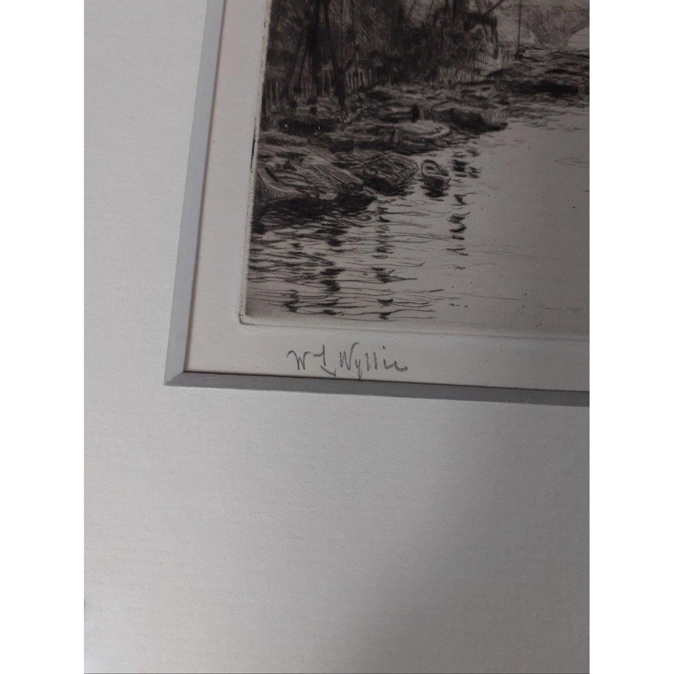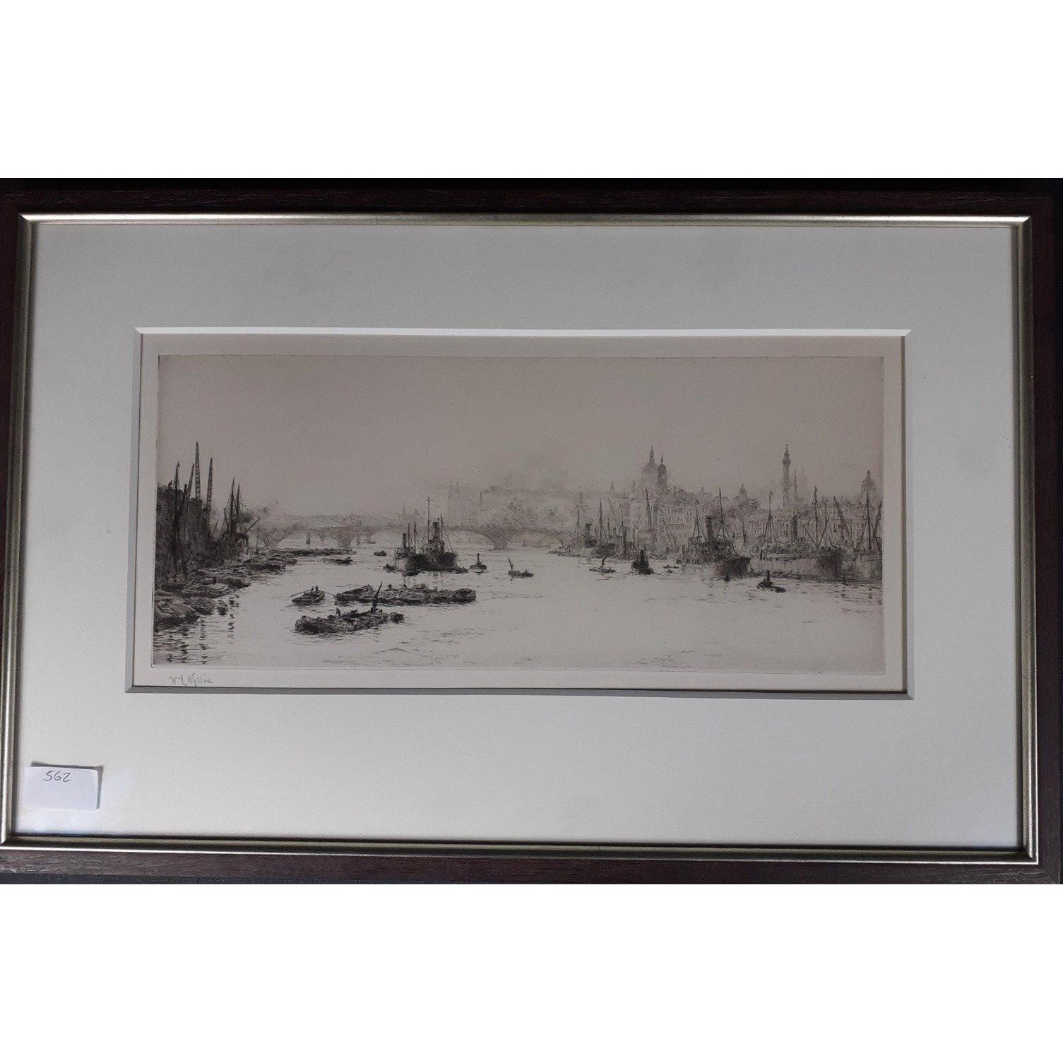 By WL WYLLIE (1851 – 1931), an etching on paper, signed in pencil by the artist, of the Thames showing St Paul's Cathedral, London frame size 55x36cm,visible work 37x17cm. The second of a set of three similar scenes by the artist always displayed together and offered for sale individually.