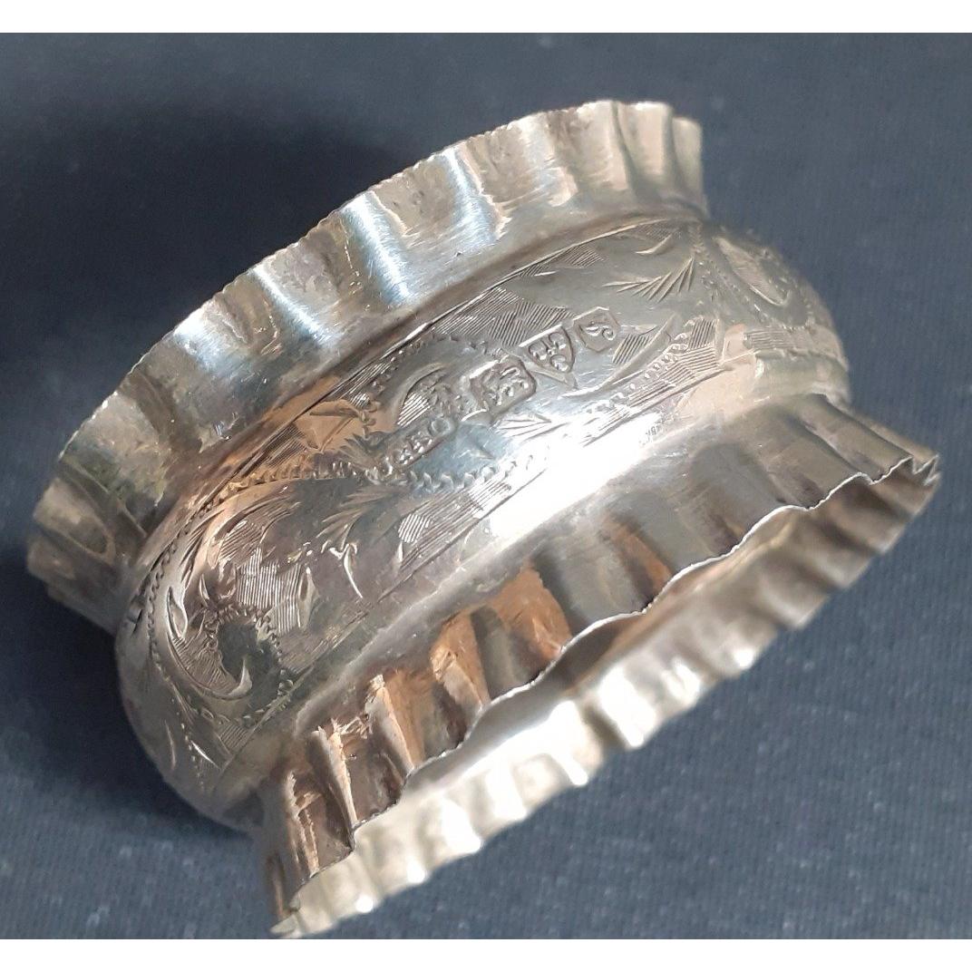 A pair of solid silver napkin rings with crimped edges and attractive floral scrolling. Dated 1909 makers mark for Joseph & Richard Griffin, weight 15g approx.Approx 2 pieces