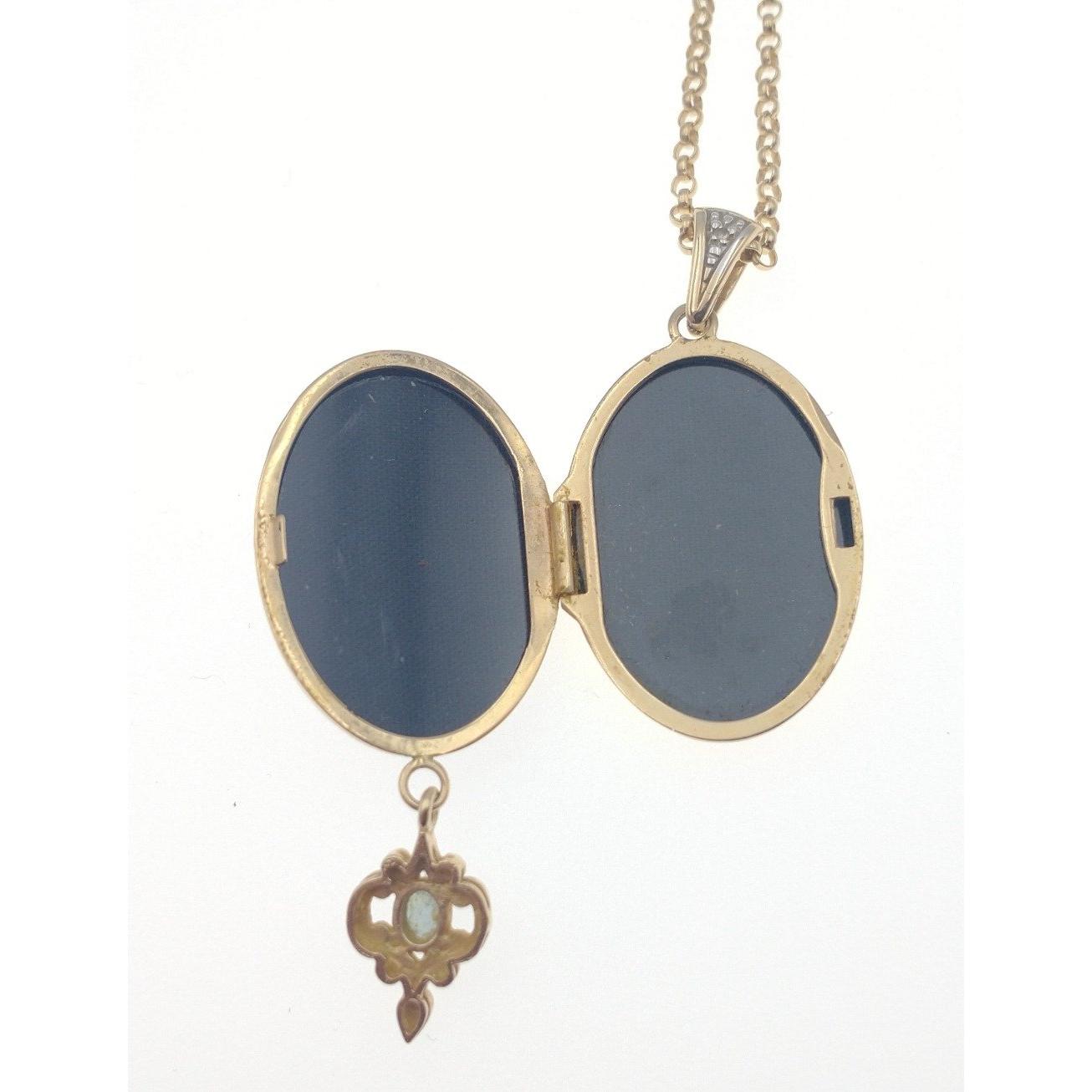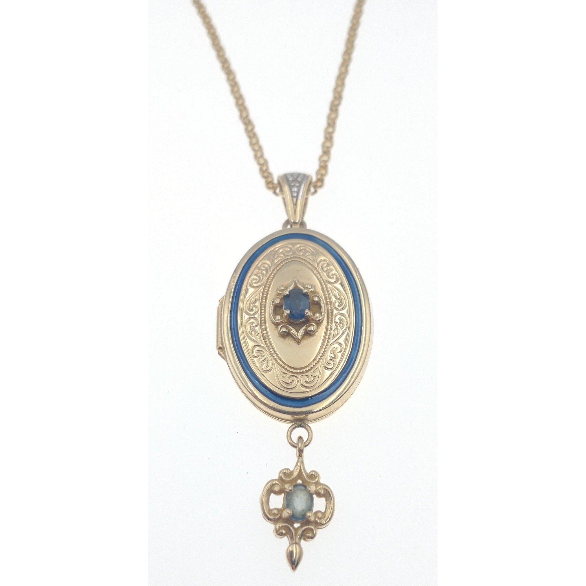 A stamped 375 yellow gold locket with blue stone on a 375 stamped yellow gold chain weight 8.55g gross approx