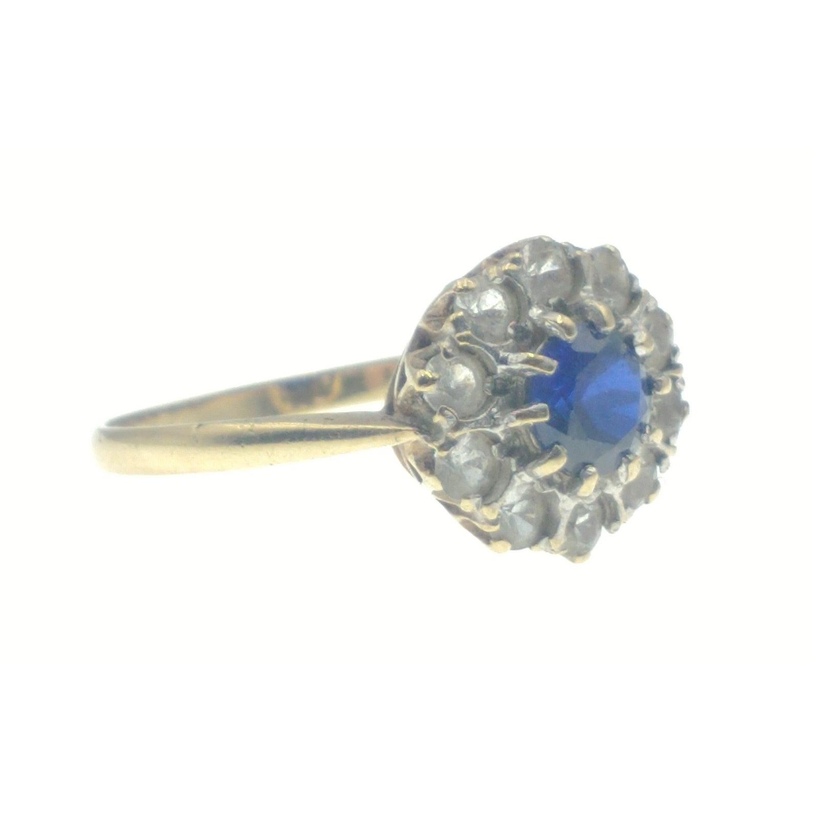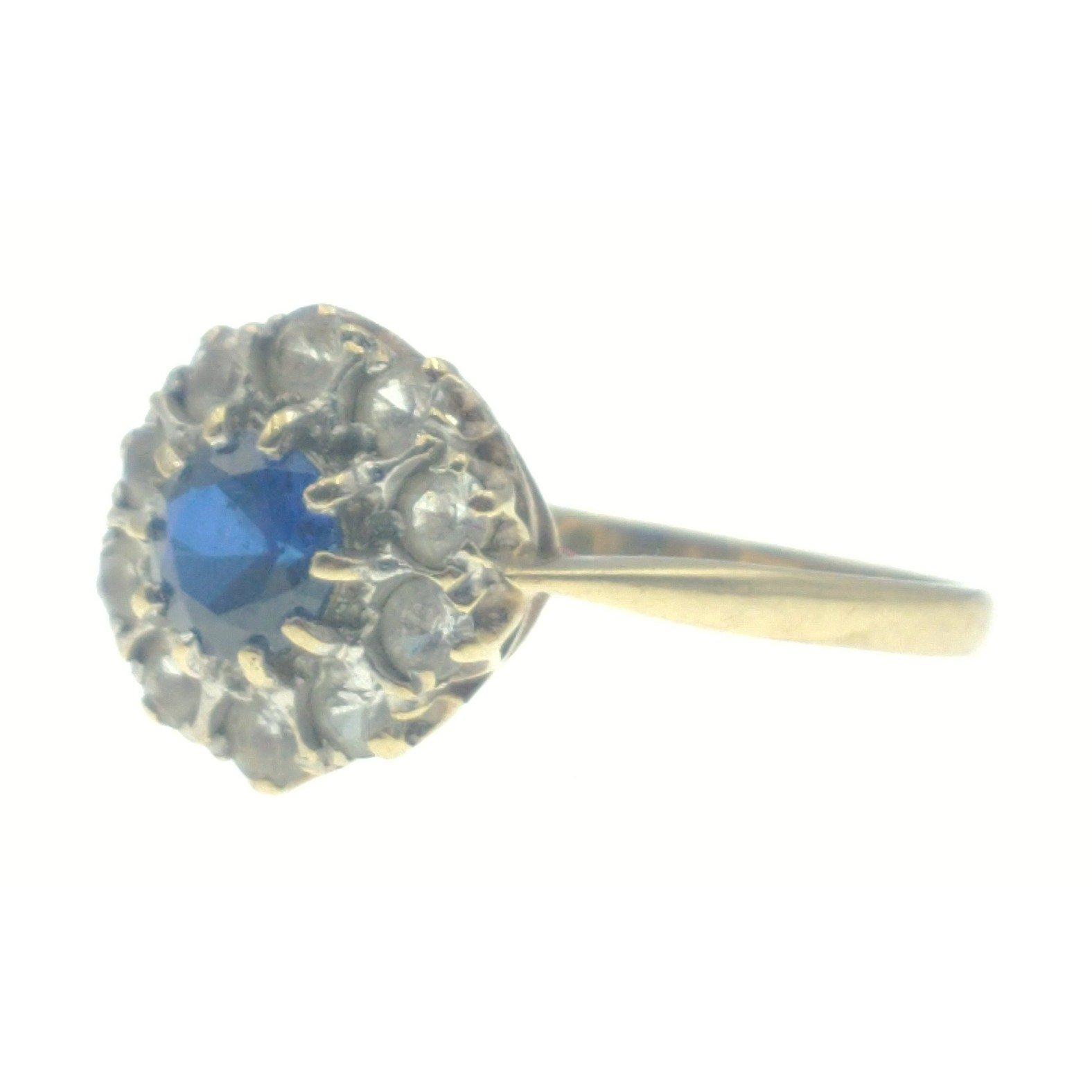 A 375 stamped sapphire and diamond ring (diamond tested), Size Q, gross weight 2.40gApprox 1 pieces