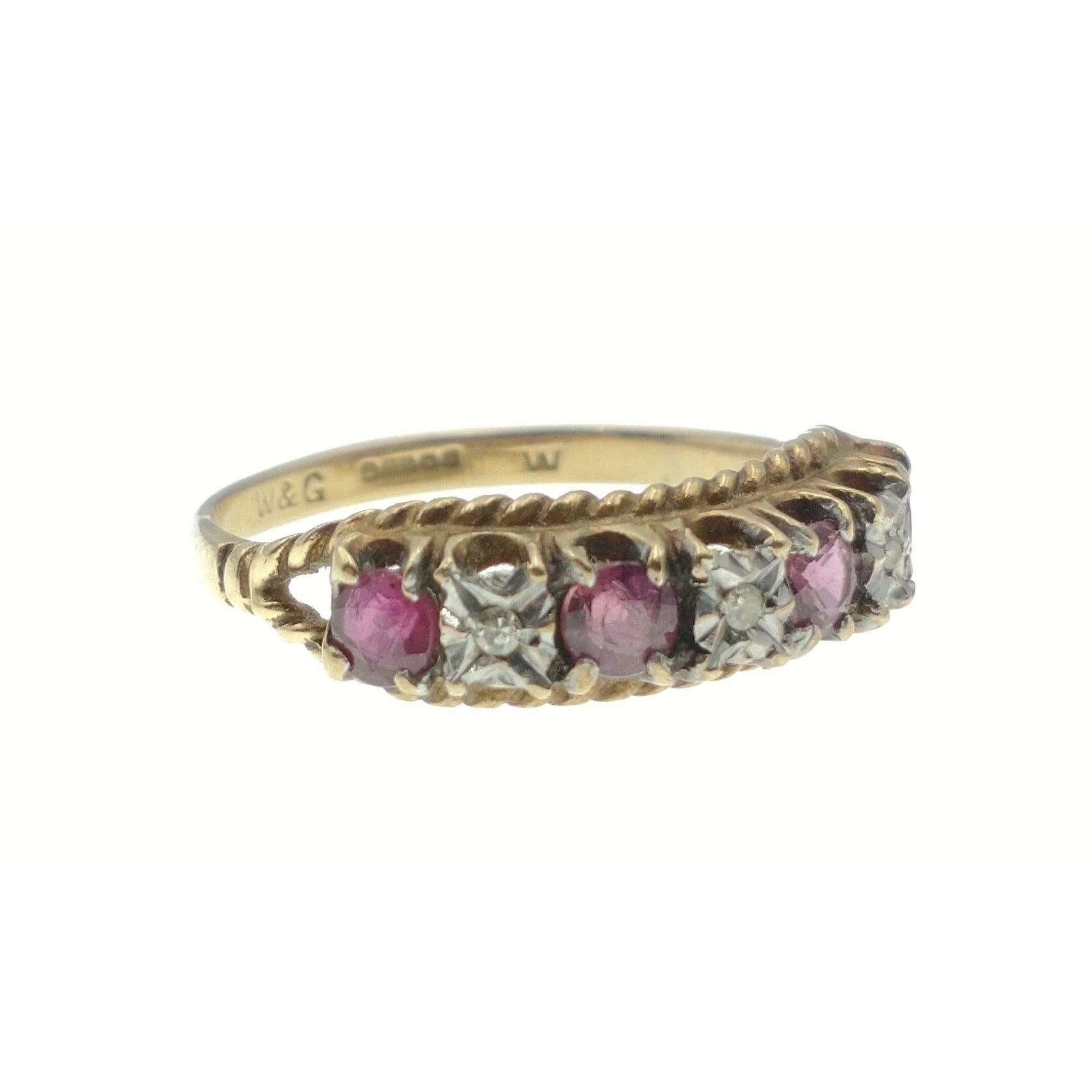A garnet and diamond (untested) 375 stamped yellow gold ring, Size N, gross weight 2.00gApprox 1 pieces