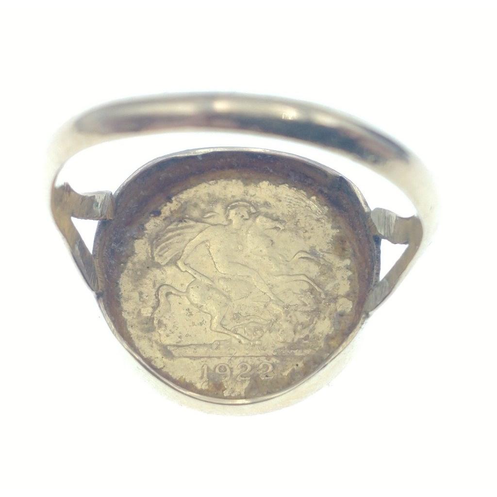 An 18ct (Jeweller tested 18ct or above) 1922 half sovereign style ring, ring size S - overall weight 5.02g - no markings on the ring itself Approx 1 pieces