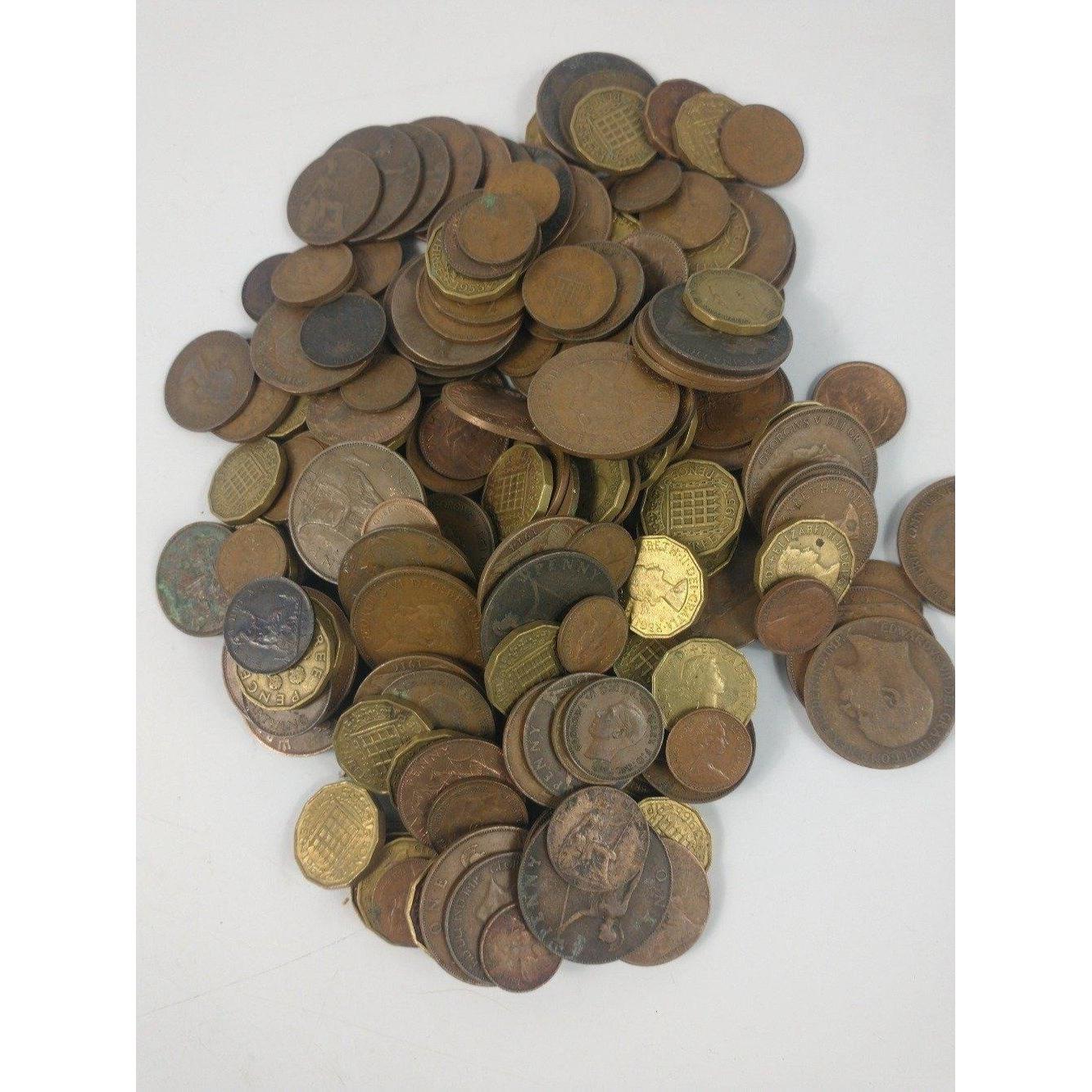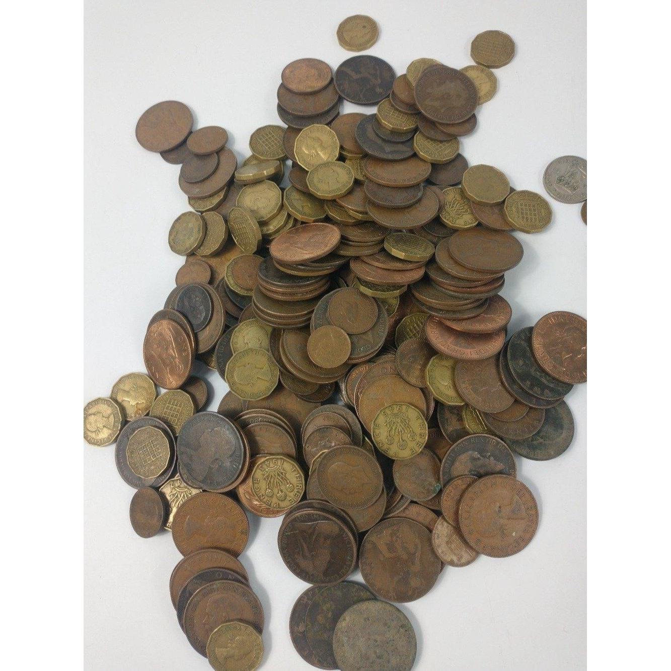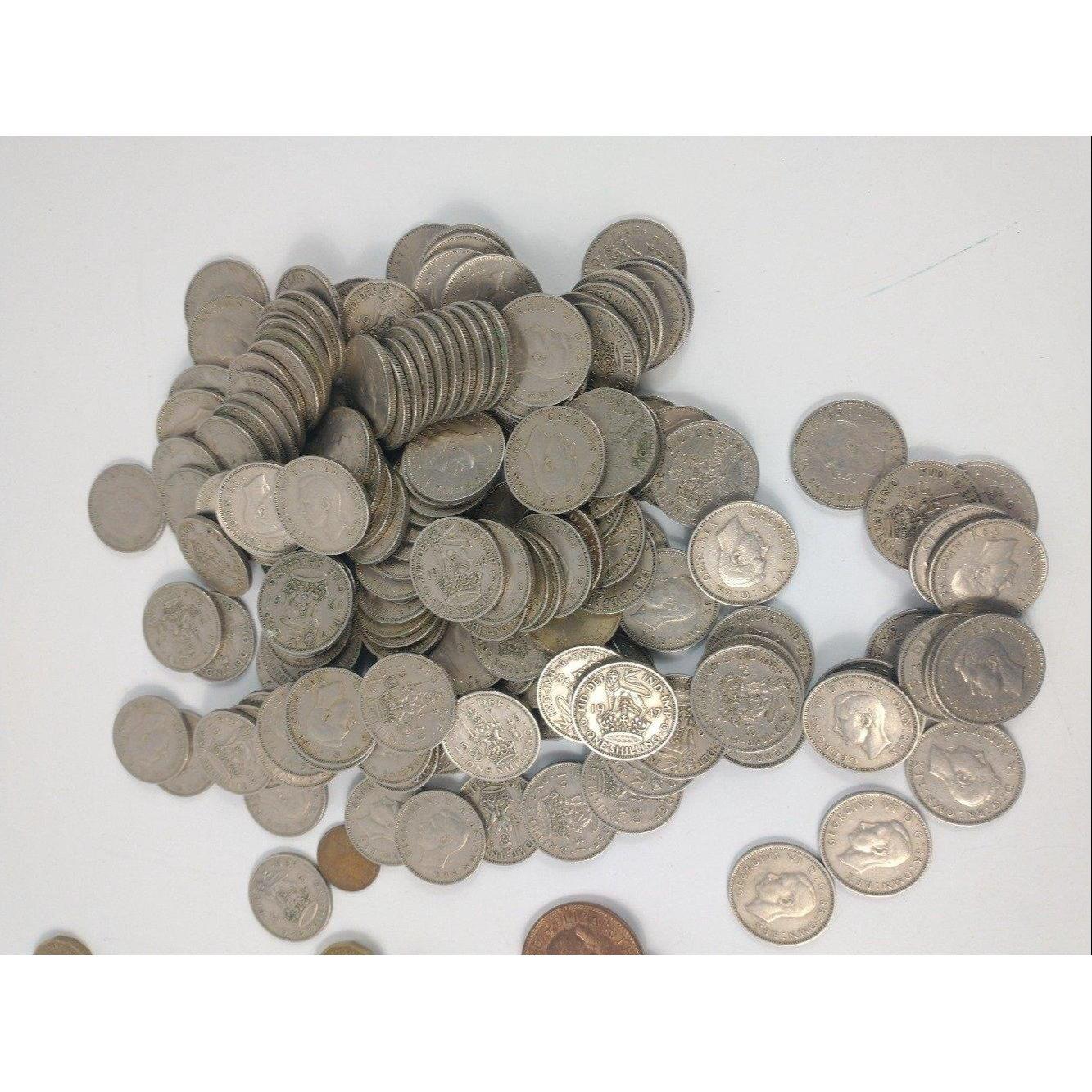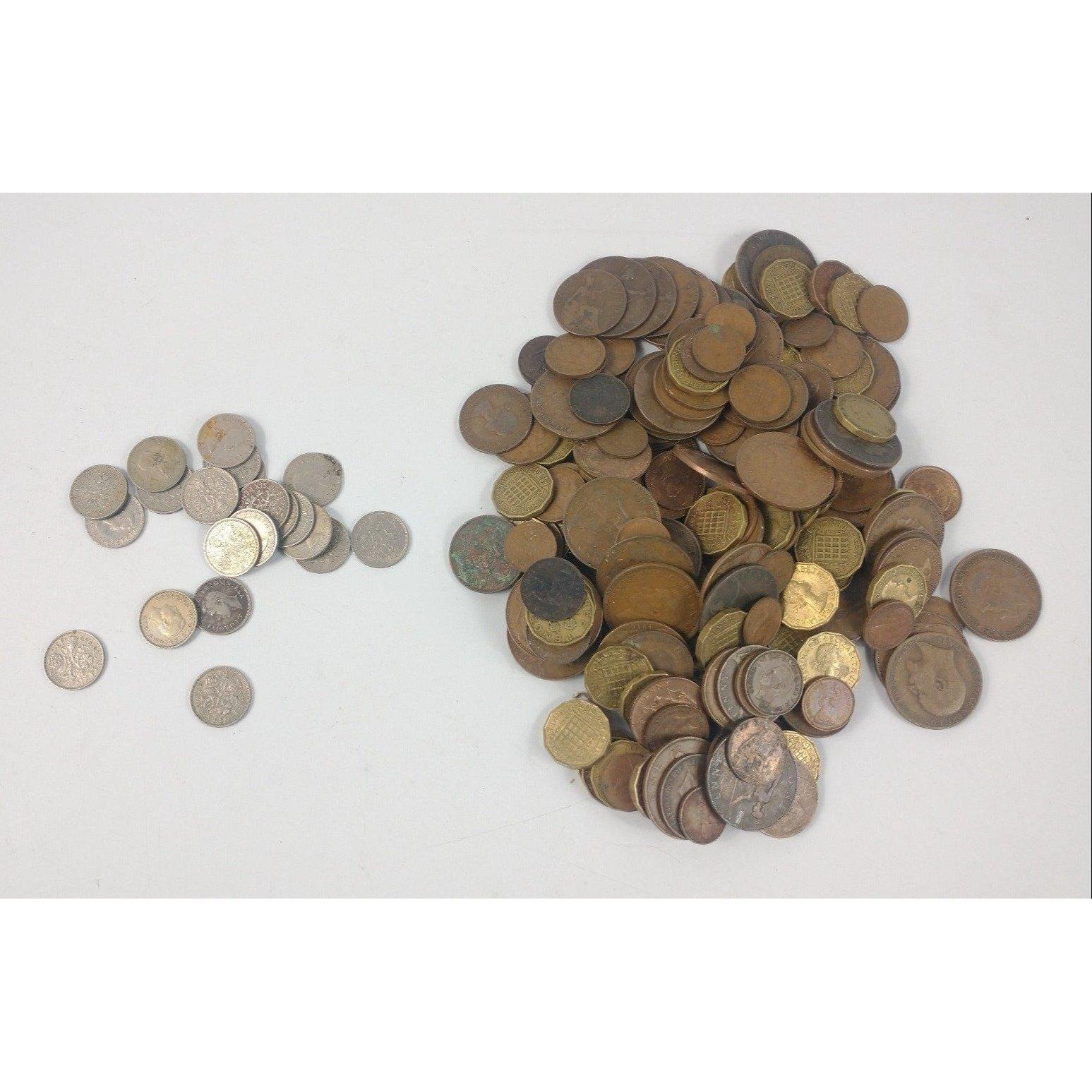 A large collection of UK coins to include a bag of post WWll George Vl one shilling coins, a small bag of sixpences, and two large bags of pennies, halfpennies, farthings, threepenny bits, some dating back to the reign of Queen Victoria